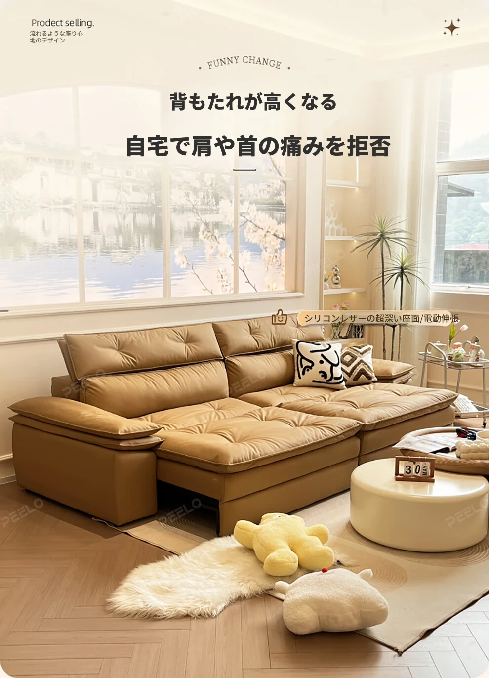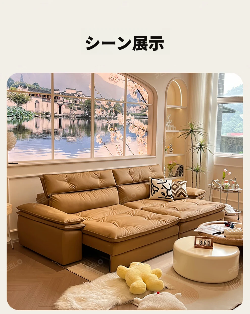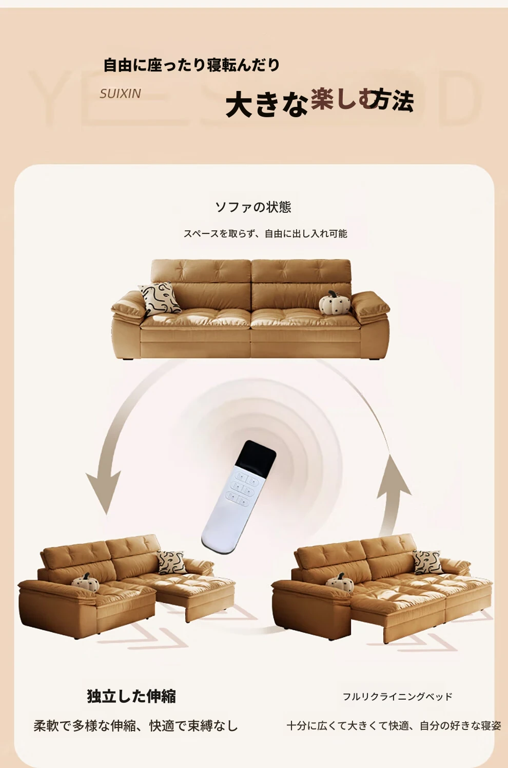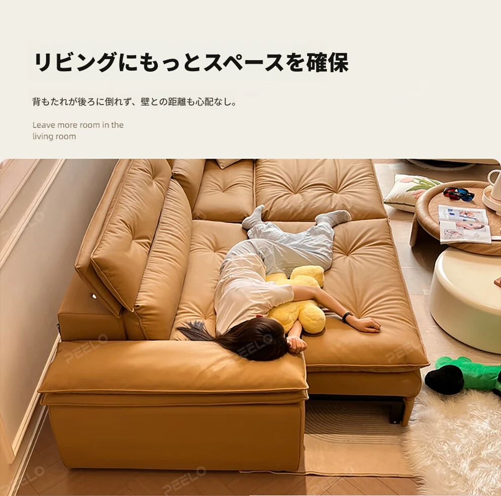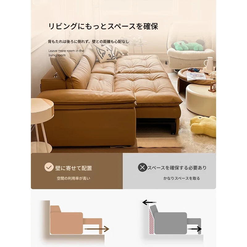 ケイマオ現代的なライトラグジュアリー本革電動機能ソファ|リビングルームに最適な2WAY本革ソファベッド|コンパクトサイズでも贅沢な快適さを実現!