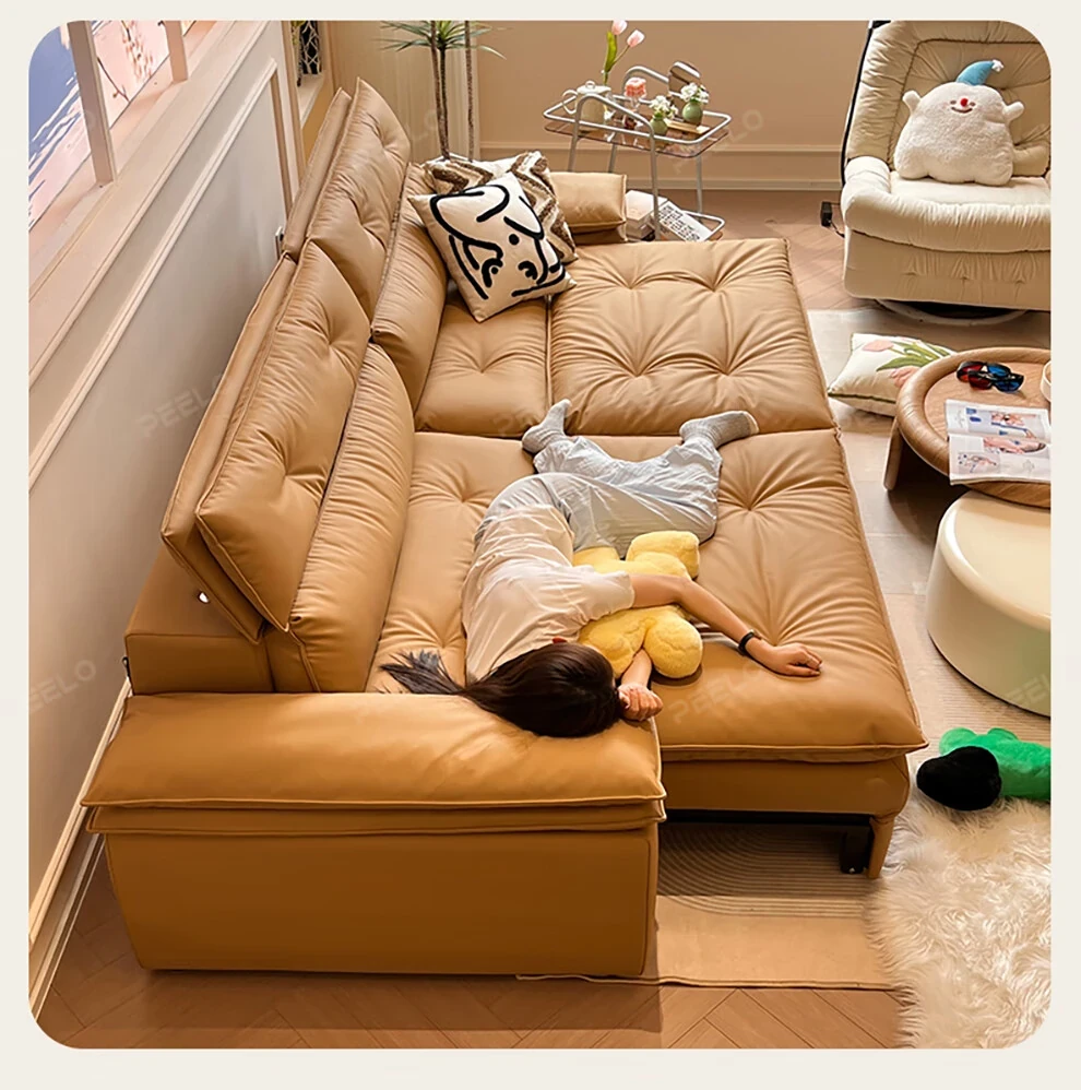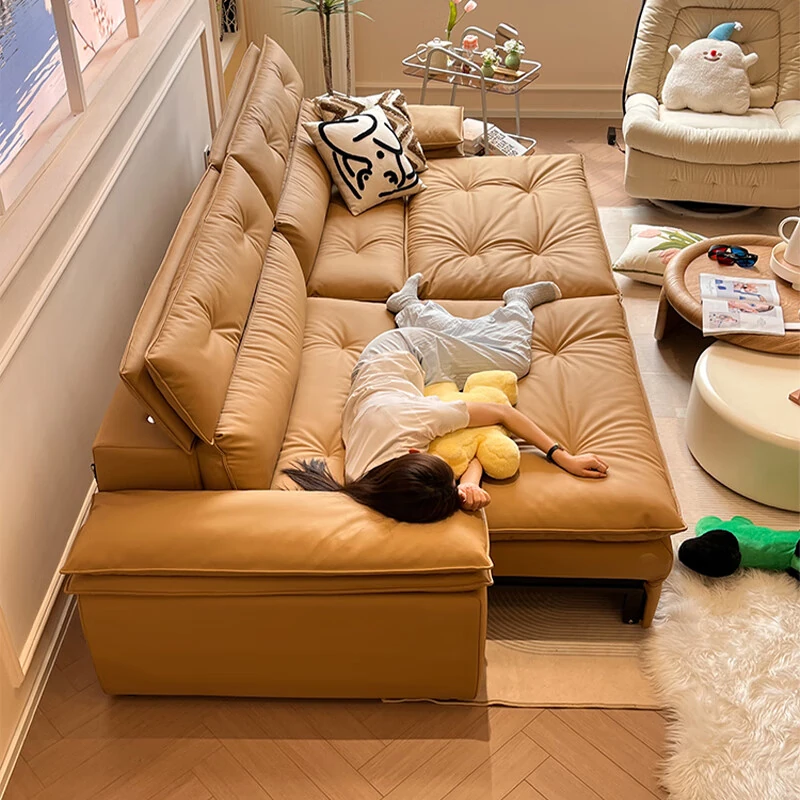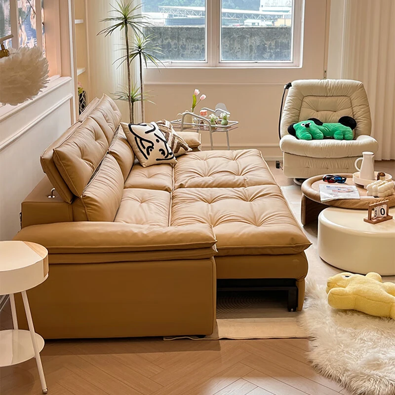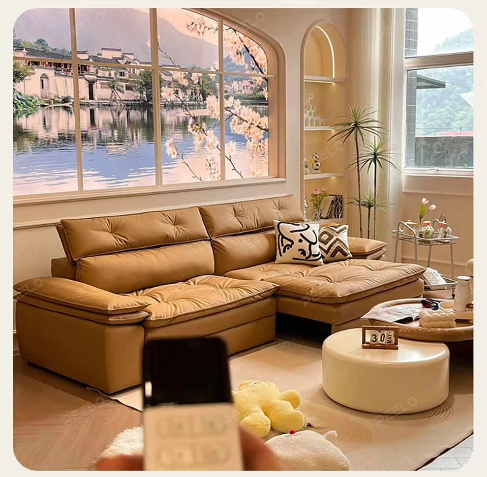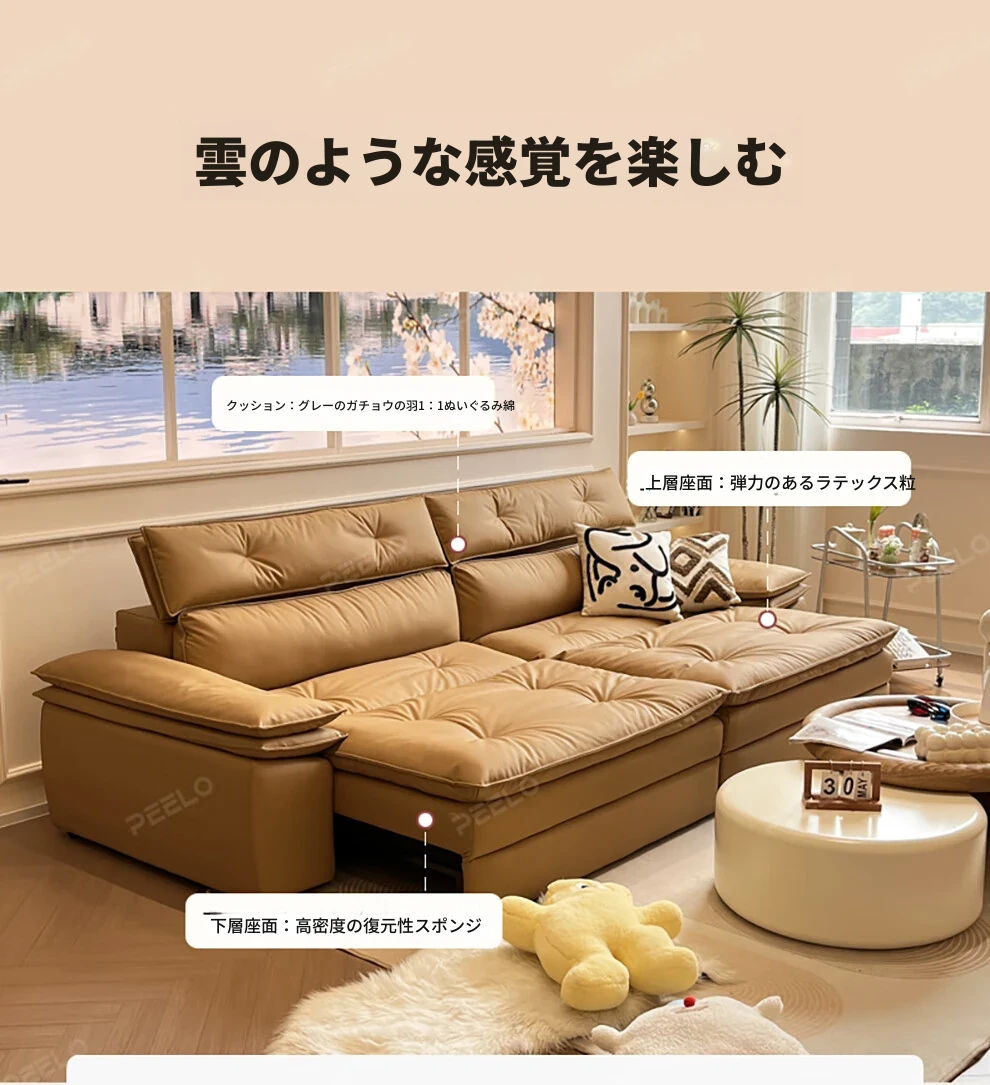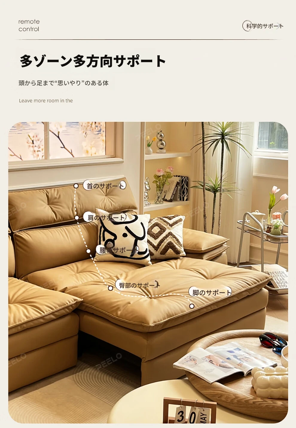 ケイマオ現代的なライトラグジュアリー本革電動機能ソファ|リビングルームに最適な2WAY本革ソファベッド|コンパクトサイズでも贅沢な快適さを実現!