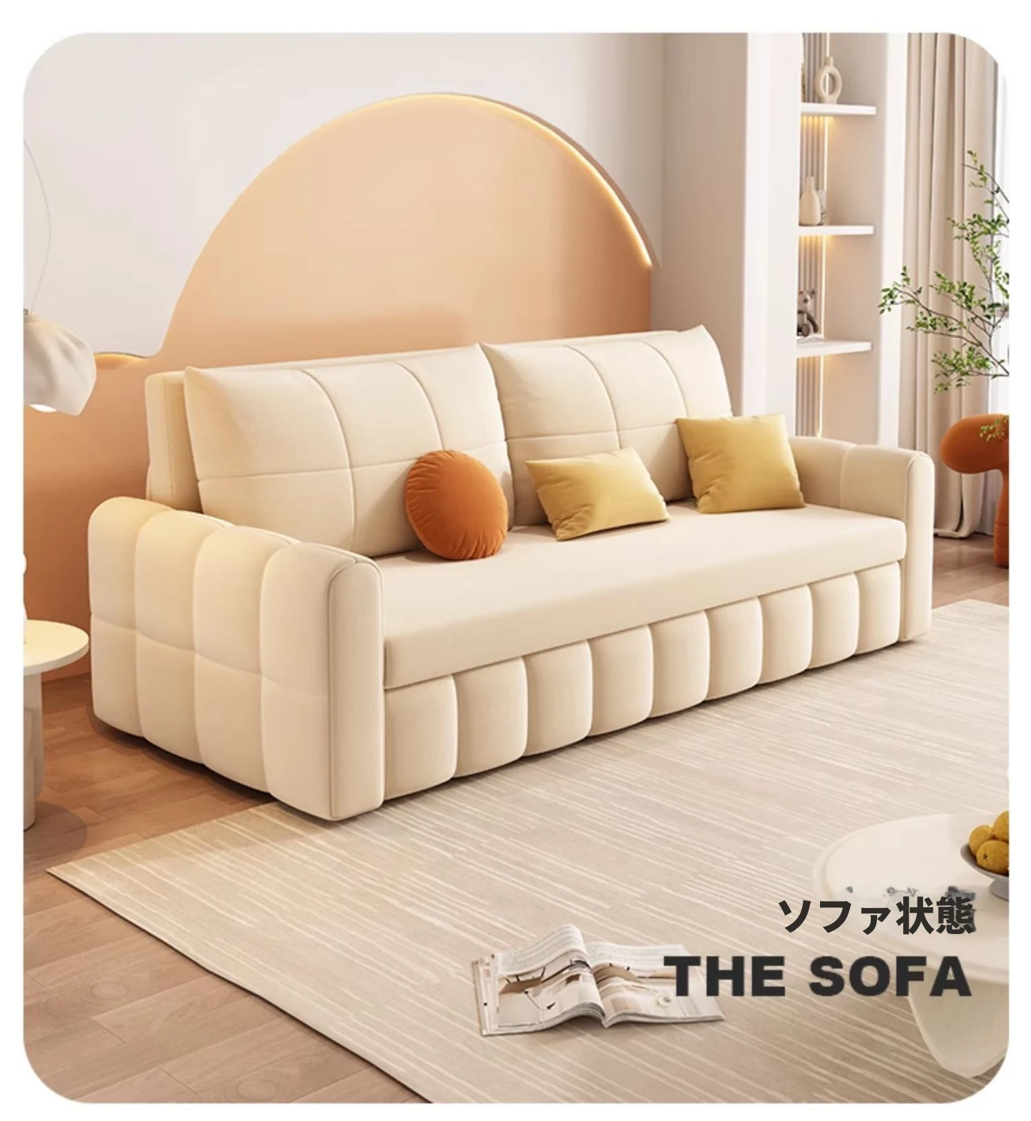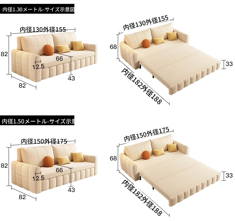 カイモンハオ創造のソファベッド、テクノロジー起毛布使用の二通り利用可能な折りたたみ式!小型住宅に最適な多機能デザイン、リビングや寝室で大活躍する人気アイテム!