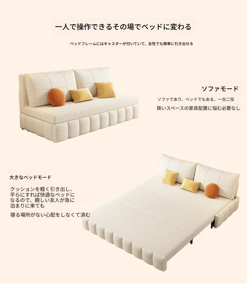 ケリア 2025年新作ソファベッド 小型リビング向け ダブル機能 折りたたみ式伸縮ベッド 多用途ソファでスペースを有効活用!