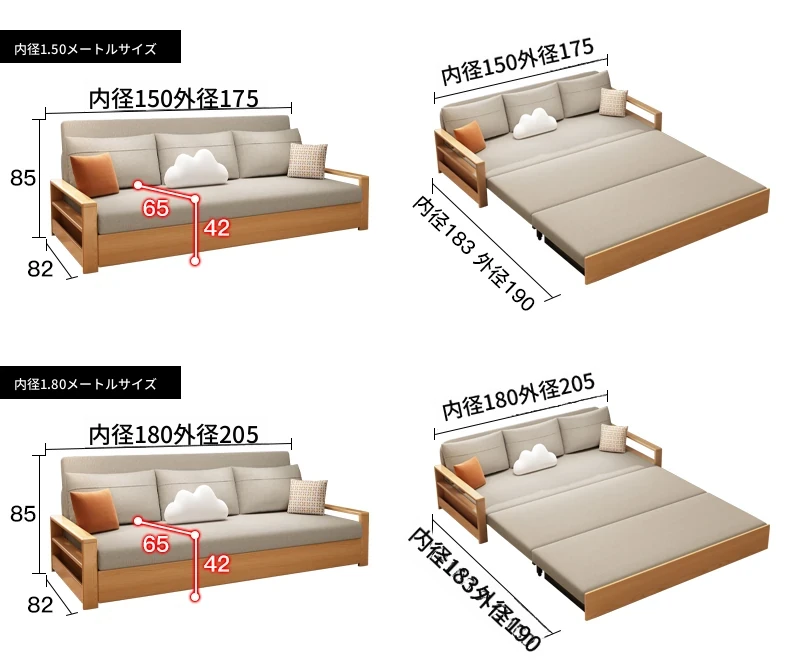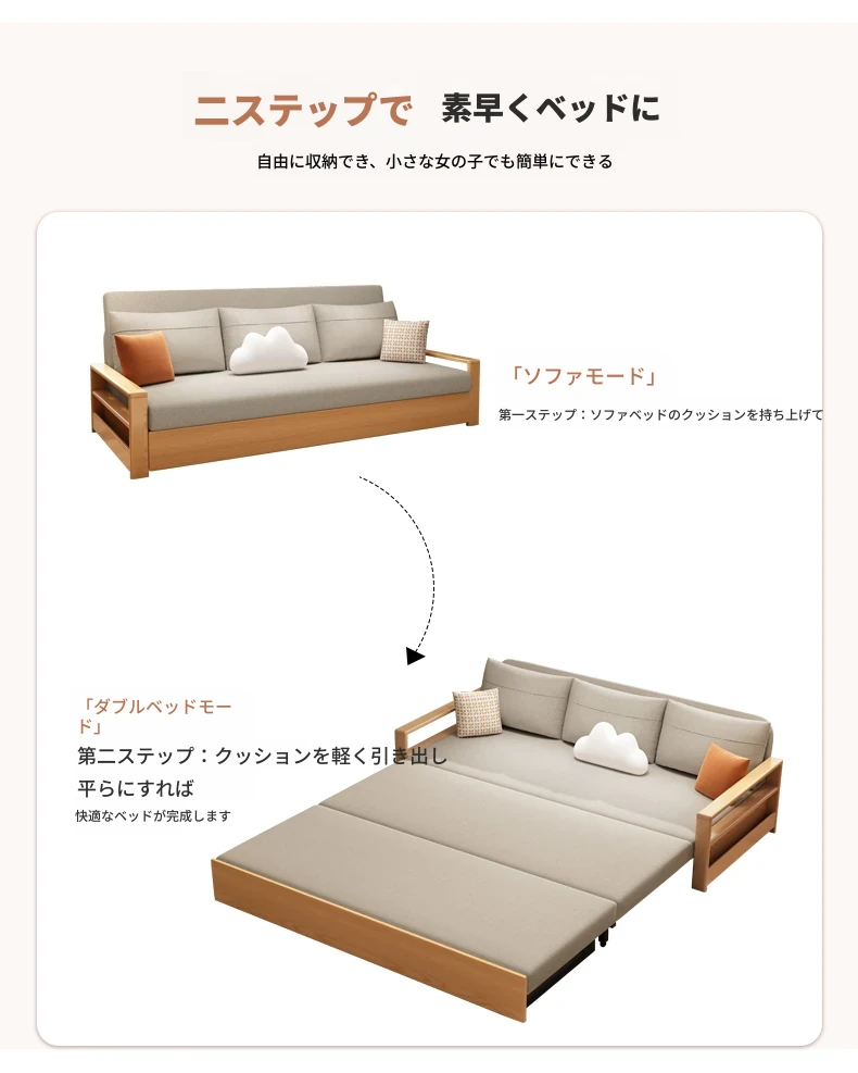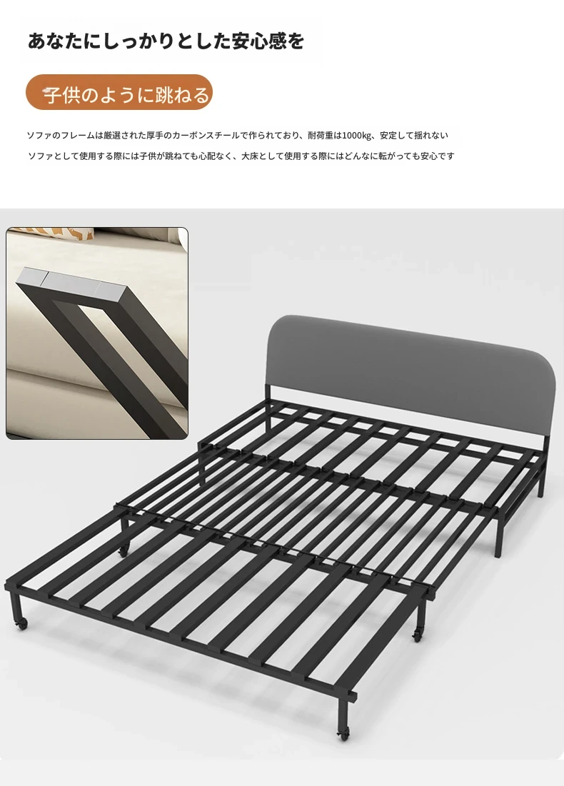 カイリア 2025新モデル 多機能ソファベッド 小型リビング向け 折りたたみ式デュアルソファ スペース節約の伸縮ベッドで、快適な空間を実現!