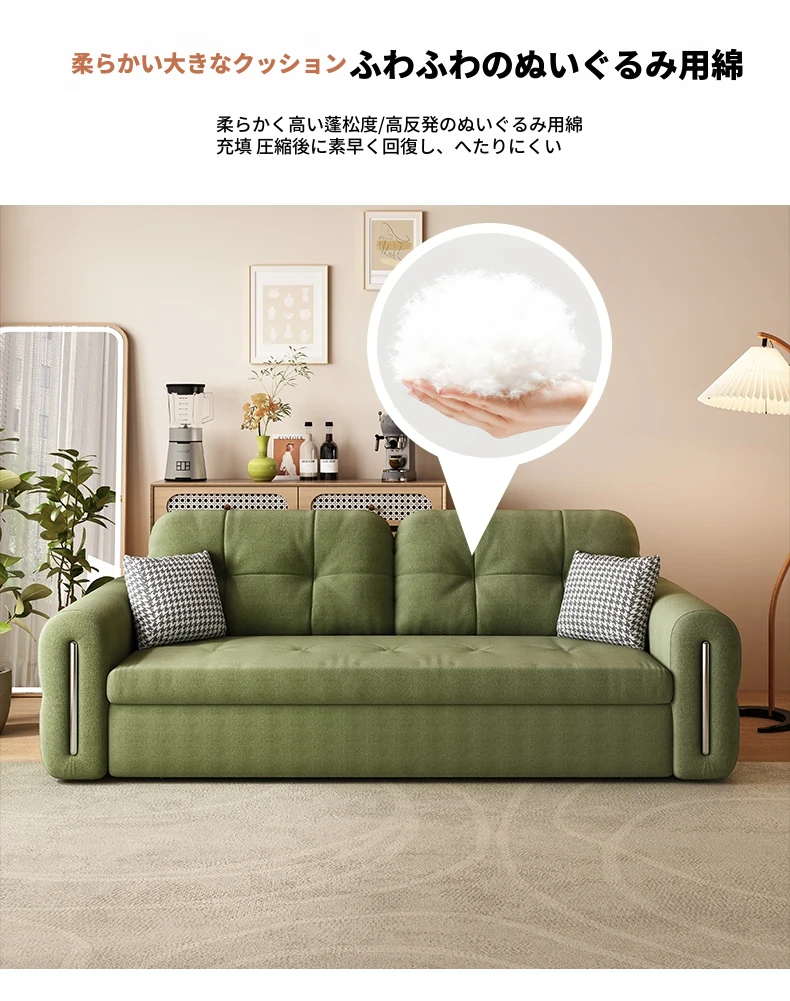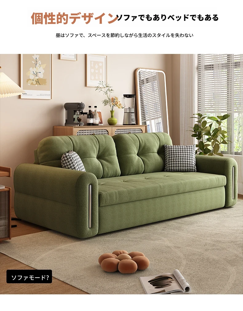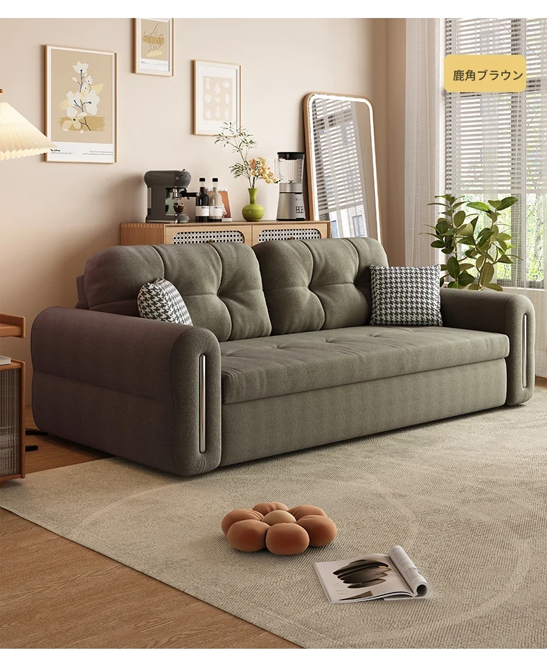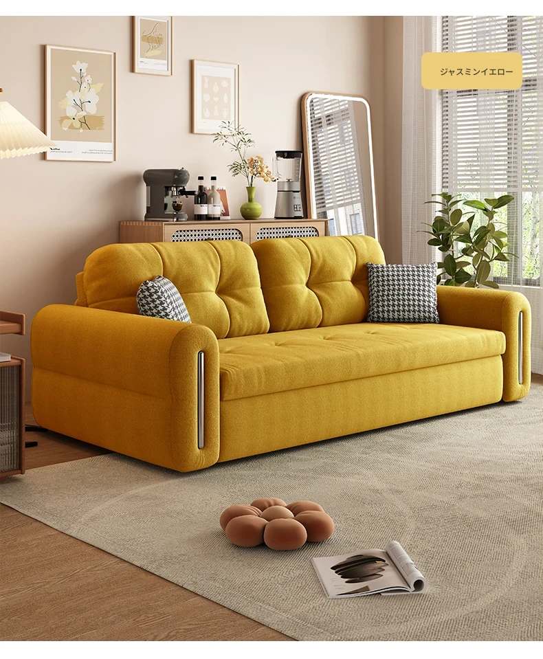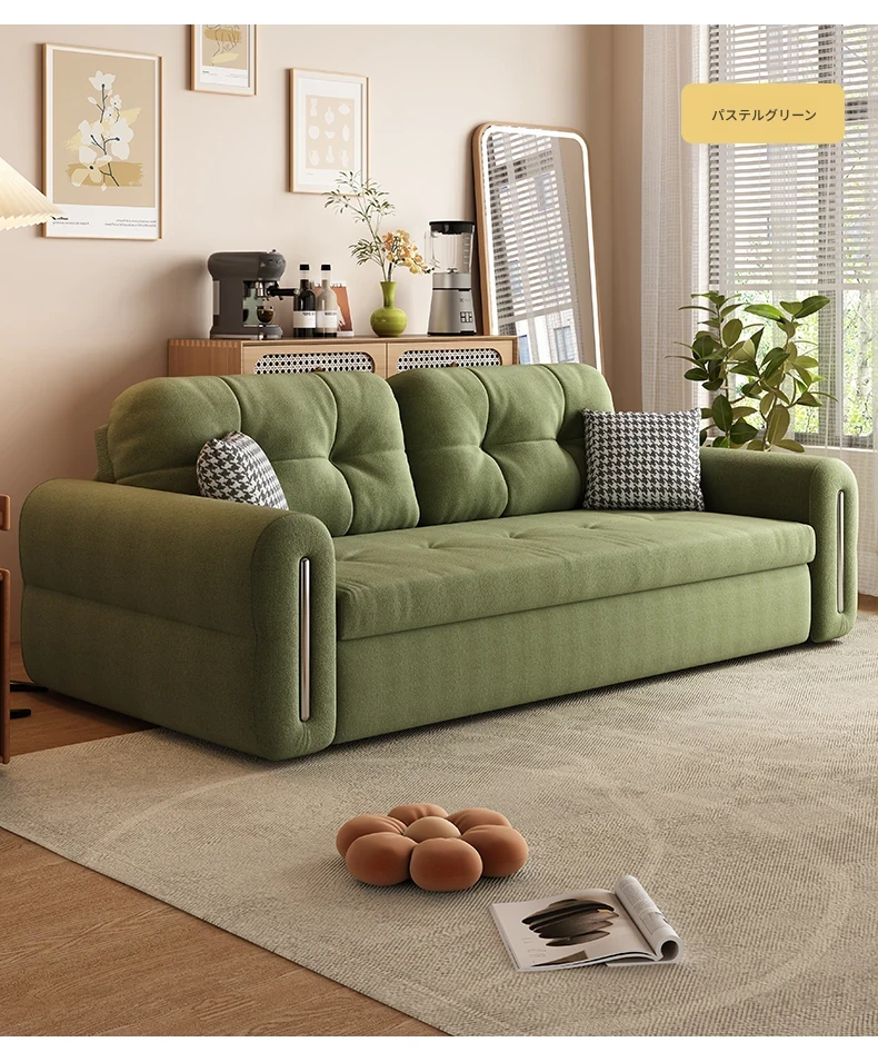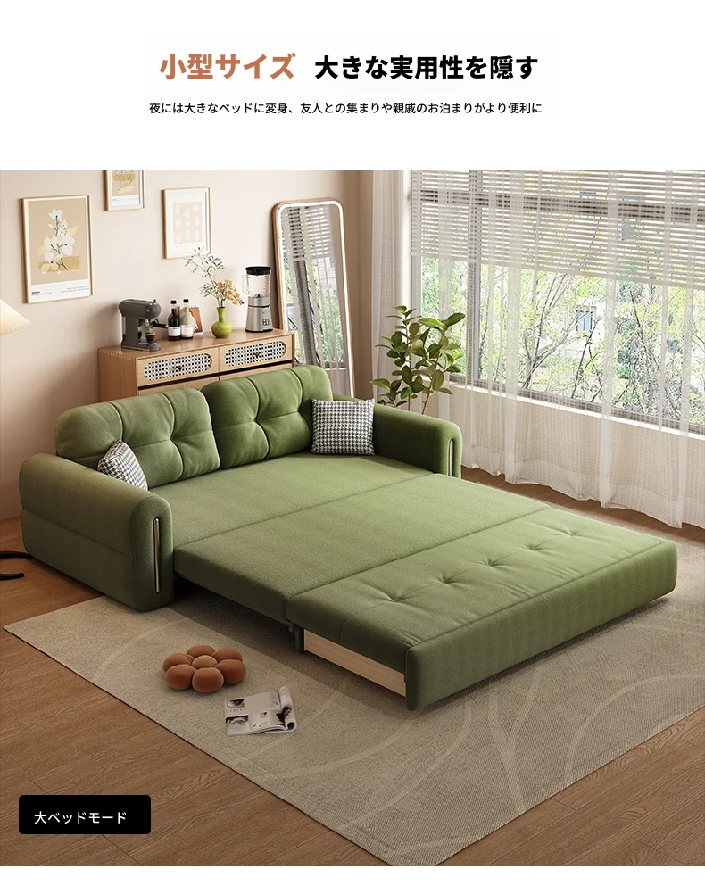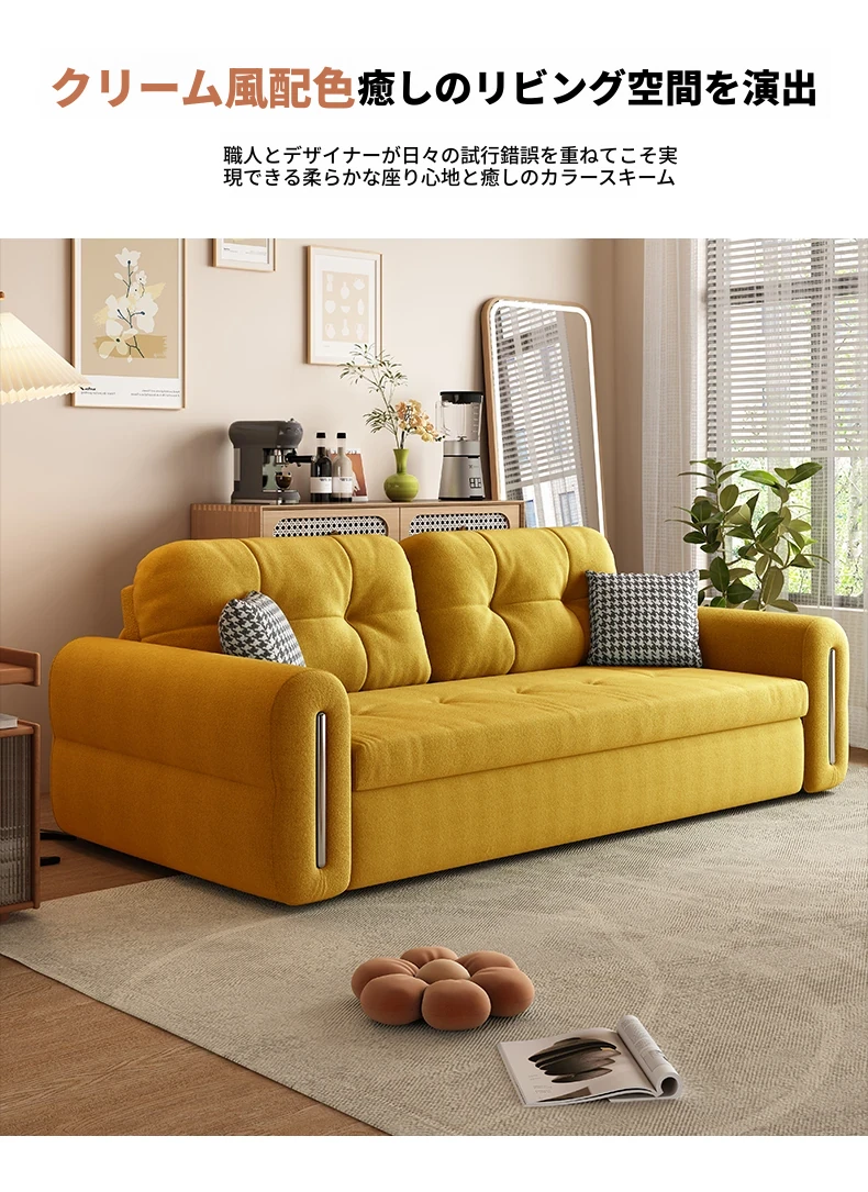 カエリア クリーム風折りたたみ雲ソファベッド|多機能2人用|家族向け・小型リビングに最適な省スペースデザイン!快適でおしゃれな居心地を実現。