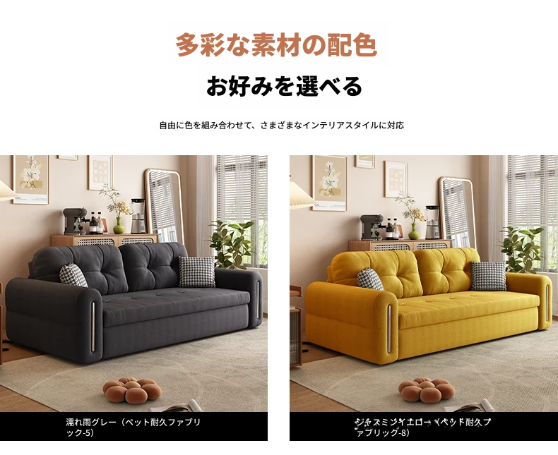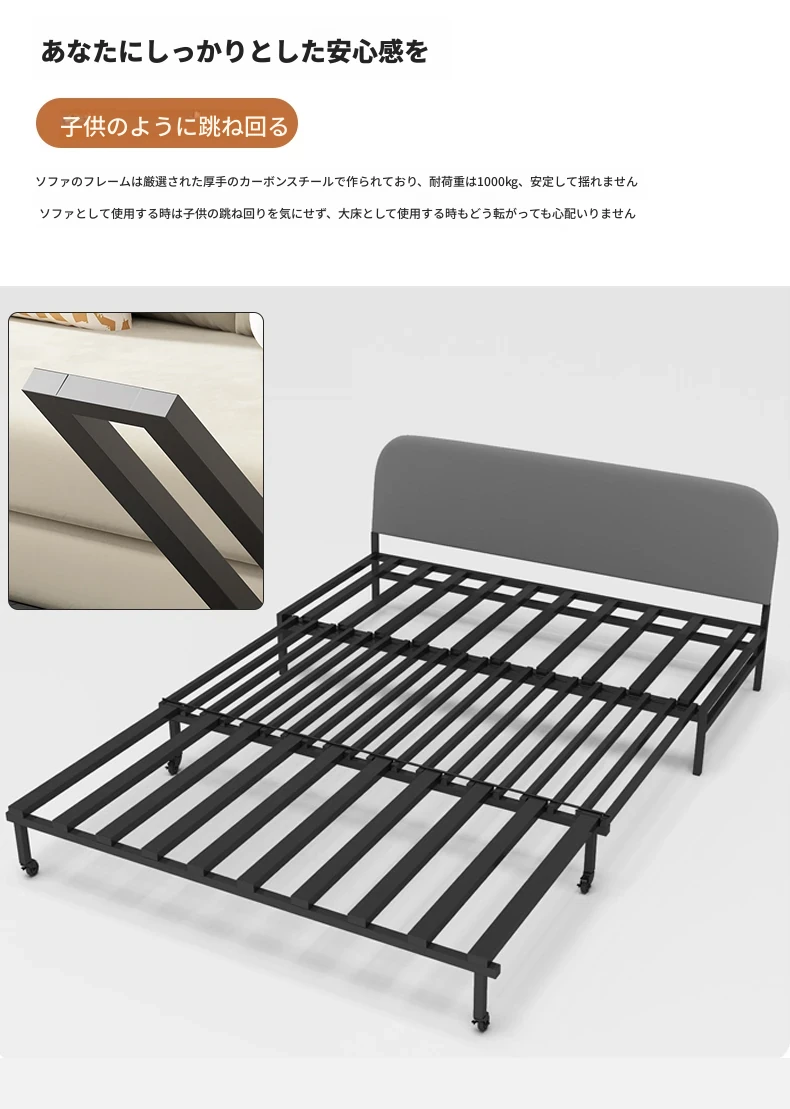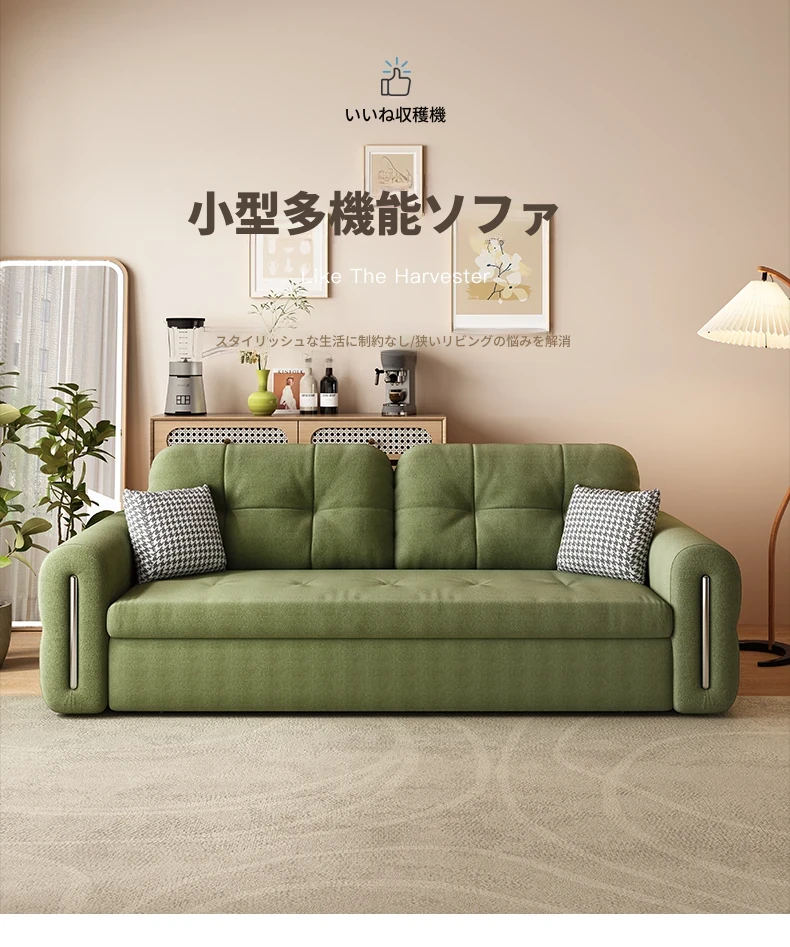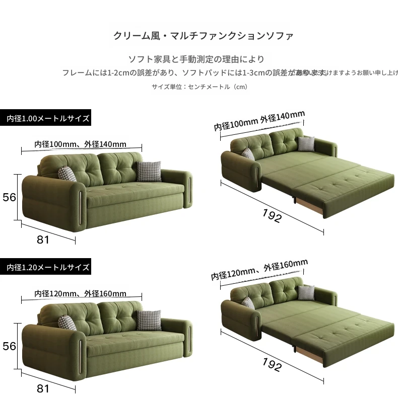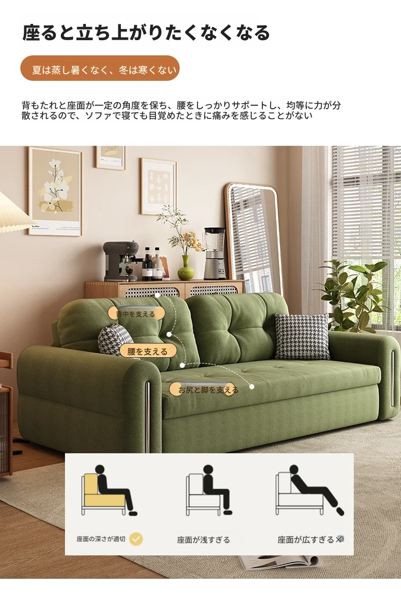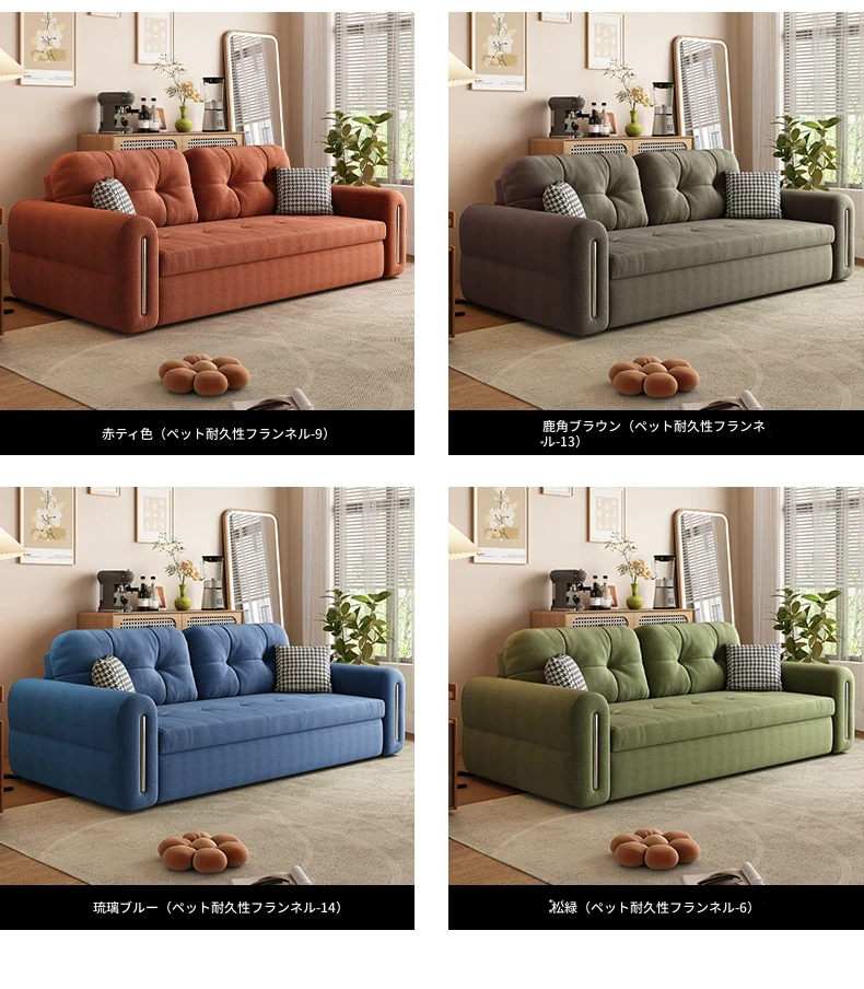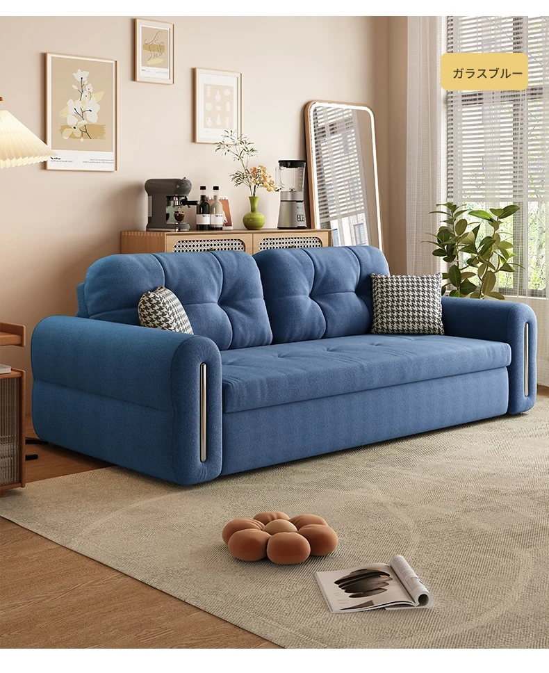 カエリア クリーム風折りたたみ雲ソファベッド|多機能2人用|家族向け・小型リビングに最適な省スペースデザイン!快適でおしゃれな居心地を実現。