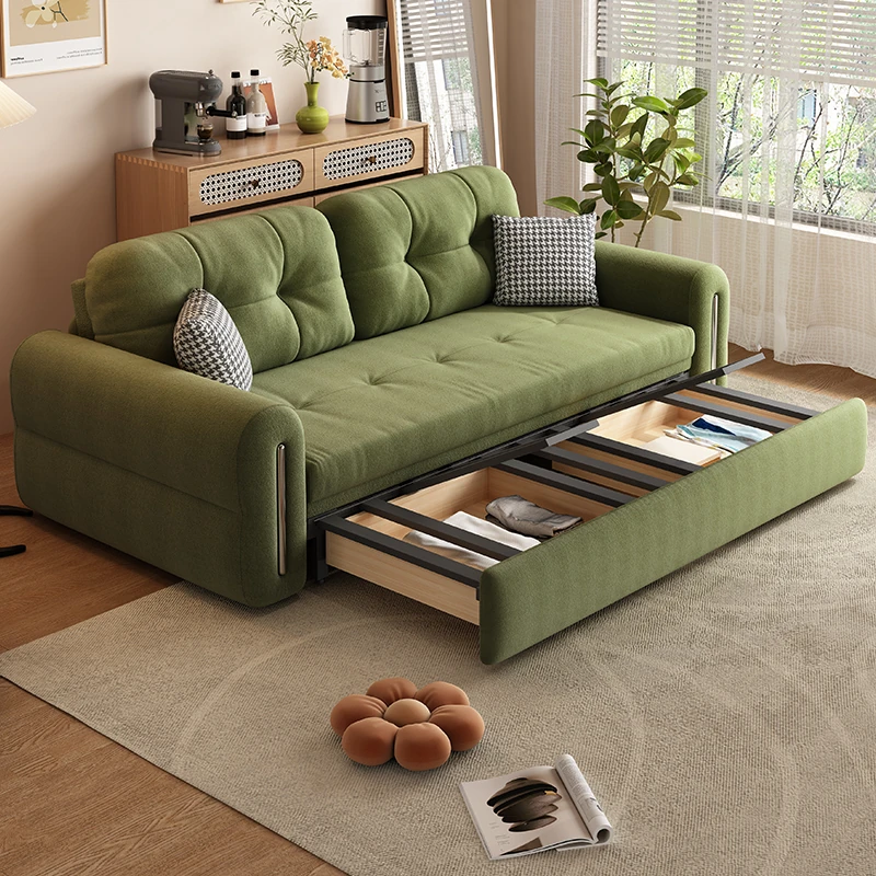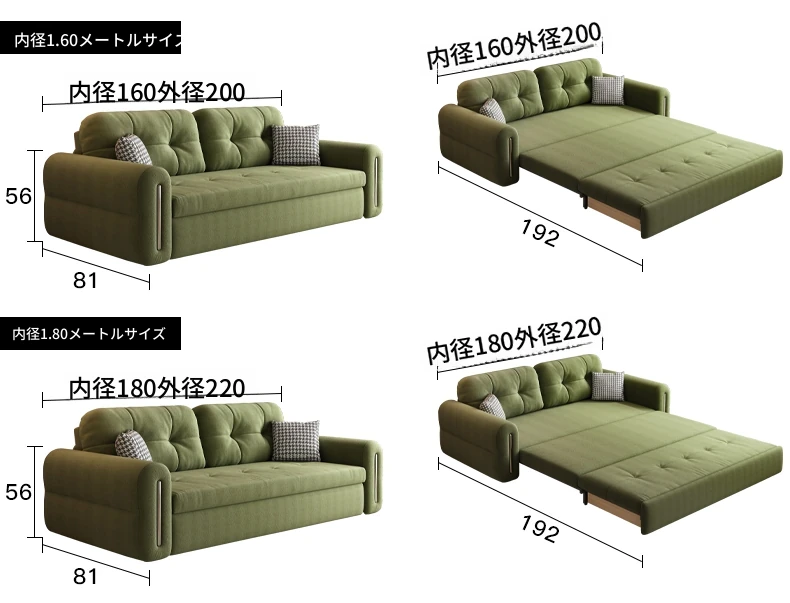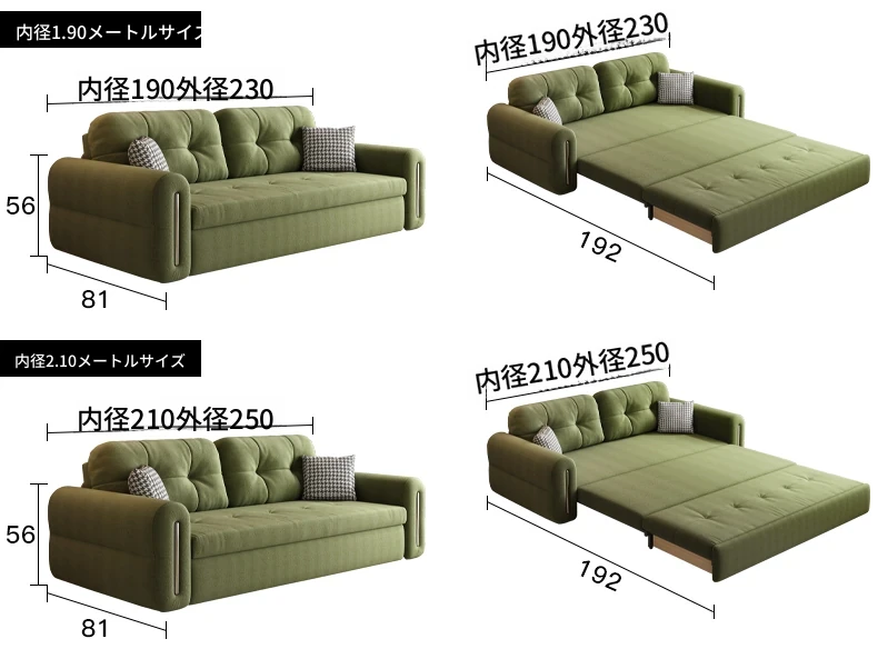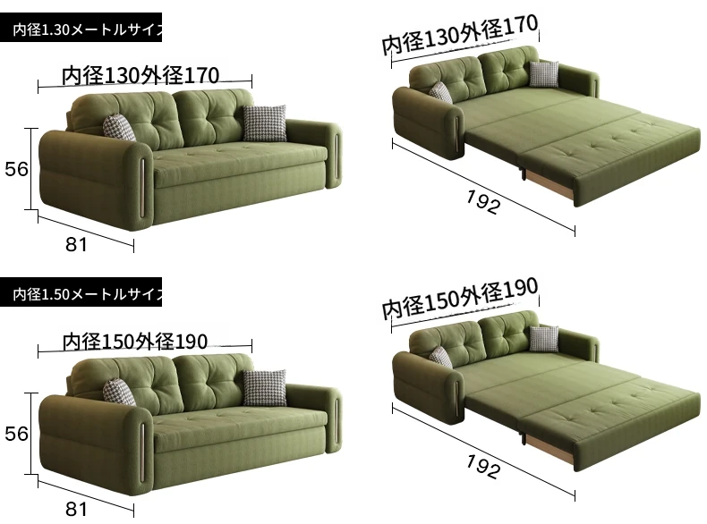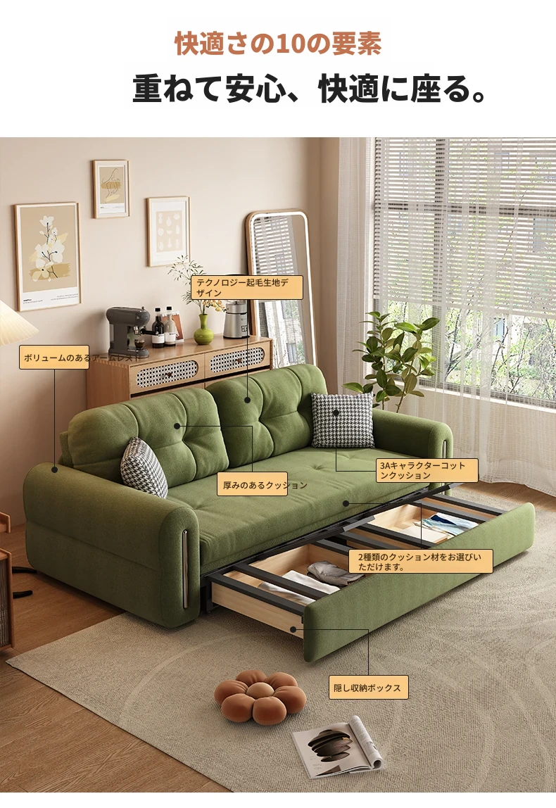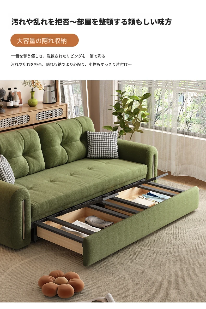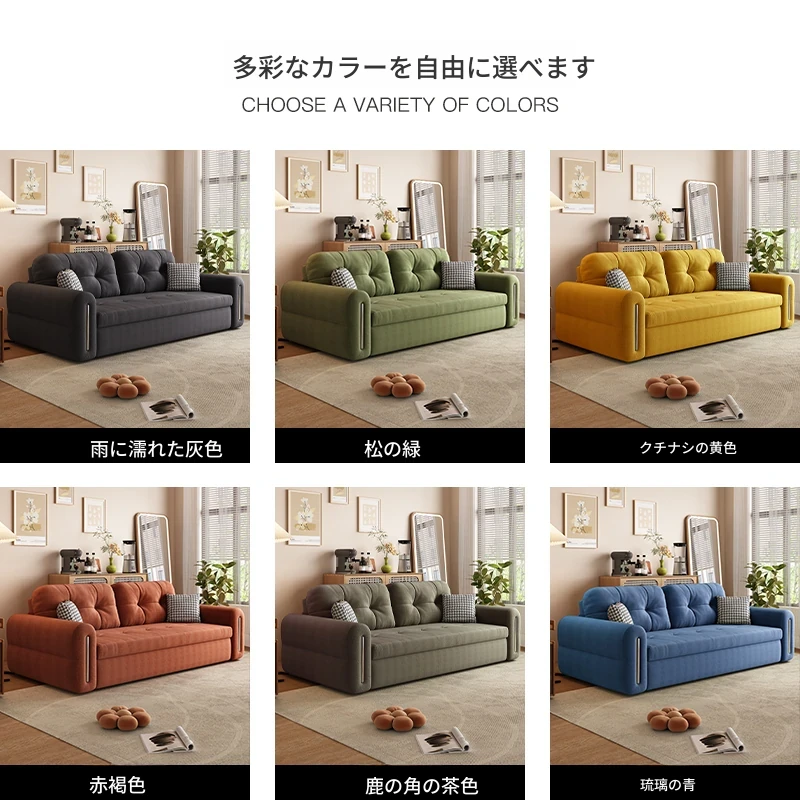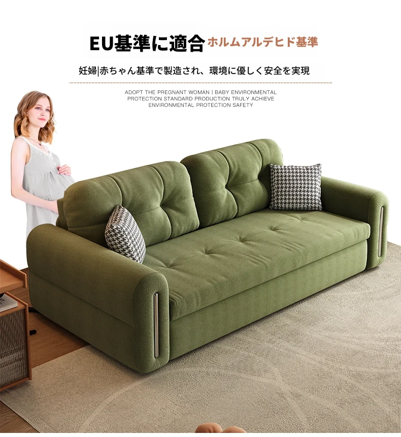 カエリア クリーム風折りたたみ雲ソファベッド|多機能2人用|家族向け・小型リビングに最適な省スペースデザイン!快適でおしゃれな居心地を実現。