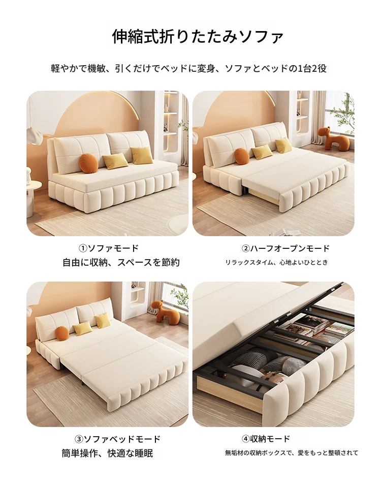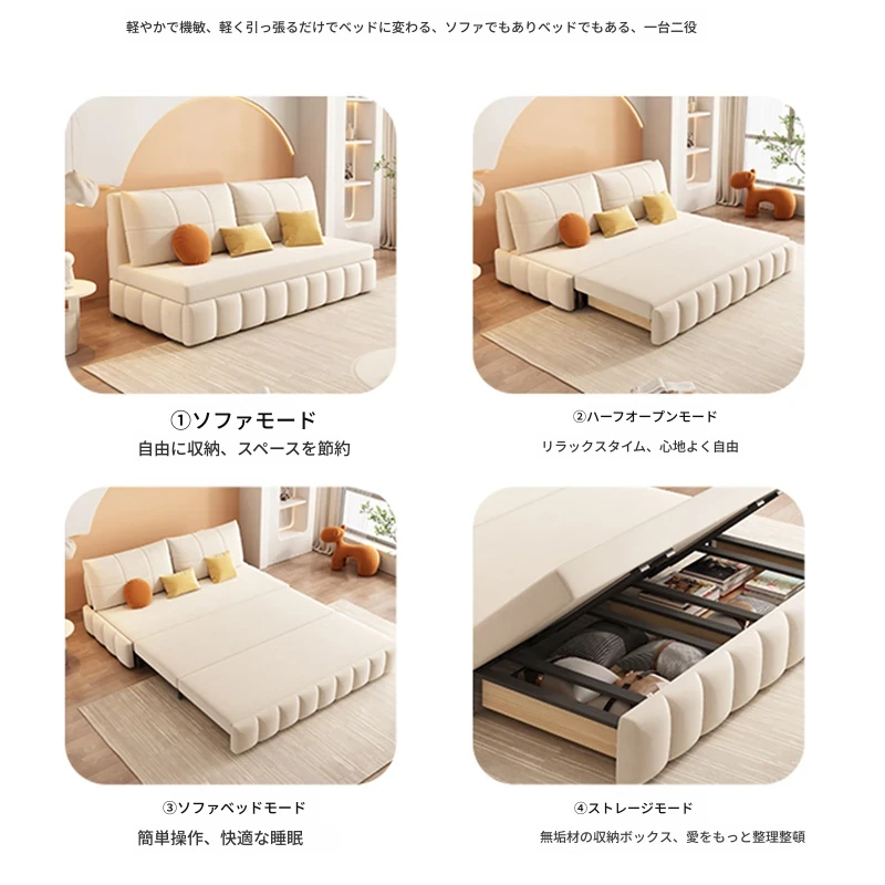 カリア ソファベッド テクノロジー起毛生地 使用可能な折りたたみ式 小型住宅向け リビングや寝室に最適な多機能 人気モデル