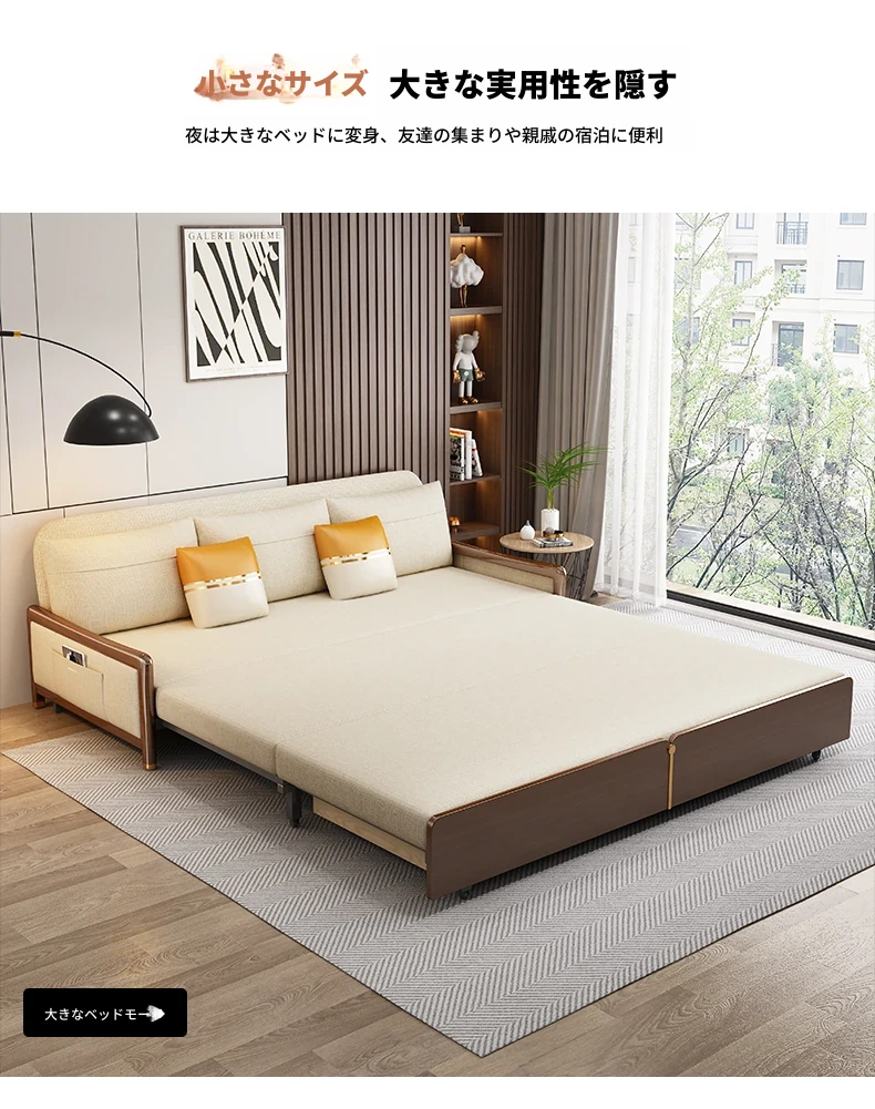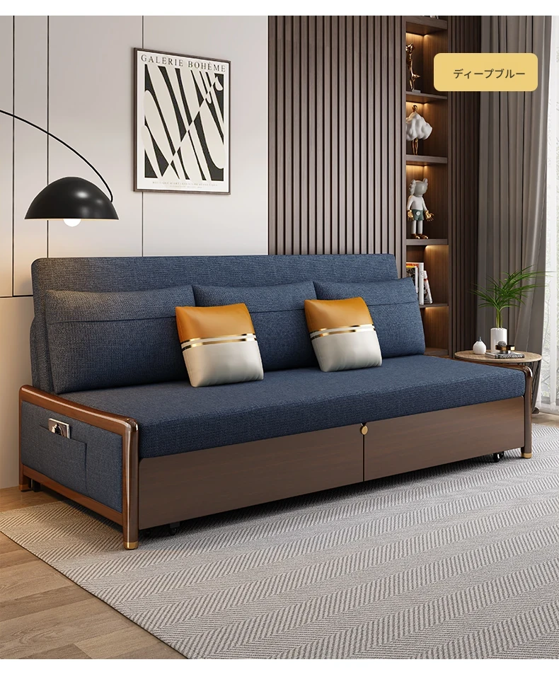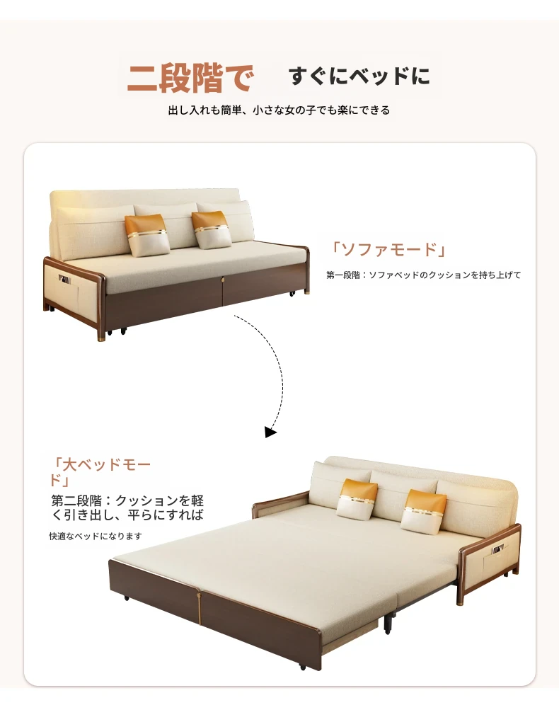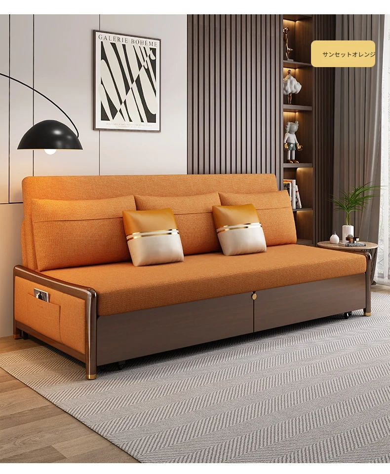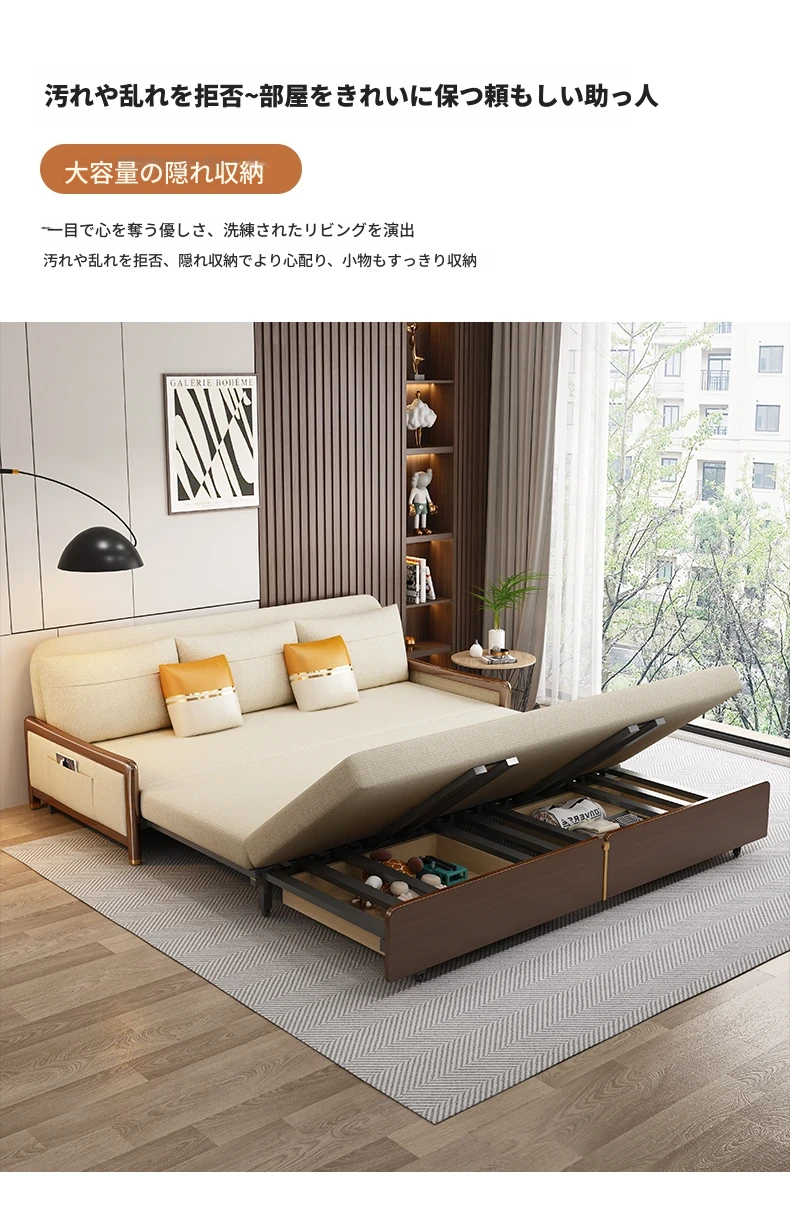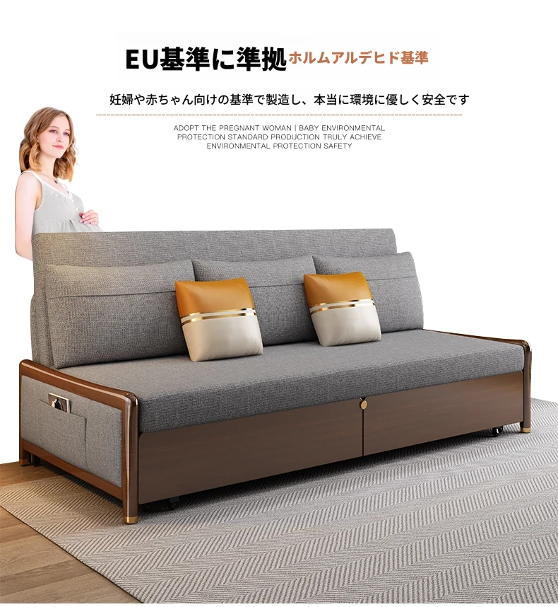 カリヤ 天然木製ソファベッド 折りたたみ式・多機能・引き出し付き 人気の小型リビング用ソファベッド スペースを効率的に利用して、快適なひとときをお届けします!