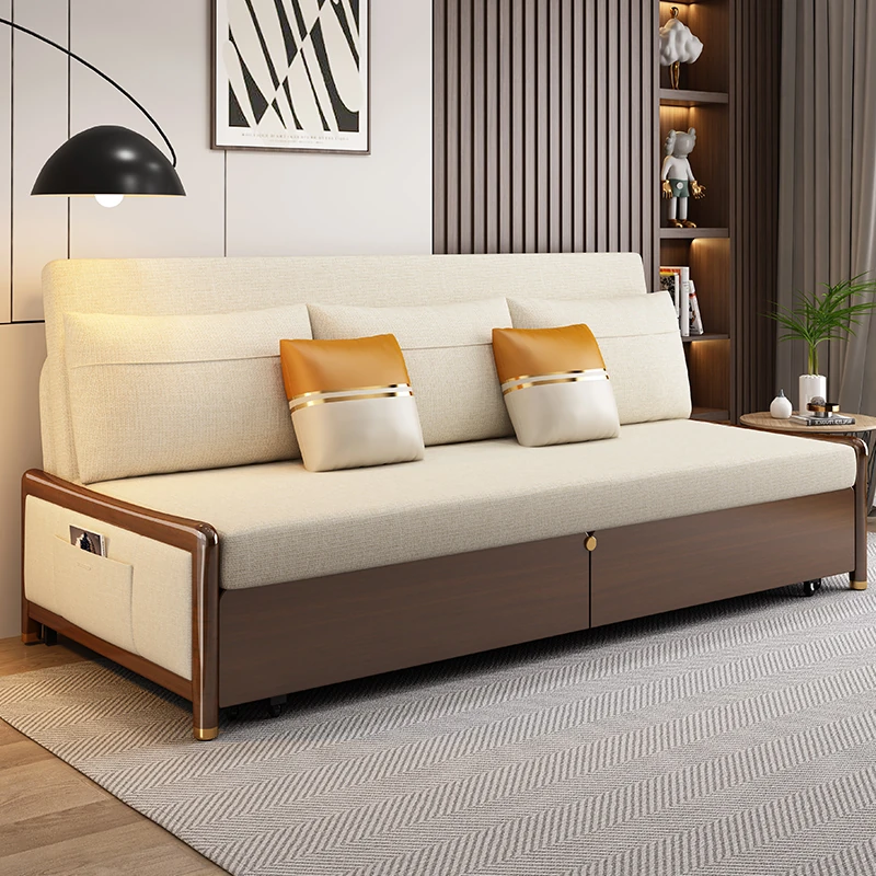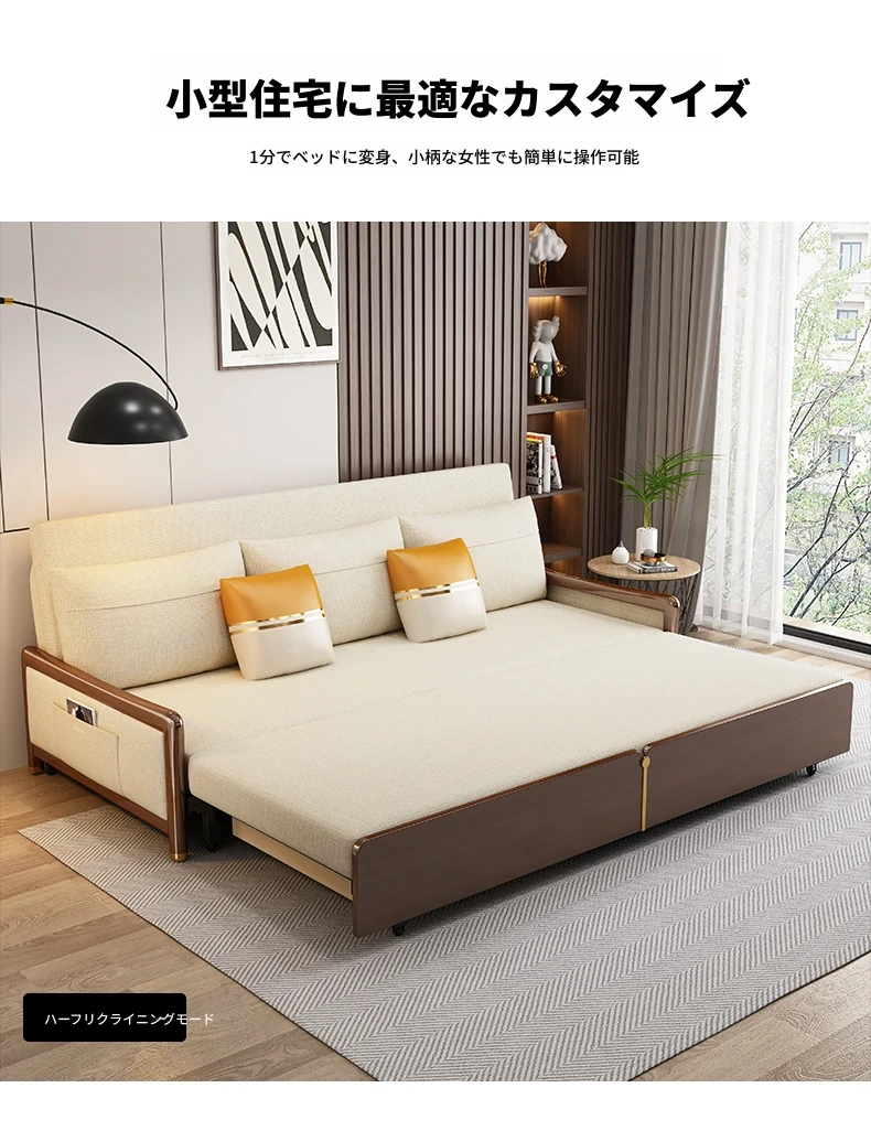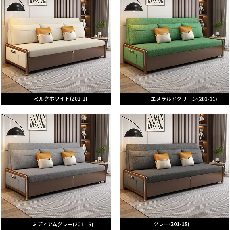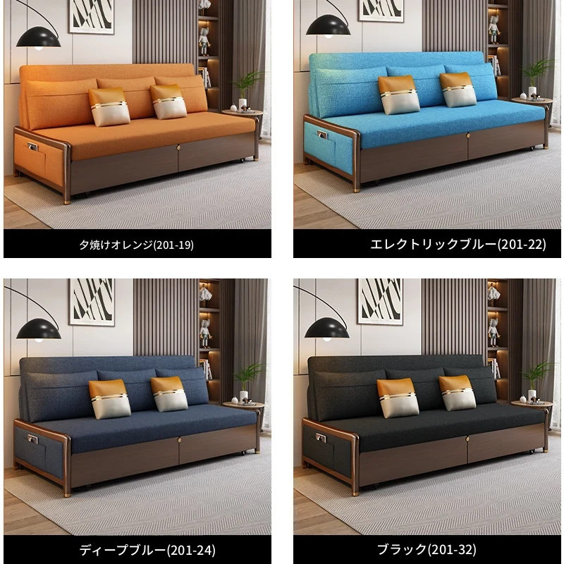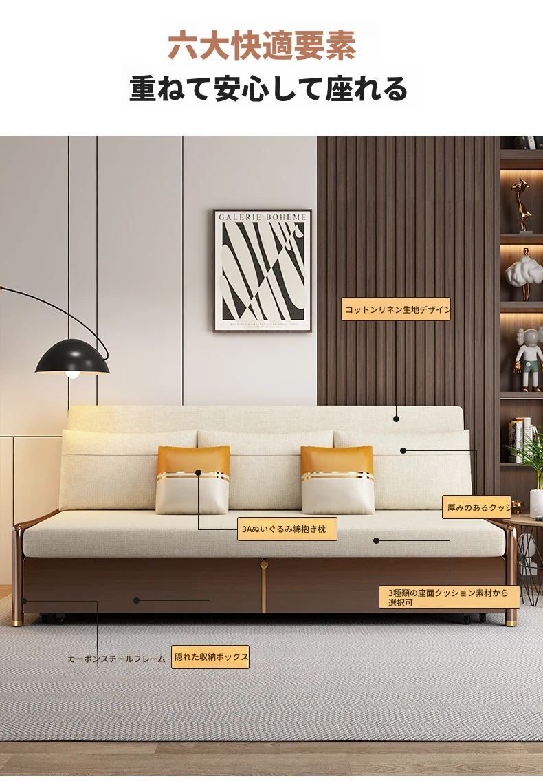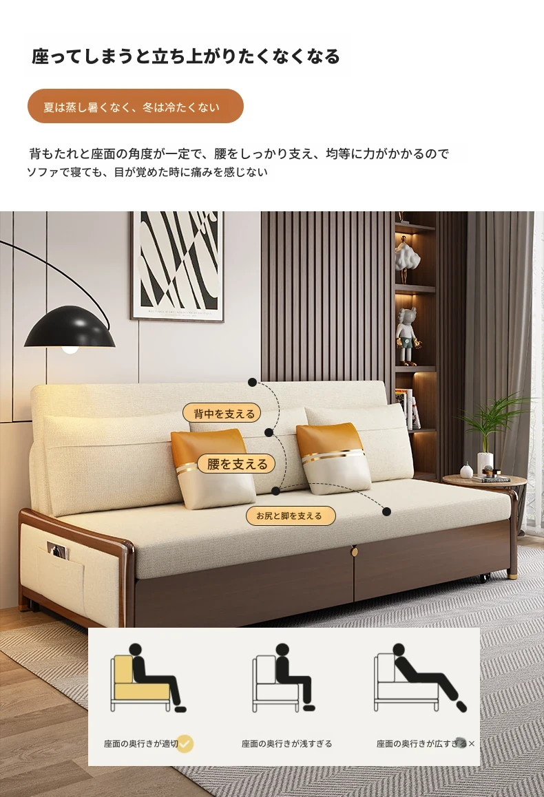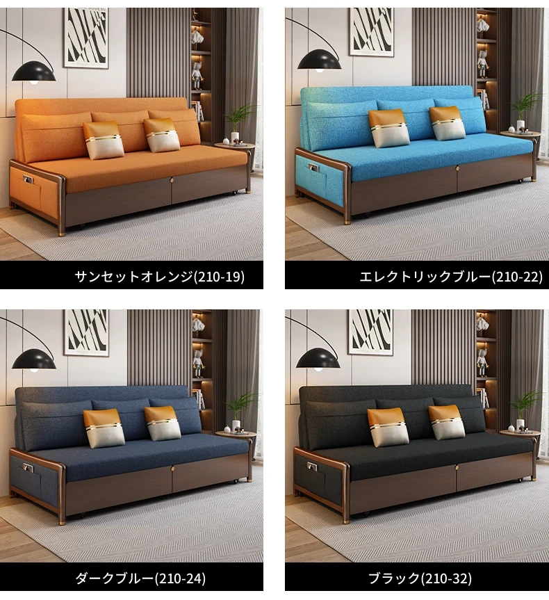 カリヤ 天然木製ソファベッド 折りたたみ式・多機能・引き出し付き 人気の小型リビング用ソファベッド スペースを効率的に利用して、快適なひとときをお届けします!