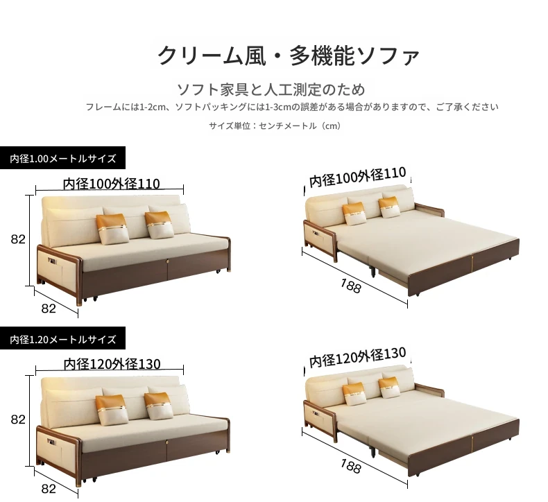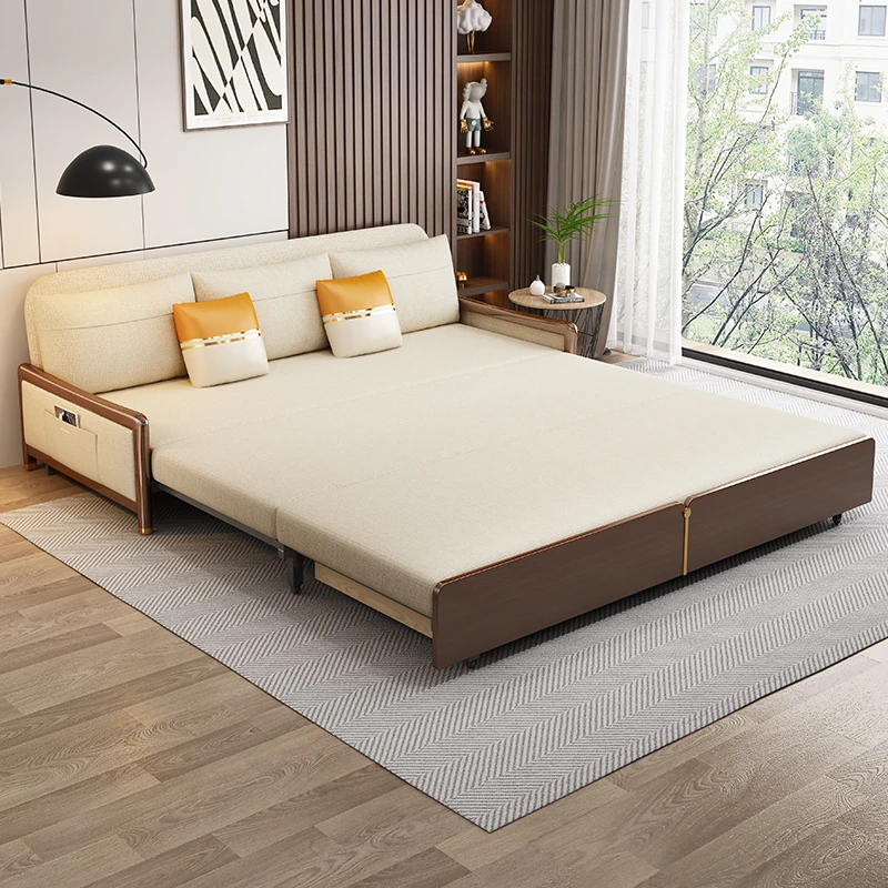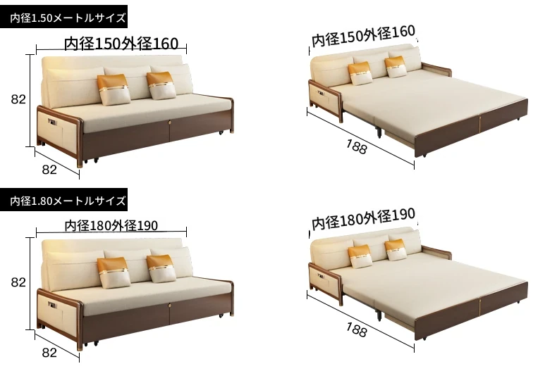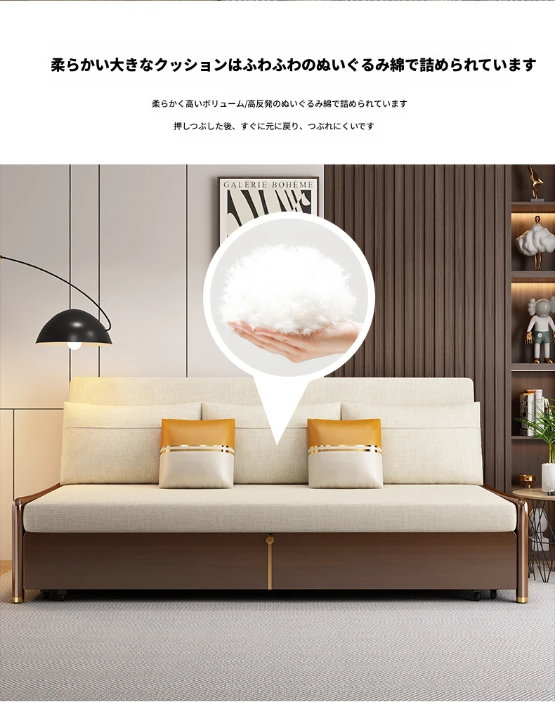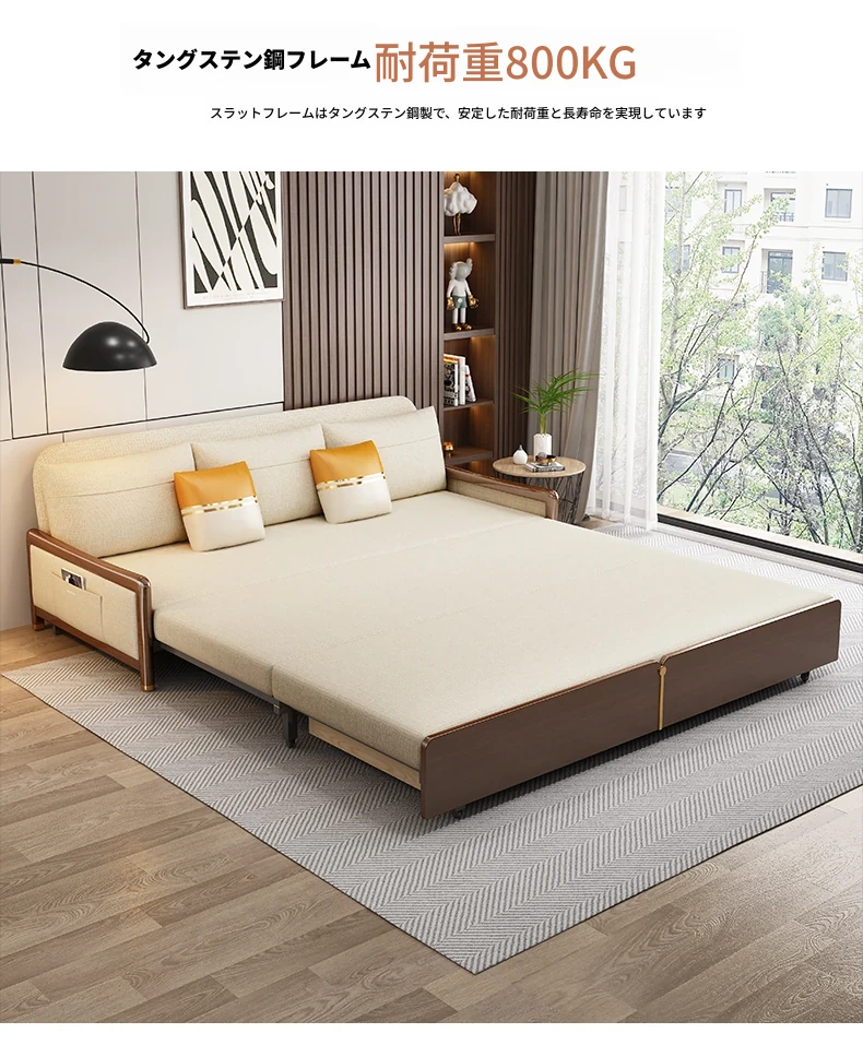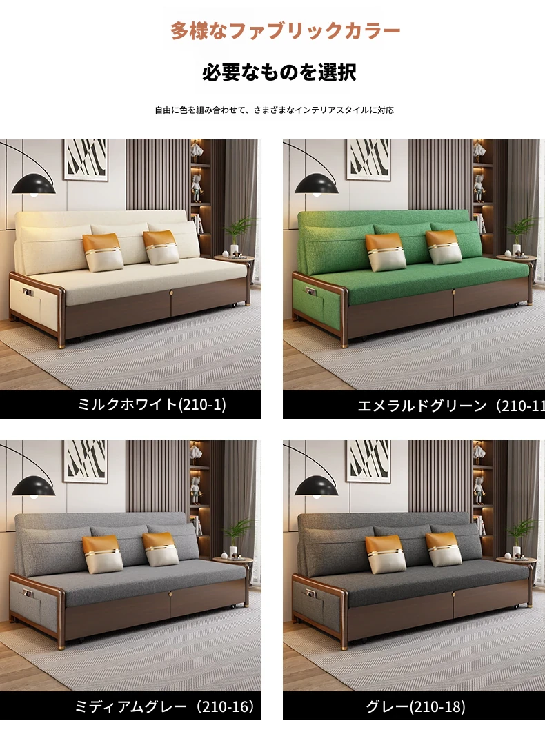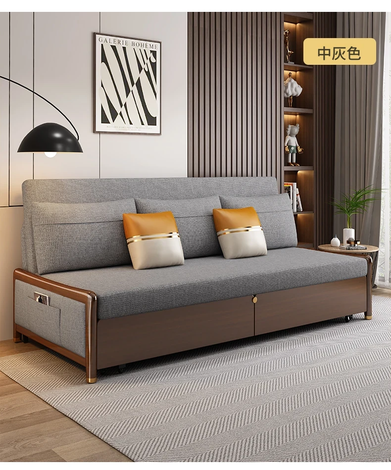 カリヤ 天然木製ソファベッド 折りたたみ式・多機能・引き出し付き 人気の小型リビング用ソファベッド スペースを効率的に利用して、快適なひとときをお届けします!