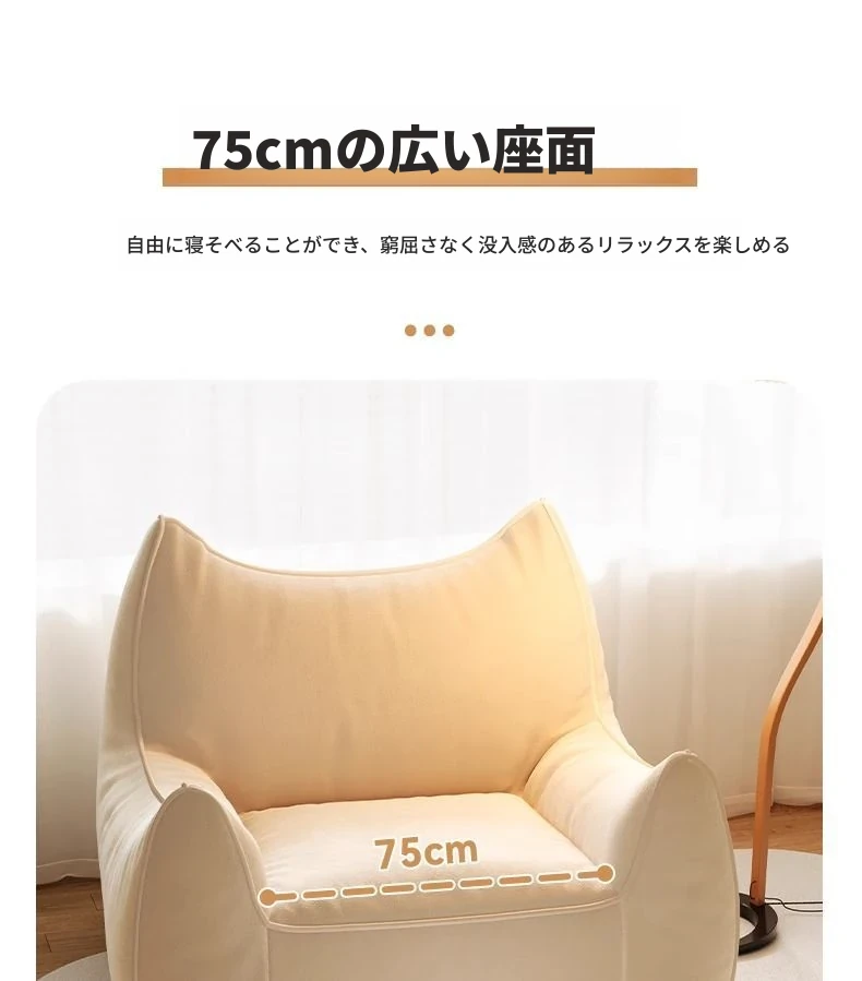 今遇小悪魔のリラックスソファー!寝転んでもOK、快適な豆袋ソファー。賃貸にも最適なトレンディな一人用ソファ、畳の上でも使えます!あなたの快適な空間を演出します。