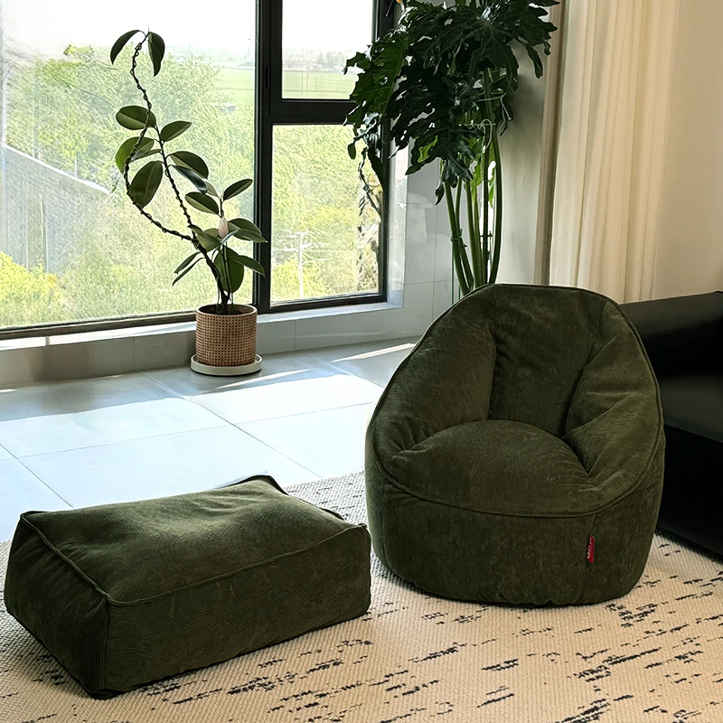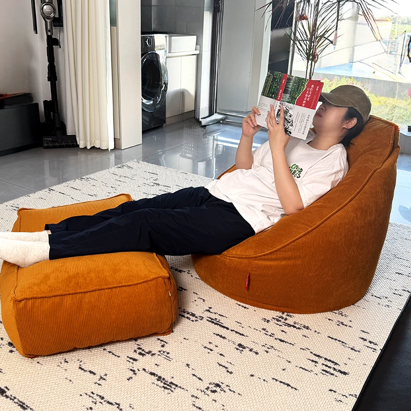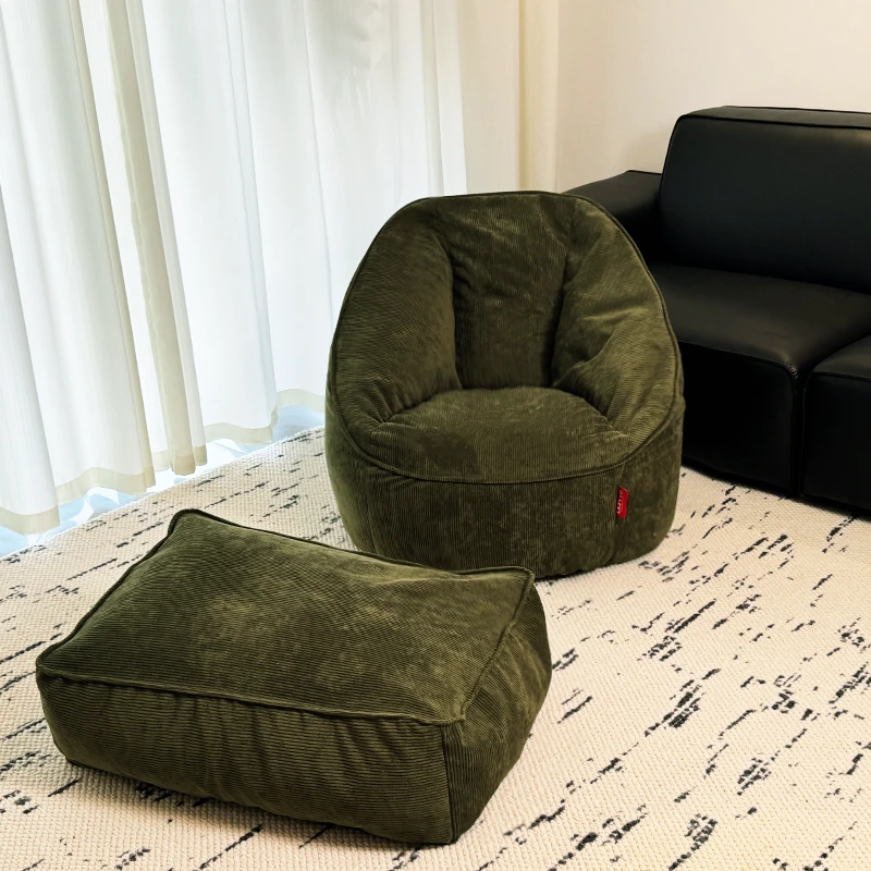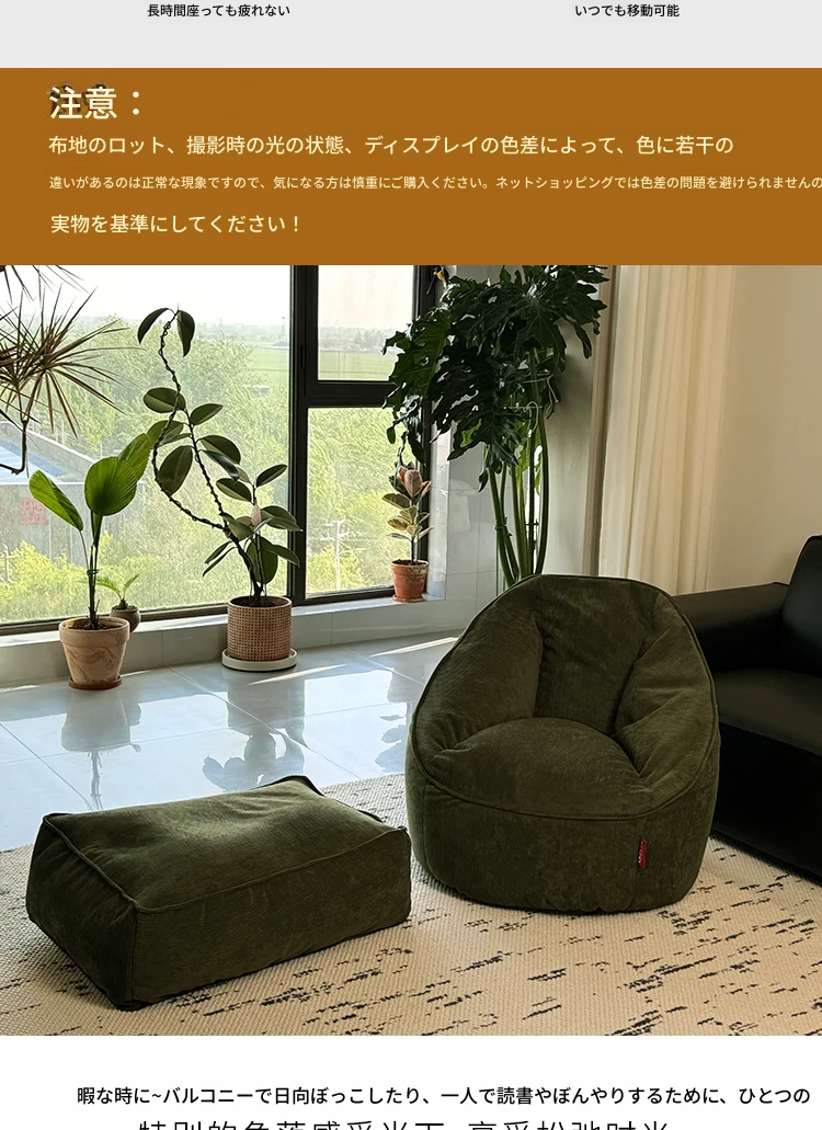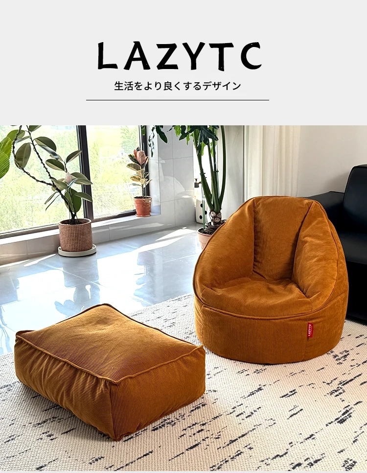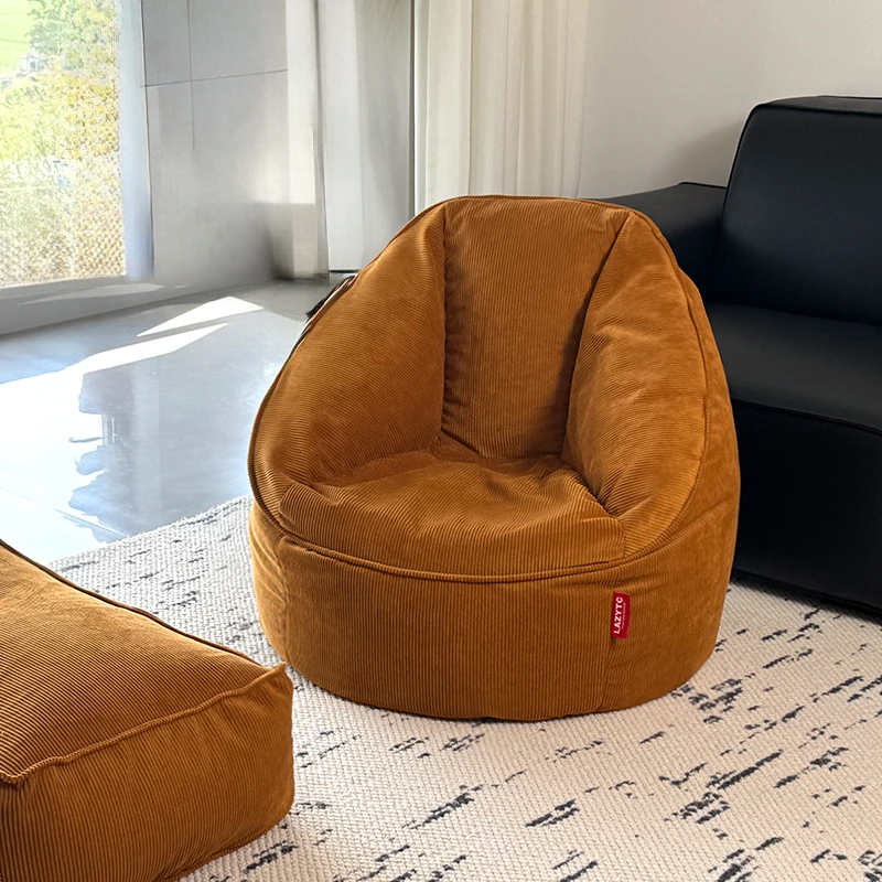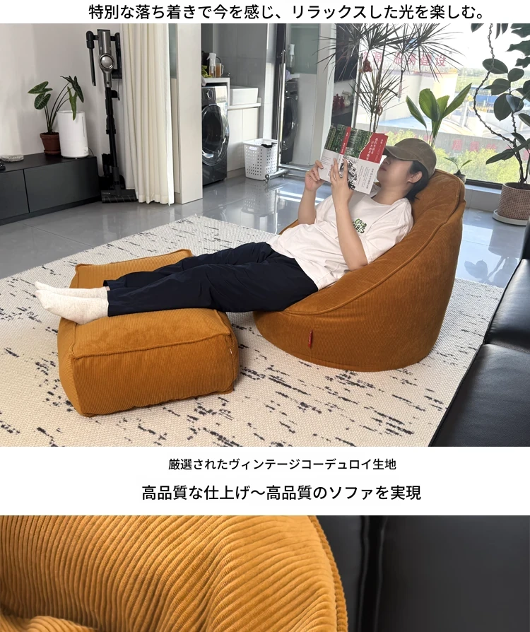 LAZYTCレトロコーデュロイリラックスソファー|取り外し可能なビーズクッション|一人用|バルコニーや書斎に最適な快適なリクライニングチェア|おしゃれなデザインで、くつろぎの時間をもっと楽しく!