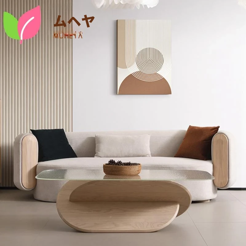 ホワイトアッシュ材の現代風ソファ「L8902#」- ナチュラルオイル仕上げ、シンプルで洗練されたデザイン。リビングや服飾店の休憩スペースに最適な3人掛け、軽やかな贅沢感を演出!