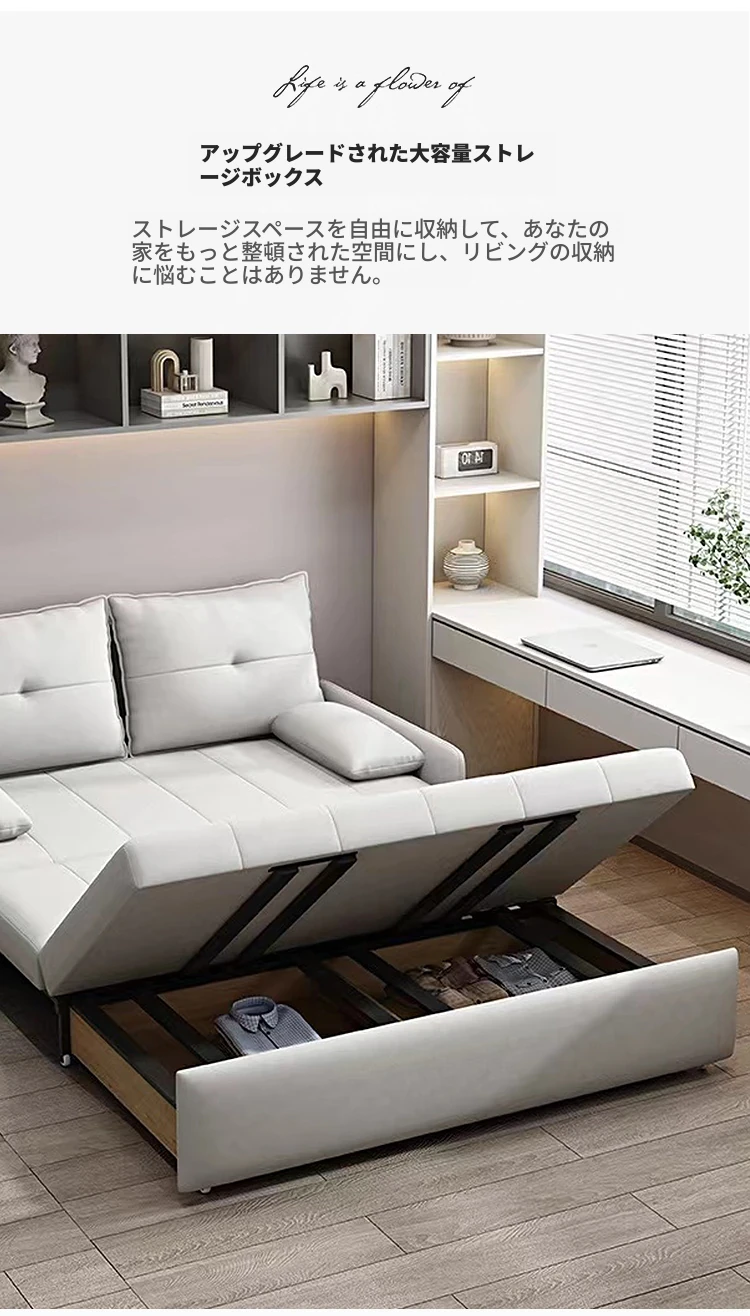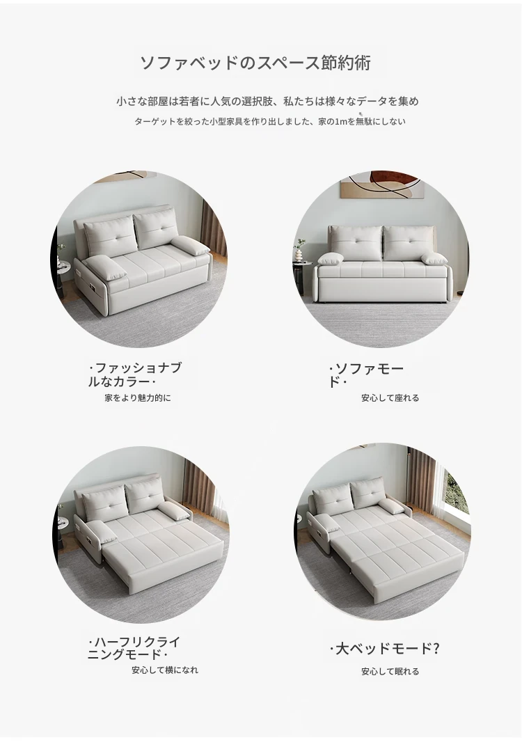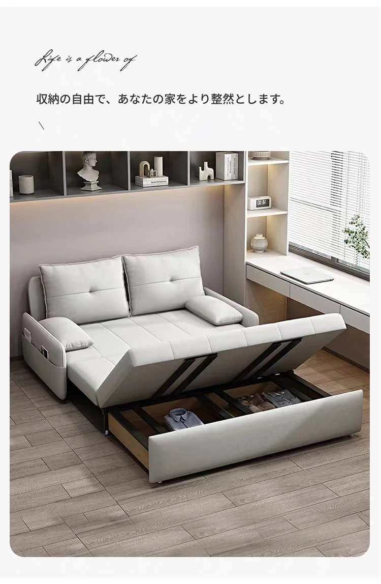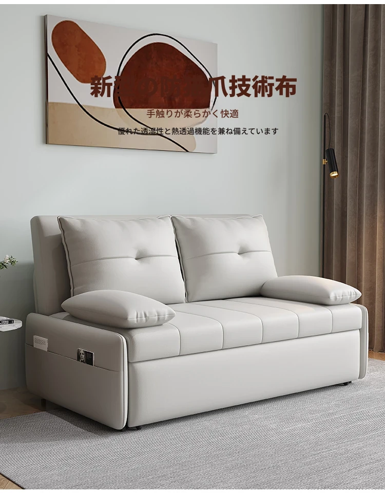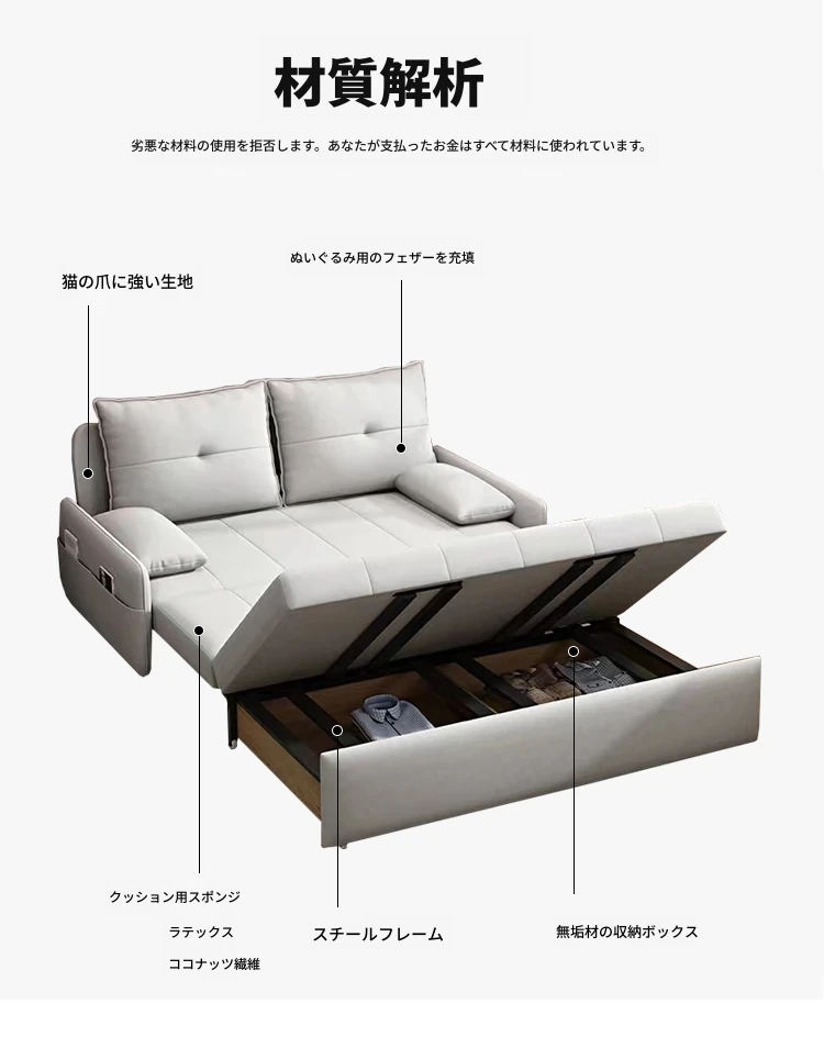 リンパイセン現代ミニマリストソファベッド、収納付きスライド式デザイン!小型住宅に最適な二人用多機能折りたたみベッド。リビングをスタイリッシュに演出し、快適な睡眠空間を提供します!