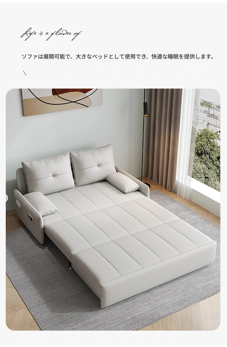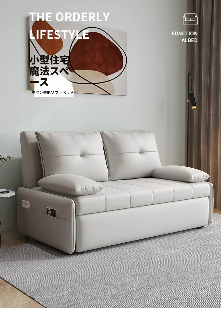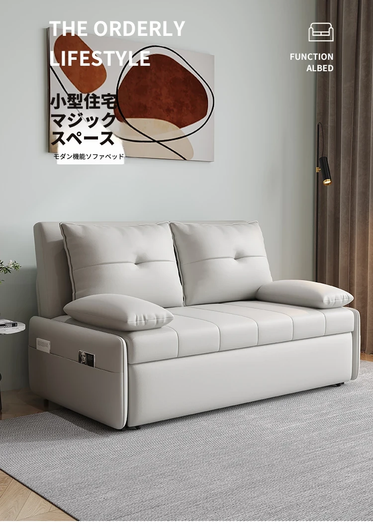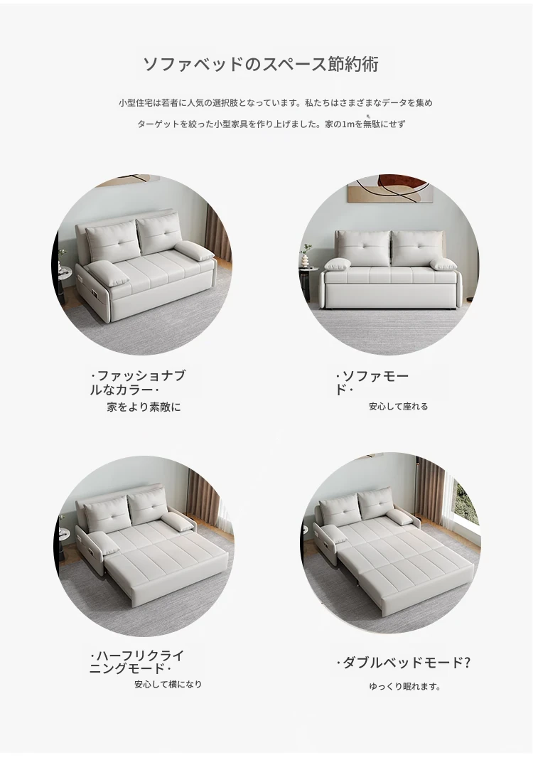 リンパイセン現代ミニマリストソファベッド、収納付きスライド式デザイン!小型住宅に最適な二人用多機能折りたたみベッド。リビングをスタイリッシュに演出し、快適な睡眠空間を提供します!