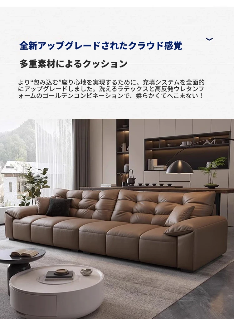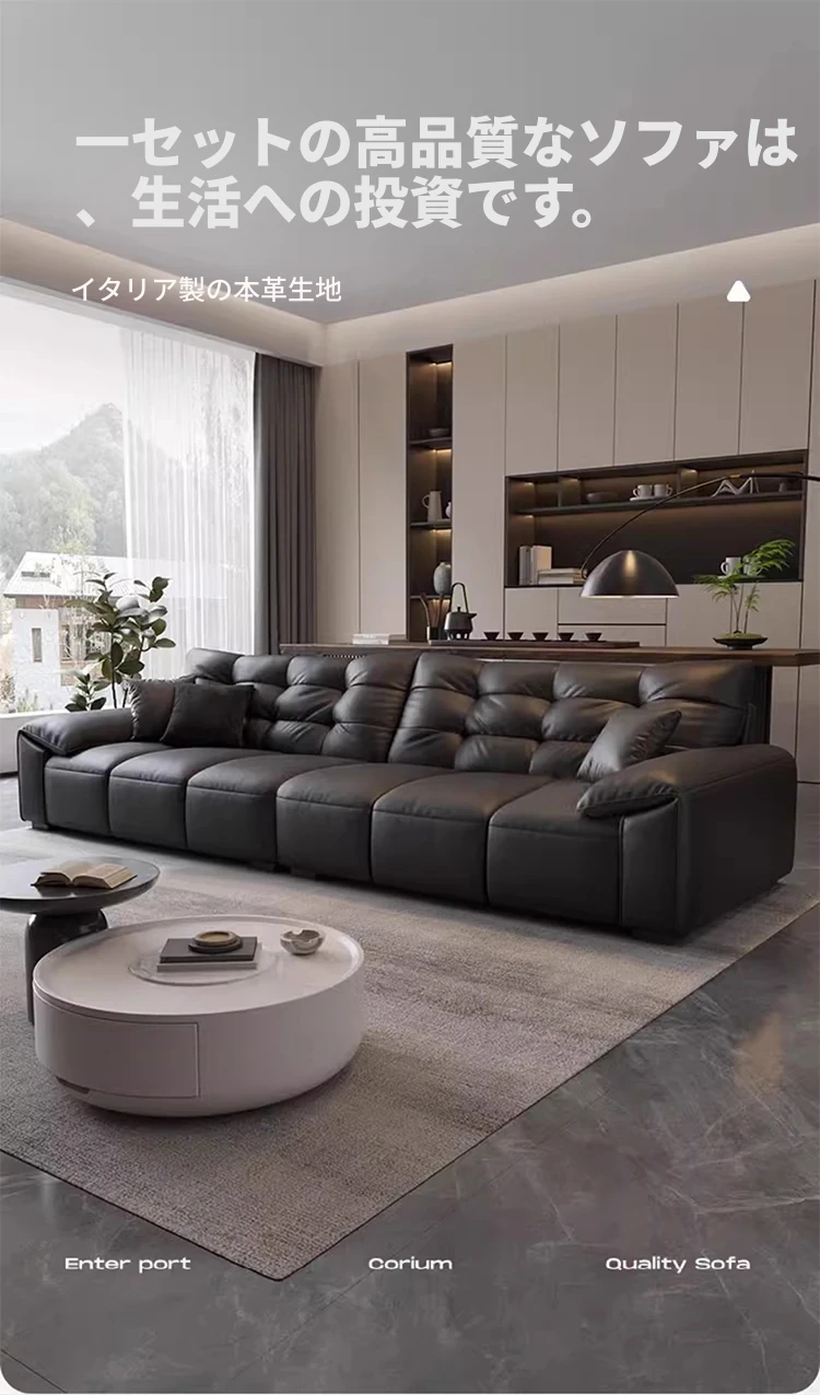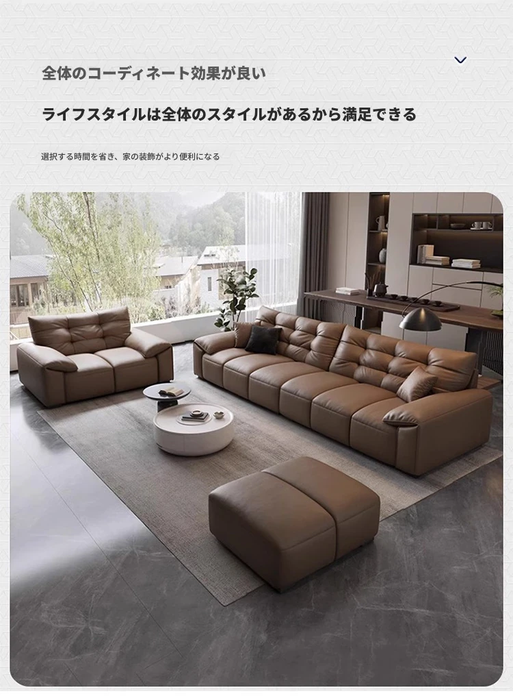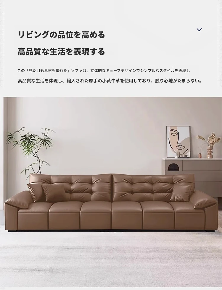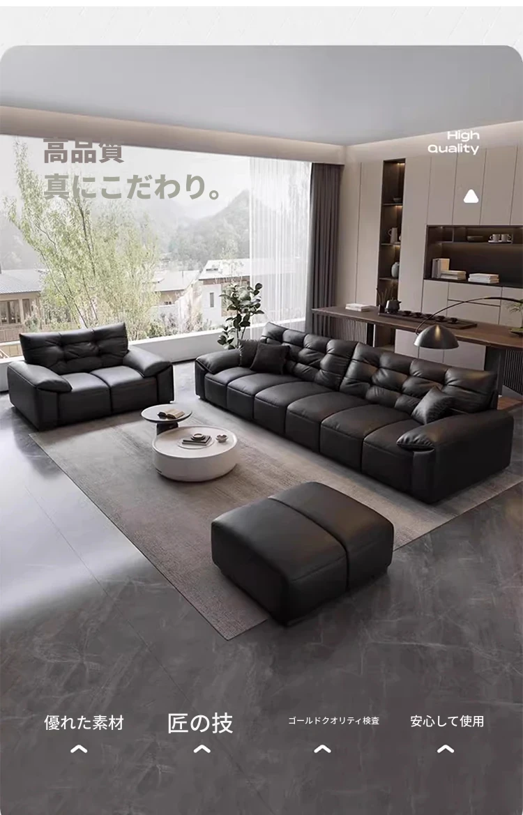 リオシーイタリアンミニマリストレザーソファ|モダンシンプルデザイン|大きな耳を持つ真皮ソファ|リビングにぴったりの家具!快適さとスタイルを兼ね備えた一品!