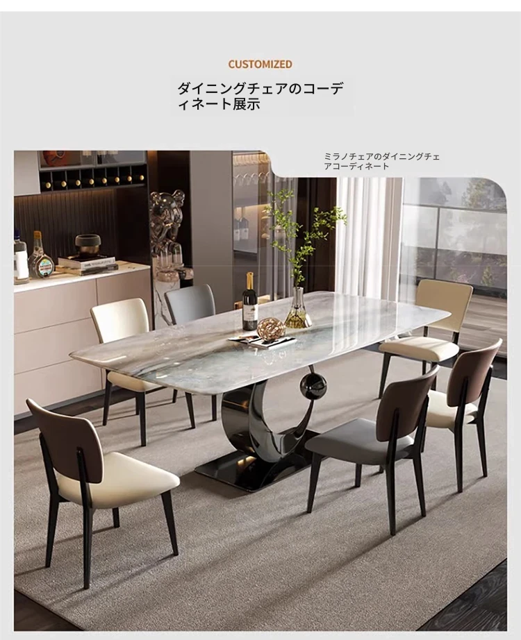 ラグジュアリーな岩板ダイニングテーブル+ミラーチェア*6脚 ラグジュアリーな岩板ダイニングテーブル+ミラーチェア*6脚