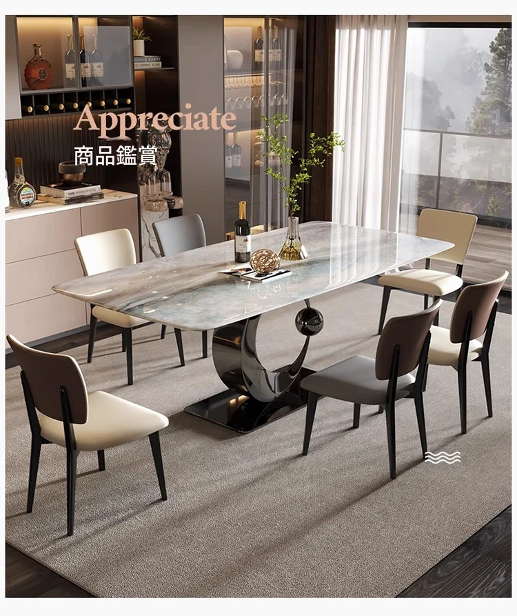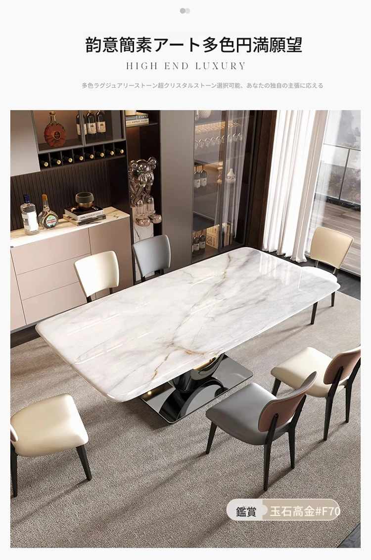 ラグジュアリーな岩板ダイニングテーブル+厚手のベレチェア*6脚 ラグジュアリーな岩板ダイニングテーブル+厚手のベレチェア*6脚