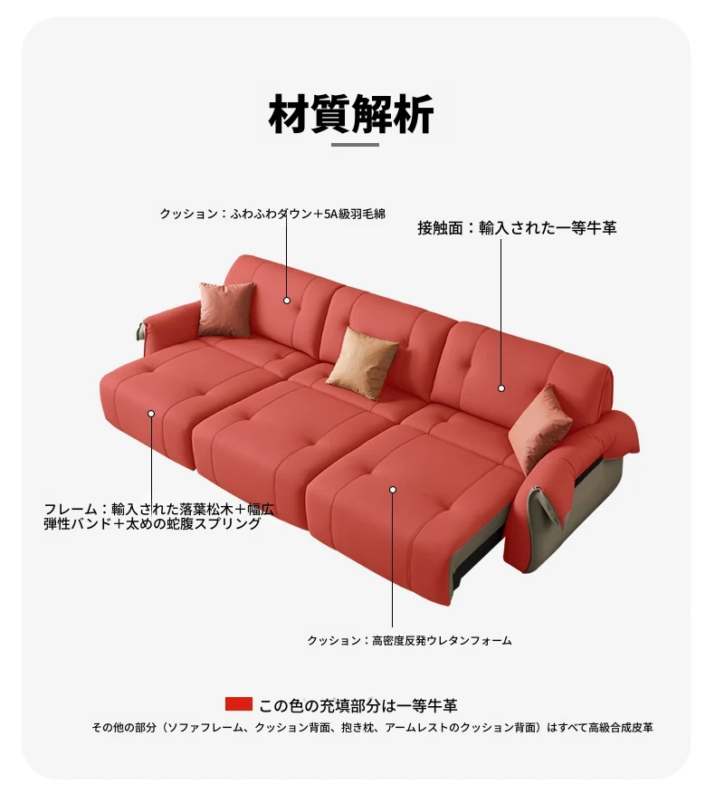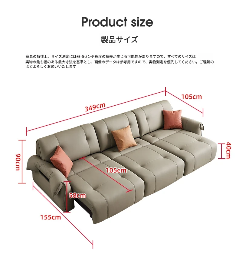 大三人位3.49M【頭層真皮+50D反発スポンジ】全電動 大三人位3.49M【頭層真皮+50D反発スポンジ】全電動