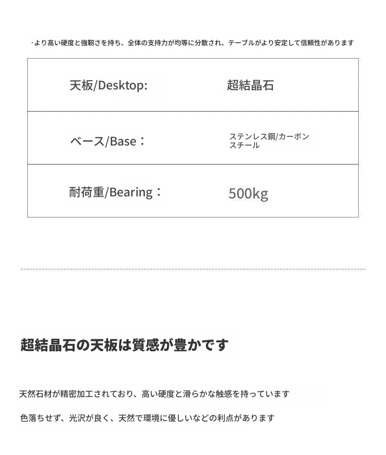 1.5メートル超晶石ダイニングテーブル 1.5メートル超晶石ダイニングテーブル