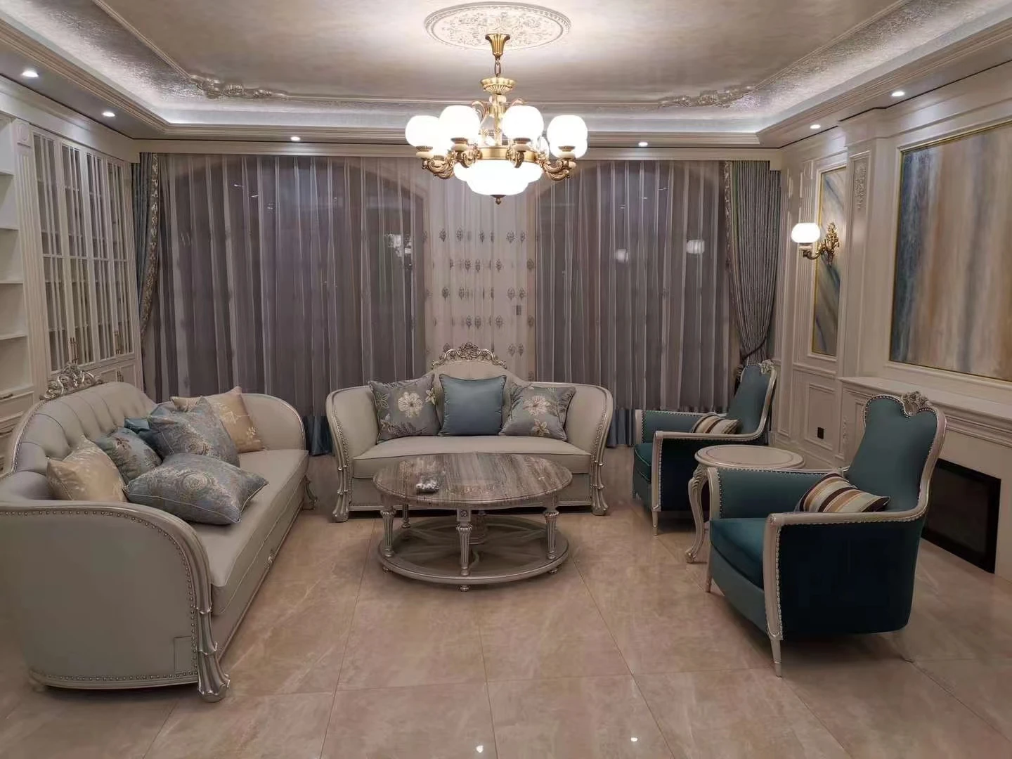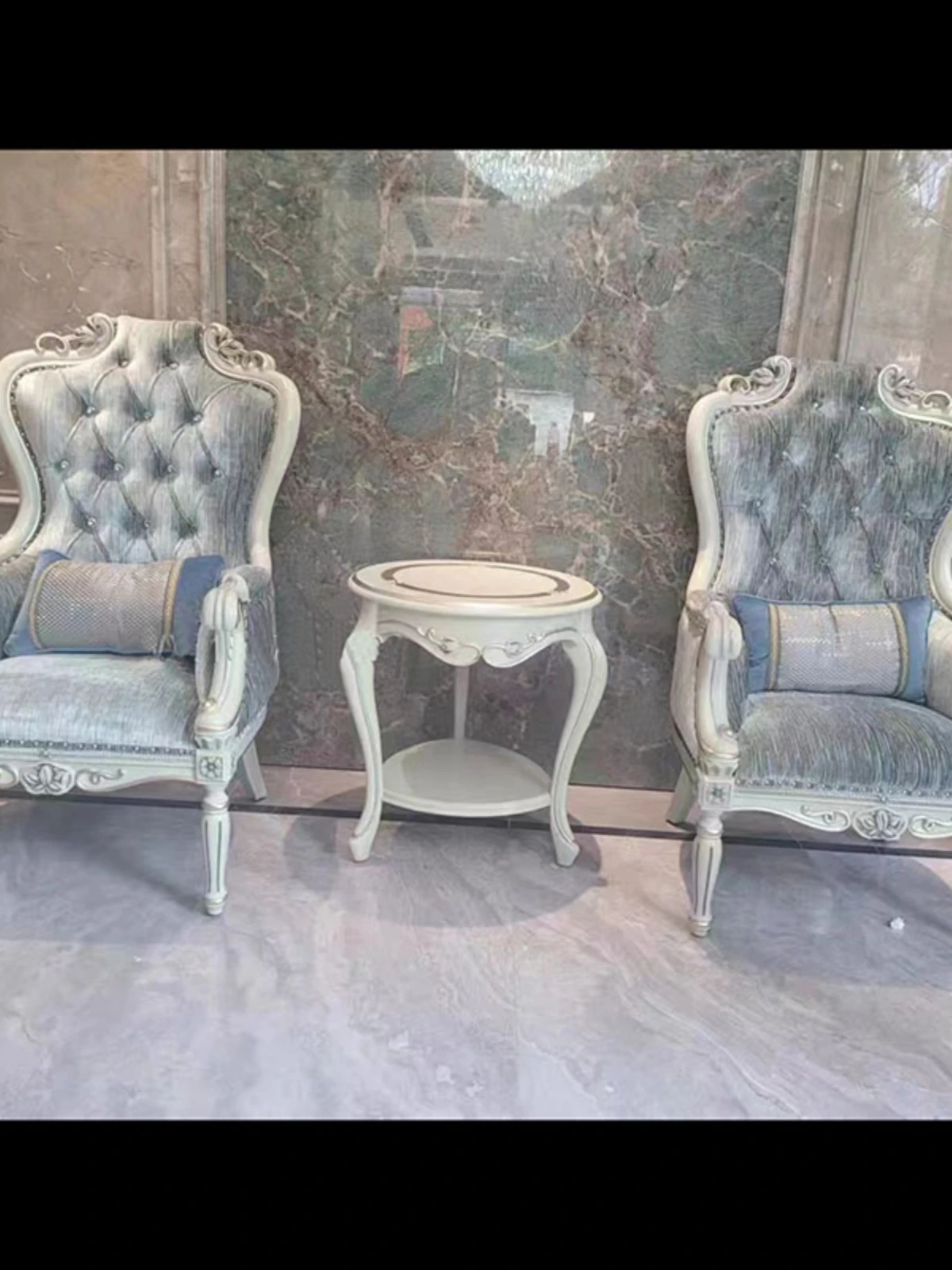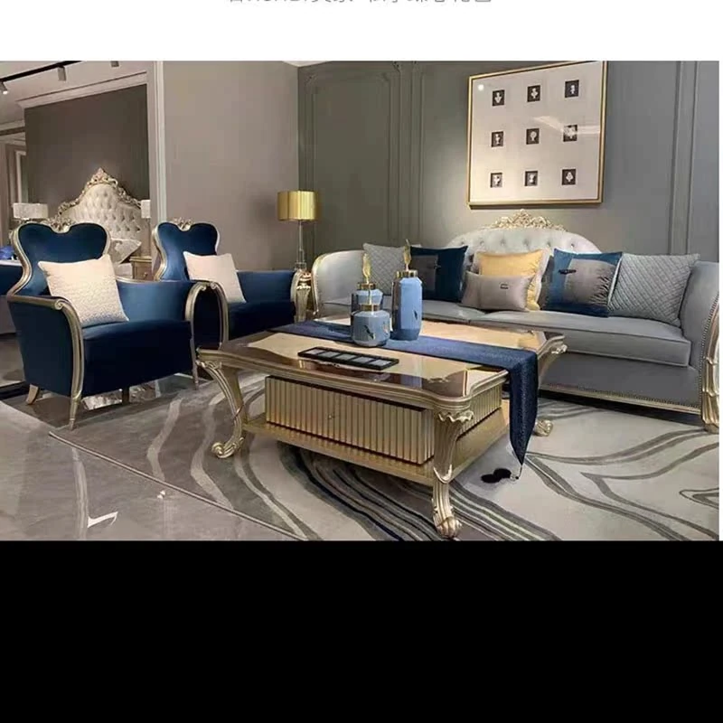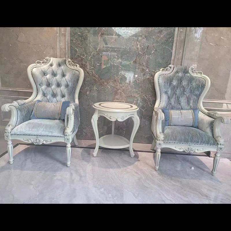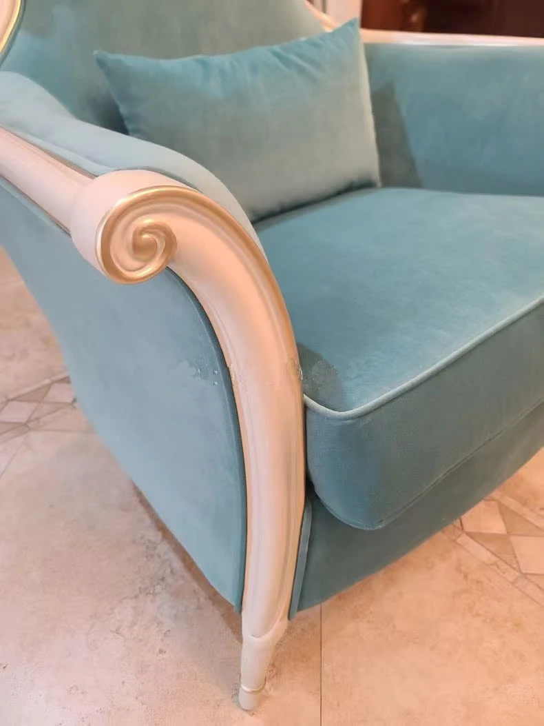 欧風全実木家具 鳳凰ブルー アメリカンスタイルのラグジュアリーリクライニングチェア ソファチェア 布製 リビング・寝室に最適な豪華アームチェア