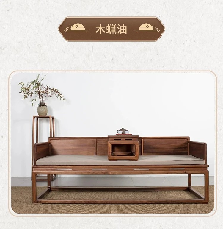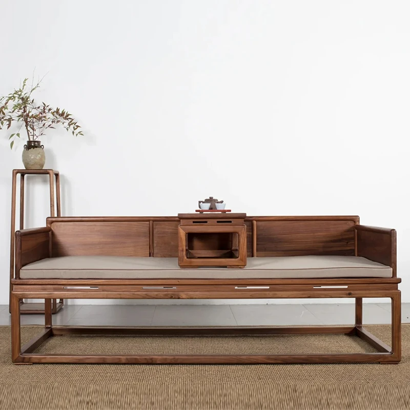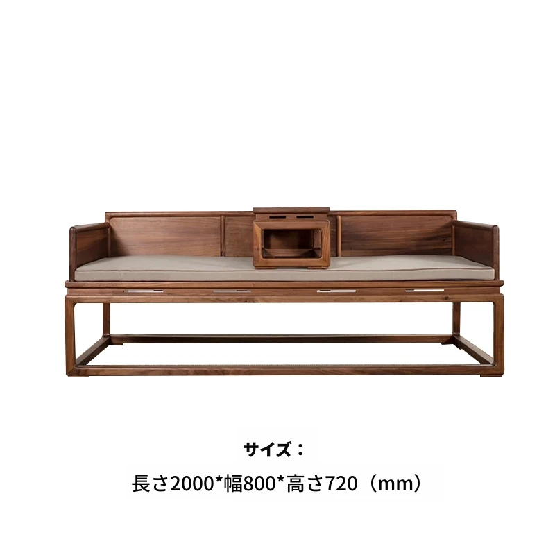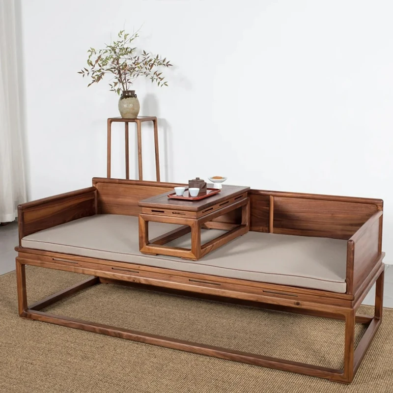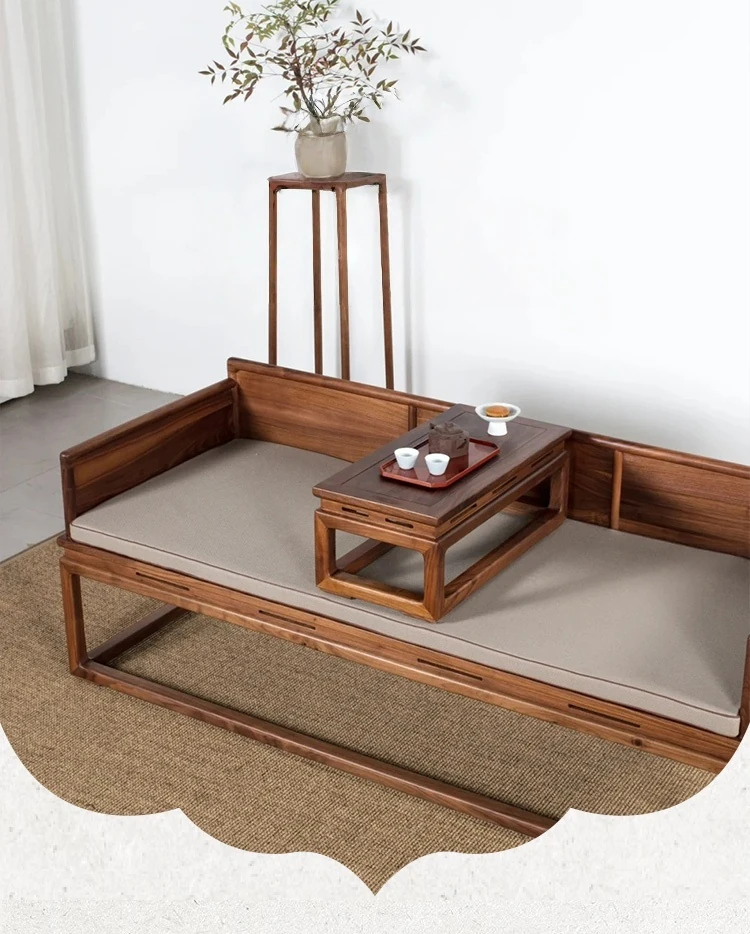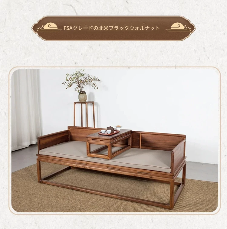新中式デザインの北米産ブラックウォールナット製ロハンベッド - シンプルで小型のリビングに最適な本格的なソファベッド、禅の雰囲気漂う貴妃榻。心地よい空間を演出します!
