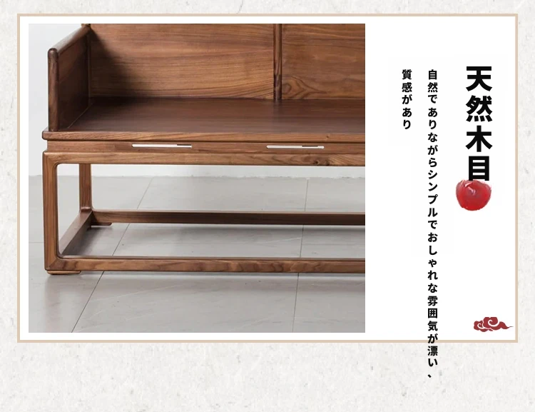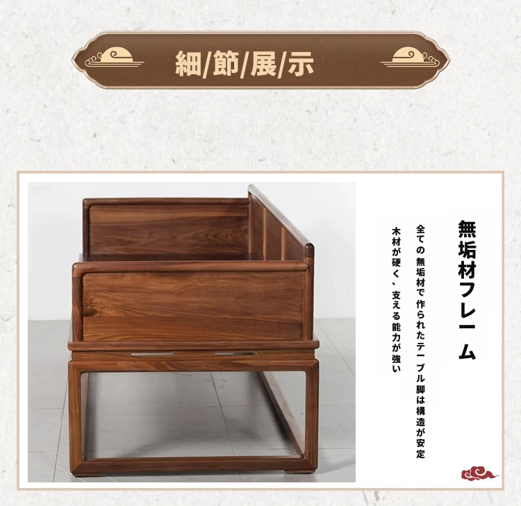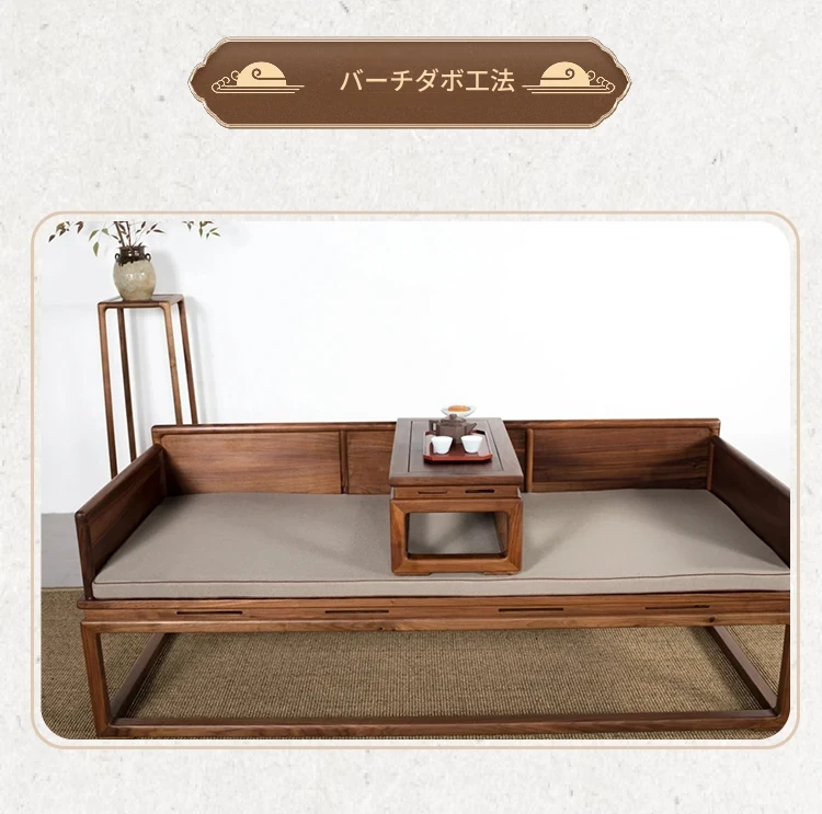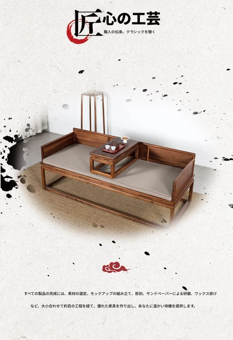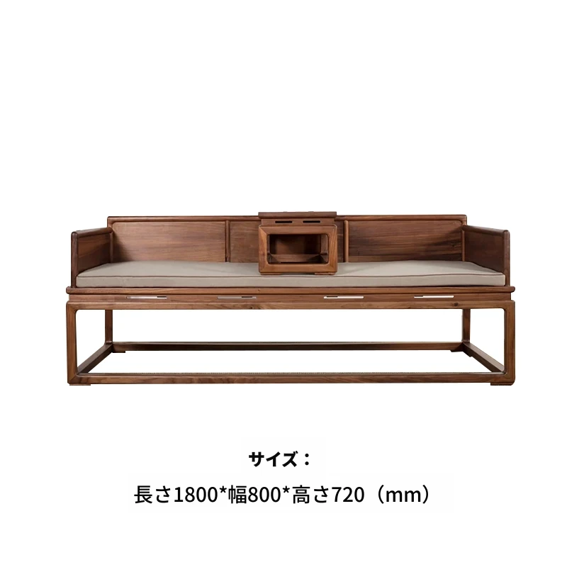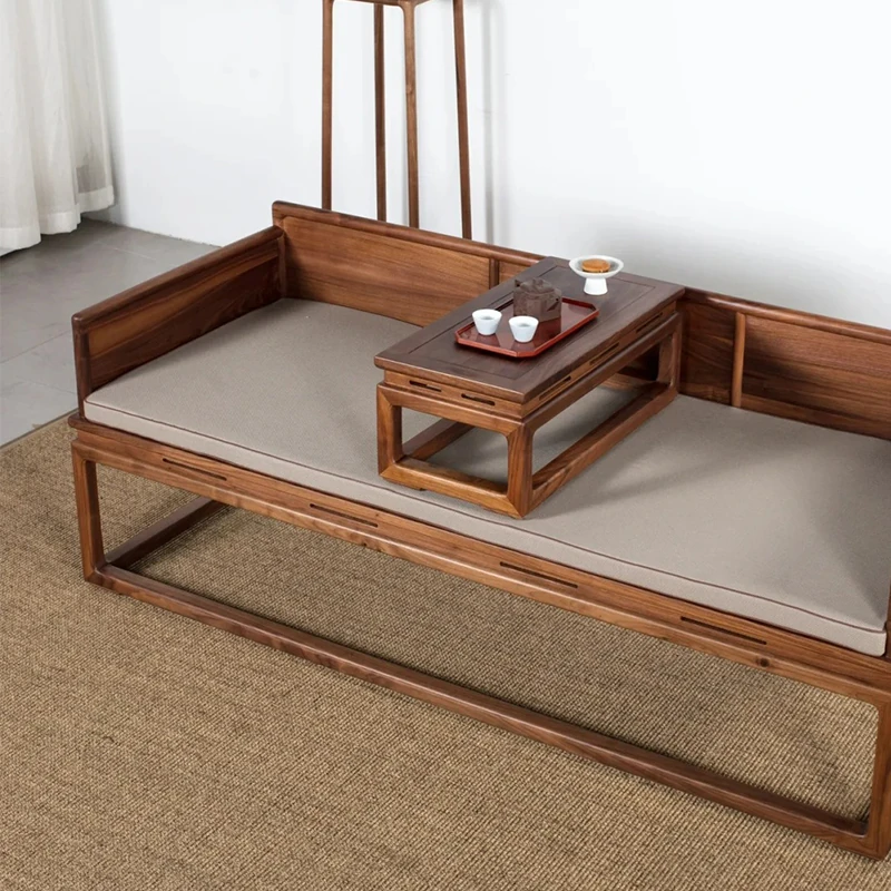 新中式デザインの北米産ブラックウォールナット製ロハンベッド - シンプルで小型のリビングに最適な本格的なソファベッド、禅の雰囲気漂う貴妃榻。心地よい空間を演出します!