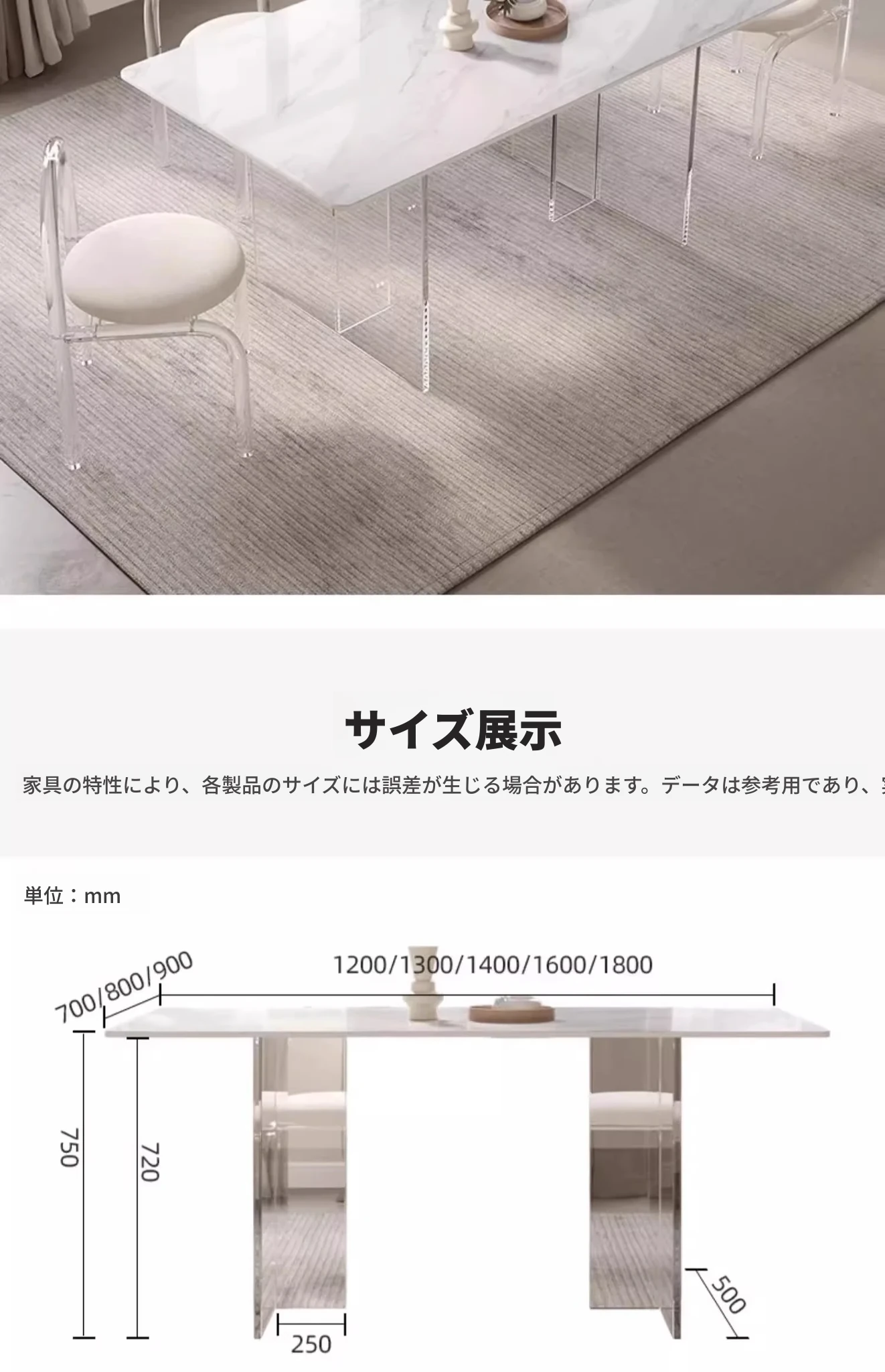 シャネルの大理石120*60*75+アクリル脚の配達
