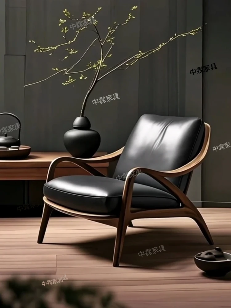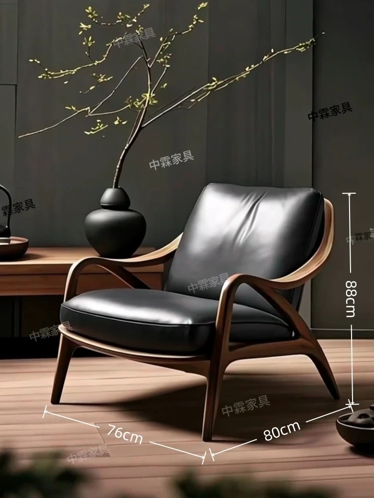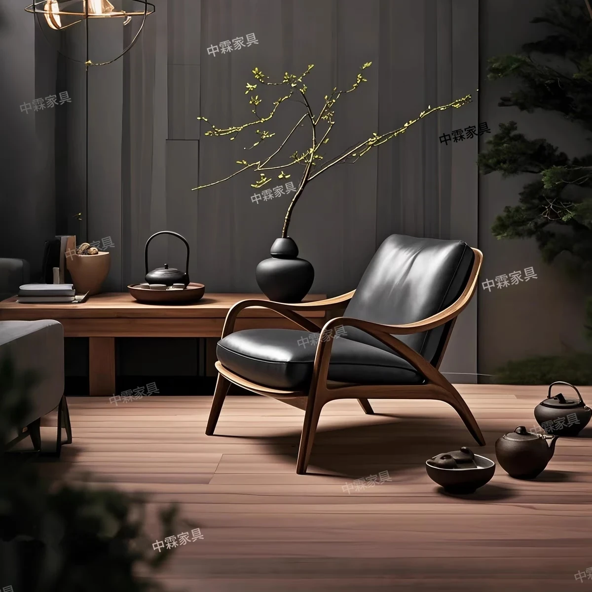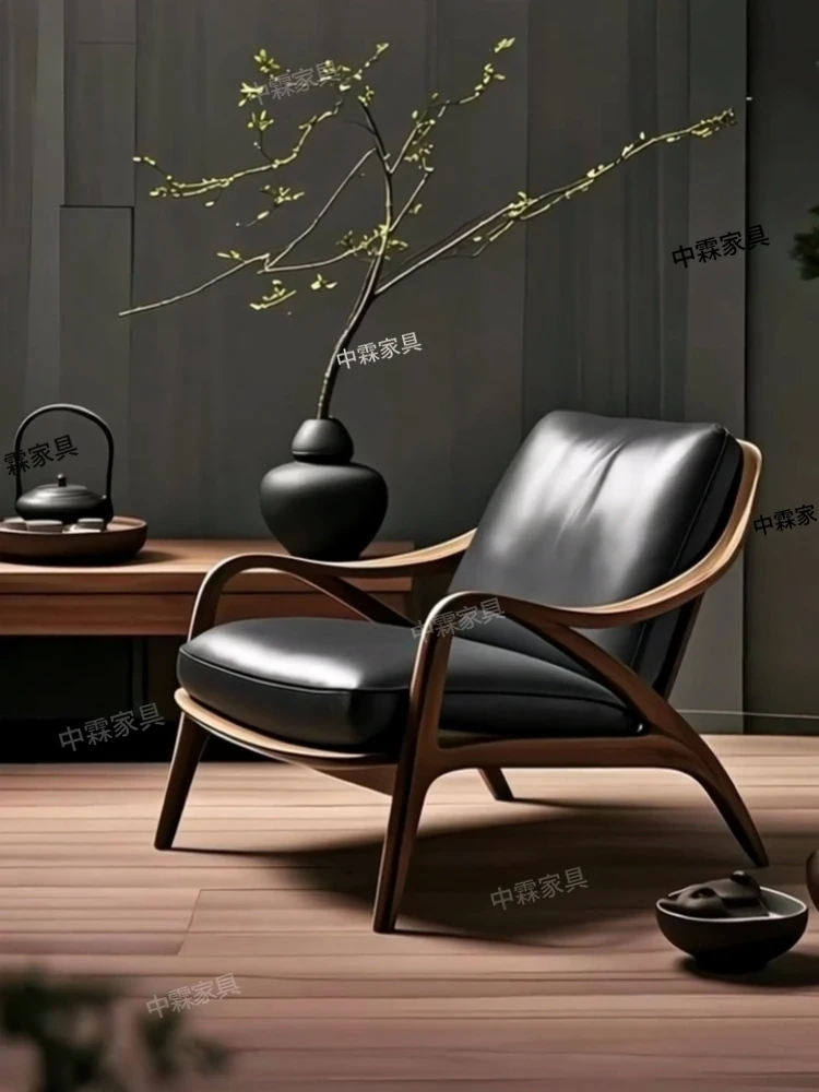 新中式スタイルの北米産ブラックウォールナット無垢材ソファチェア。最高級の牛革を使用したラグジュアリーなリラックスチェア。洗練されたデザインで書斎やリビングにぴったり!