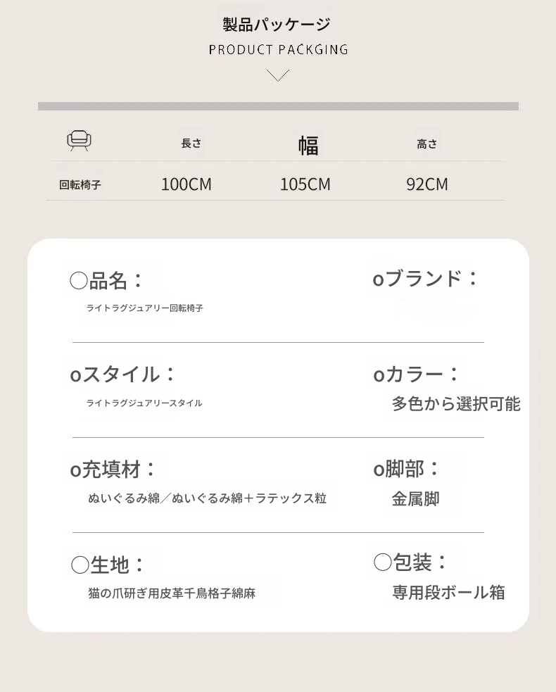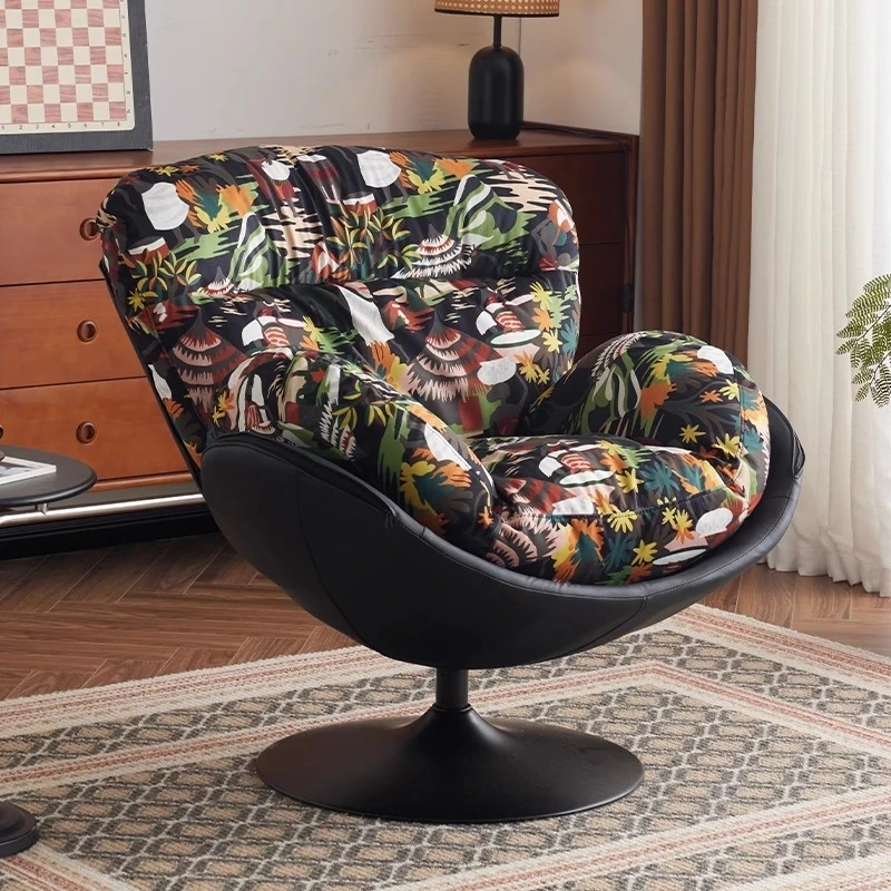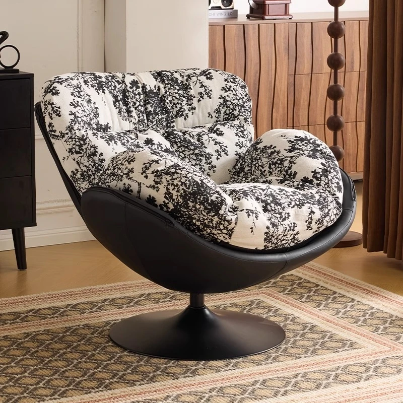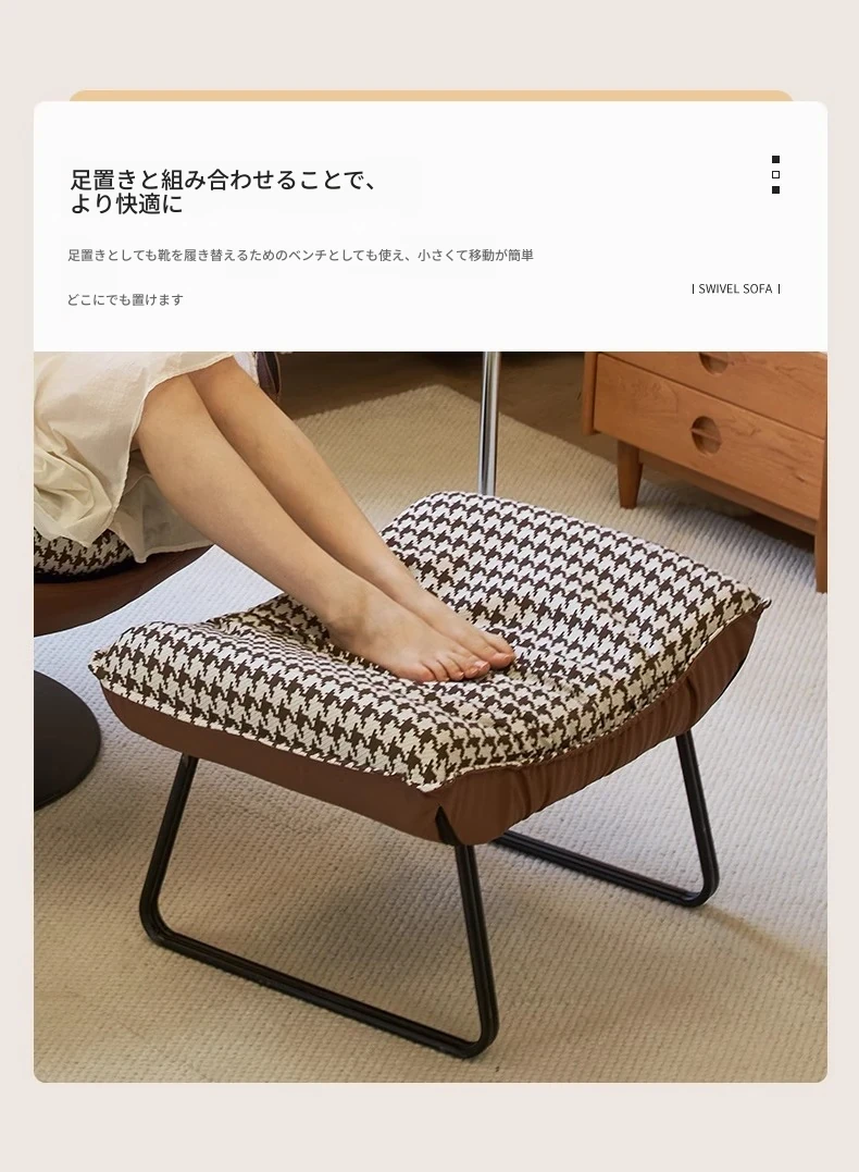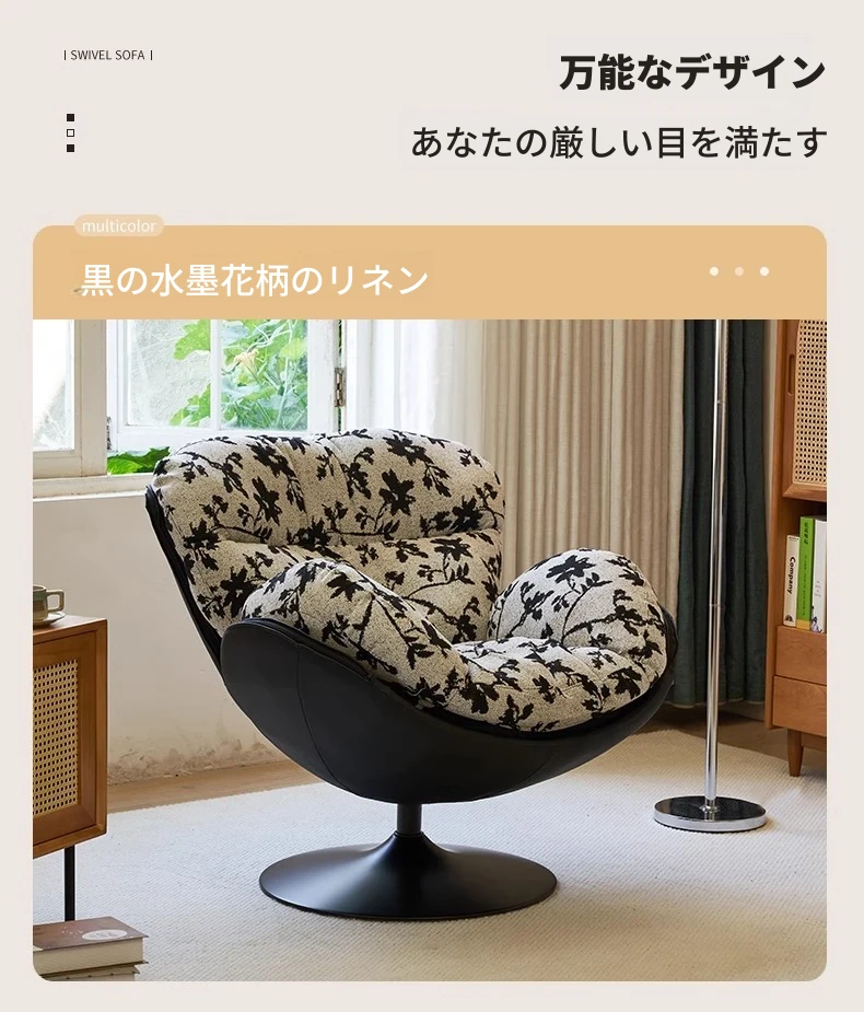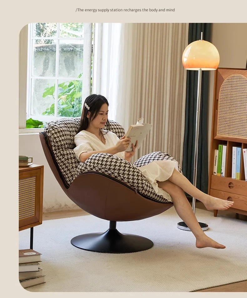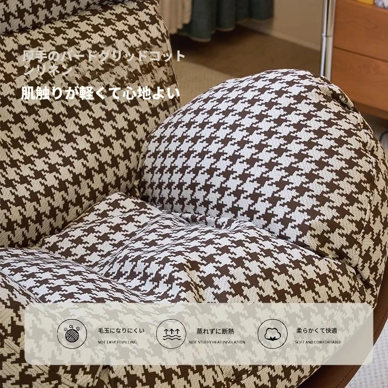 ベイジュモダン一人用エッグシェイプソファ、千鳥格デザインの麻布製、家庭用リラックスソファ、レトロスタイル、360度回転可能で快適なひとときを提供!