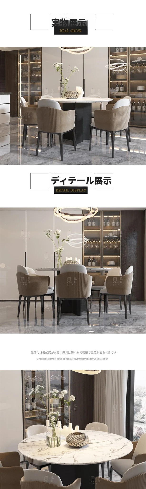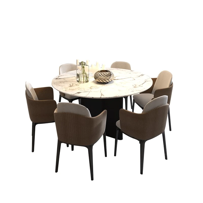 イタリアンスタイルのラグジュアリーなダイニングテーブル&チェアセット|モダンでシンプル、回転式の大理石ラウンドテーブル|小さなお部屋にも最適な食事空間を演出します!
