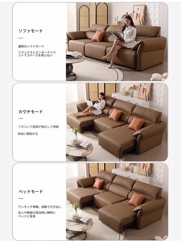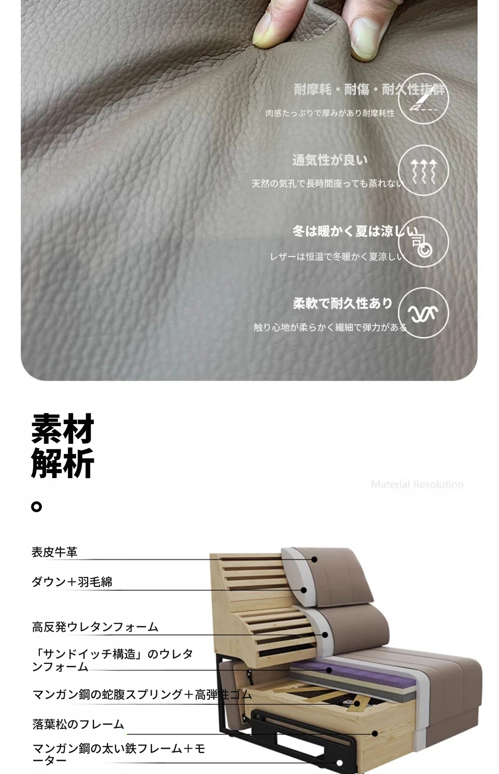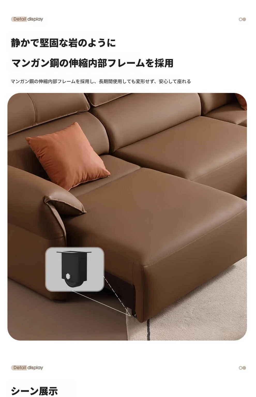 【接触面-軽い打撲模様のトップグレイン牛革】2.65メートル三重電動ポジション 【接触面-軽い打撲模様のトップグレイン牛革】2.65メートル三重電動ポジション