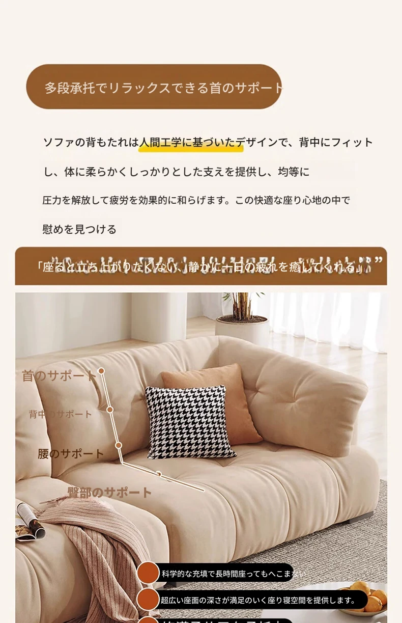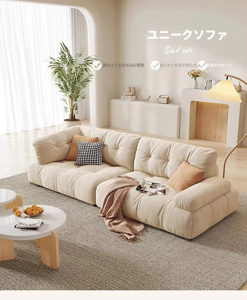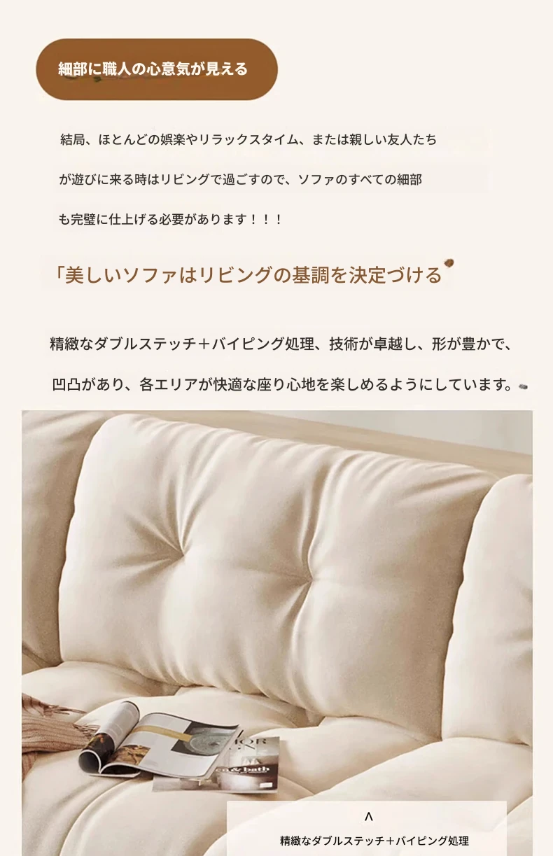 ゼンピ法式クリーム風雲ソファー - モダンでシンプルなリビングにぴったりの猫爪対応ファブリックソファ!柔らかくて快適な肌触りで、家族やペットと一緒にくつろげる理想のアイテムです。