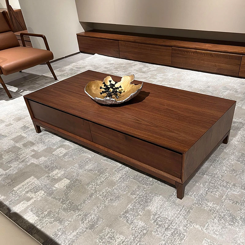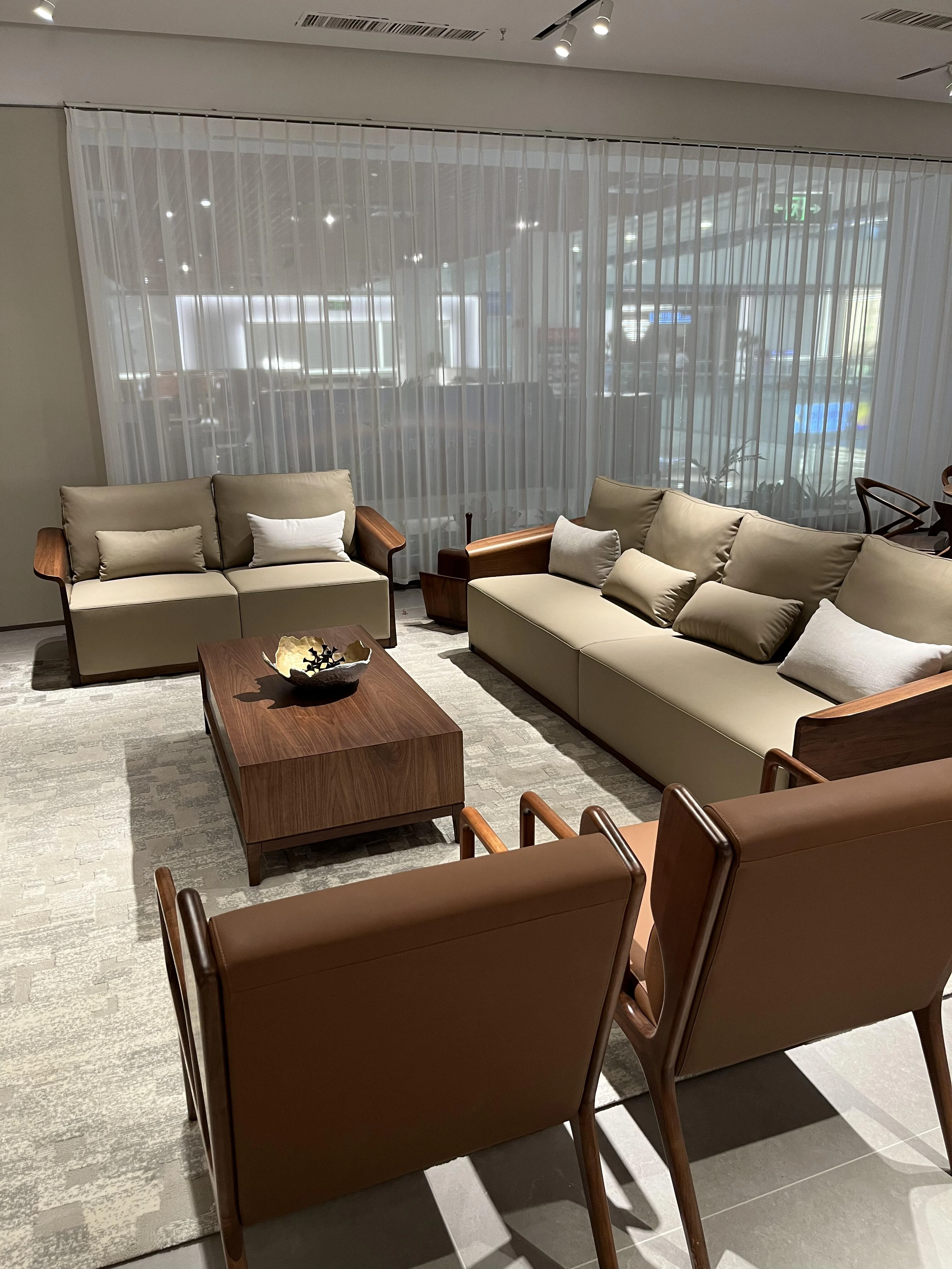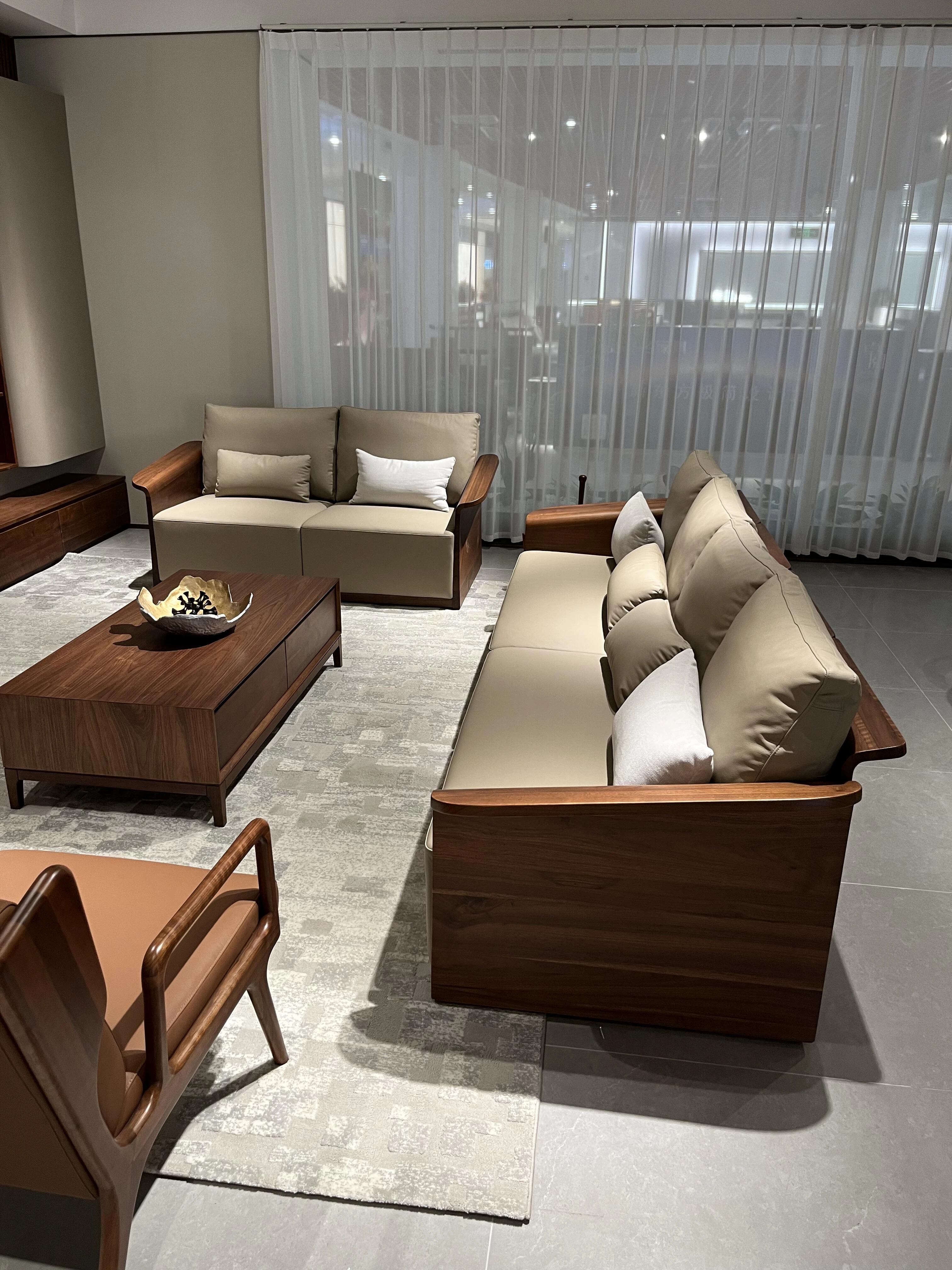 新中式デザインのレザー&ウッドソファセット - モダンでシンプル、ラグジュアリーなイタリアンミニマリズムが魅力の高級リビングルーム用。洗練された空間を演出します!