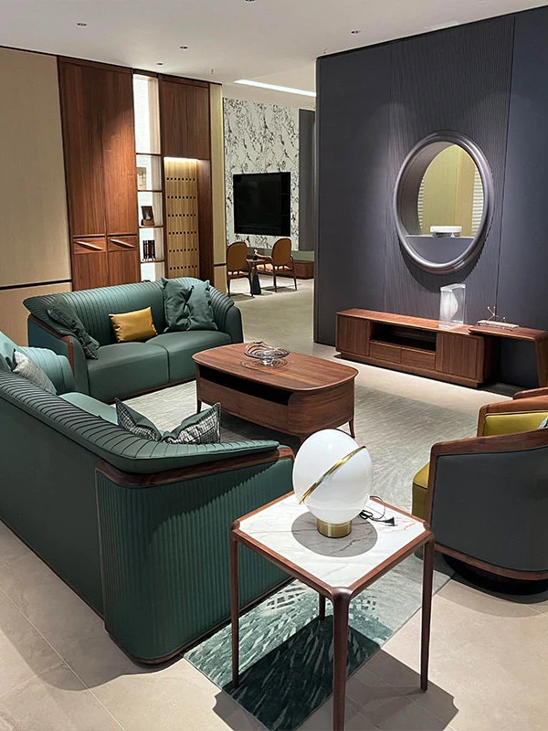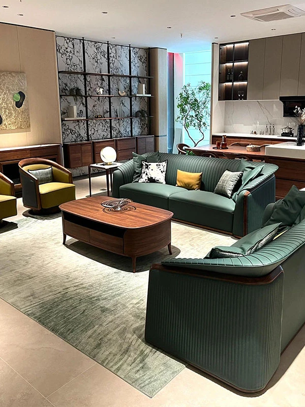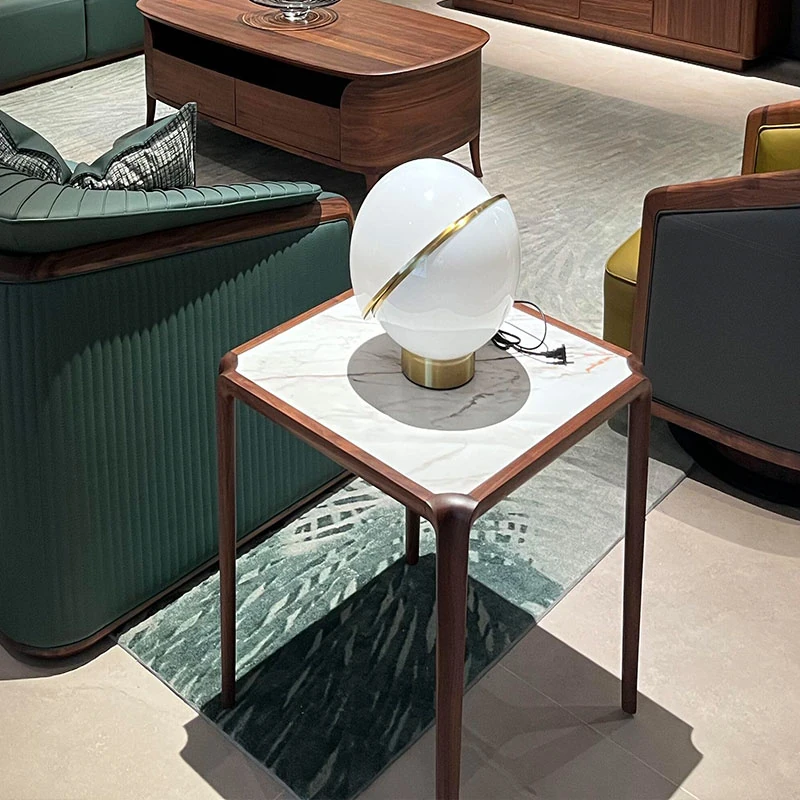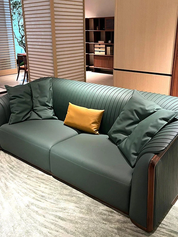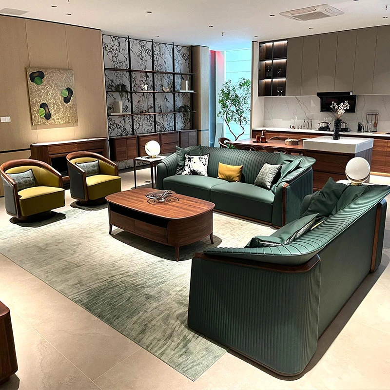 新中式デザインの北米産ブラックウォルナット無垢材ソファセット - モダンでシンプル、ラグジュアリーなイタリアンミニマルスタイル、リビングやオフィスに最適!