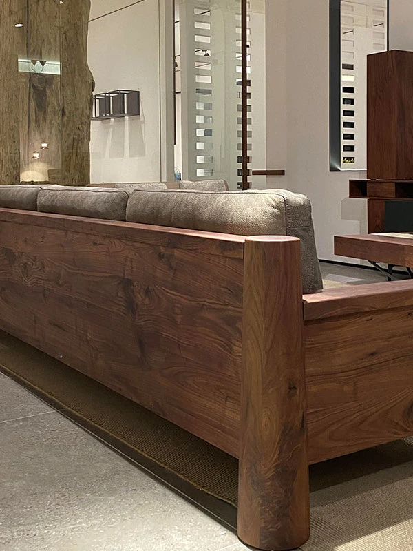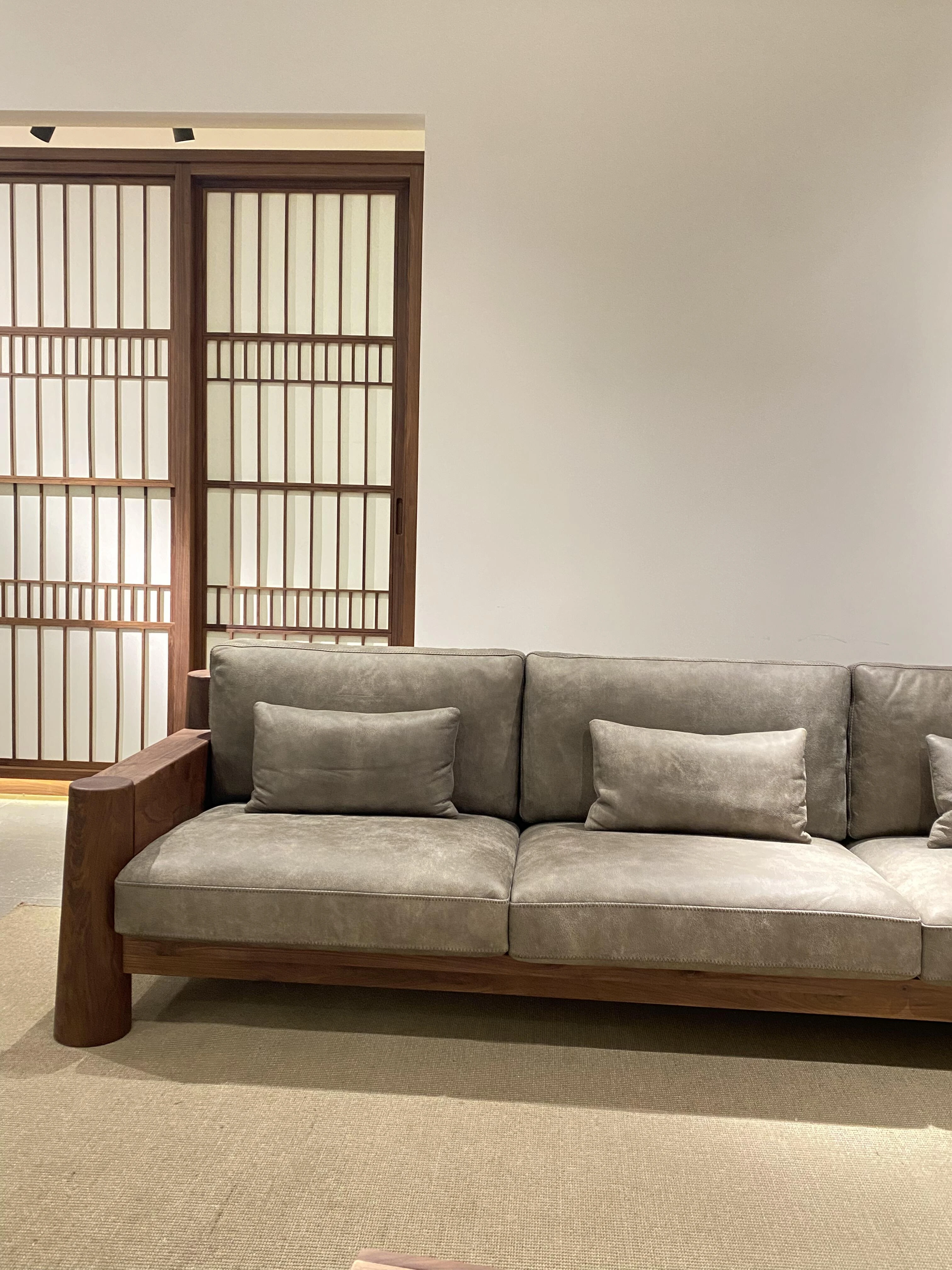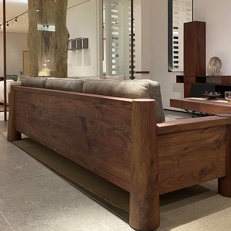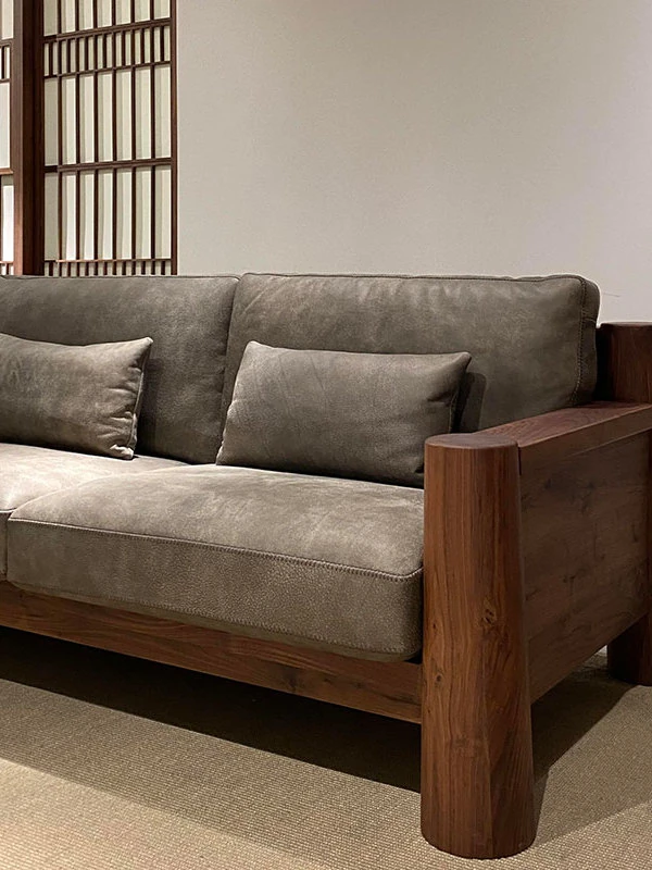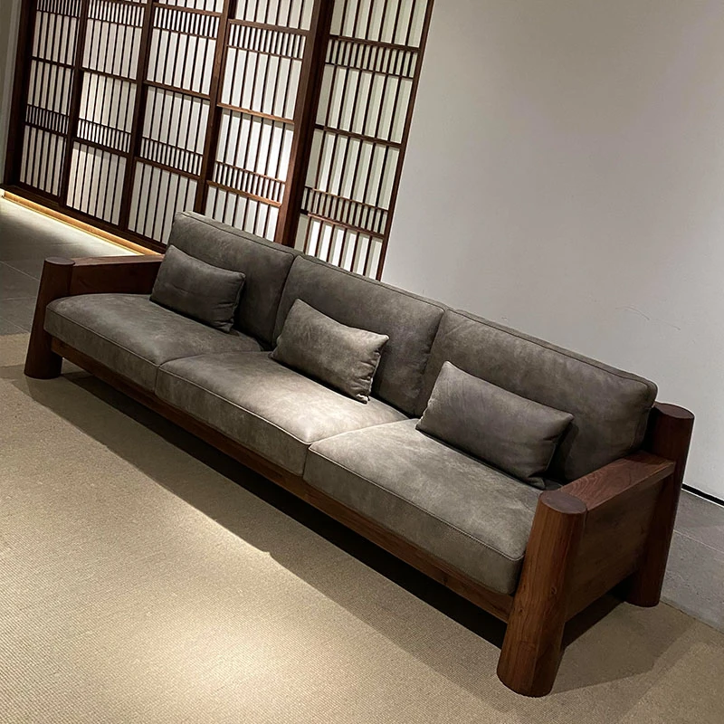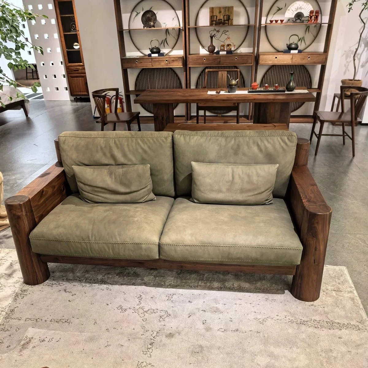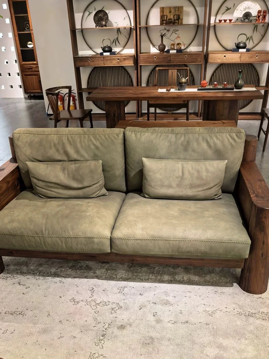 新中式デザインの北米産ブラックウォールナット無垢材ソファ - 現代的でシンプルなラグジュアリー、リビングや別荘、オフィスに最適なストレートタイプソファ!あなたの空間にエレガンスをプラス!