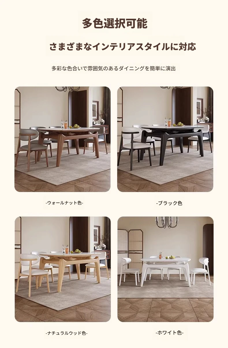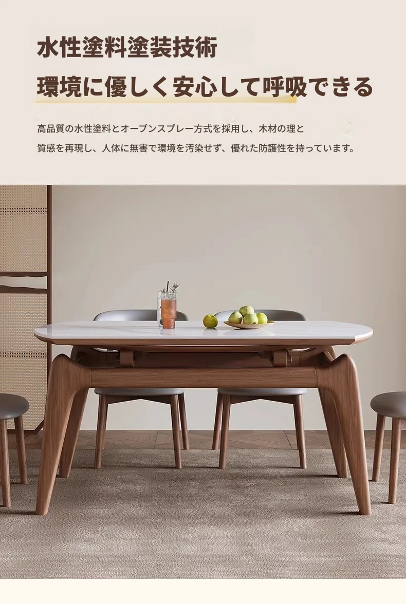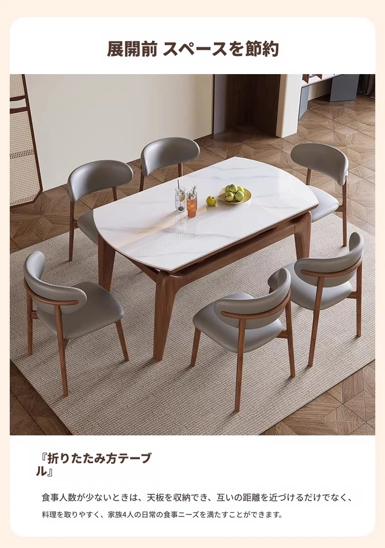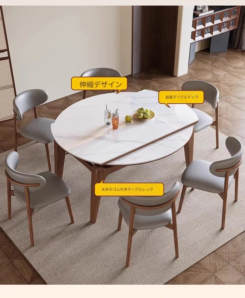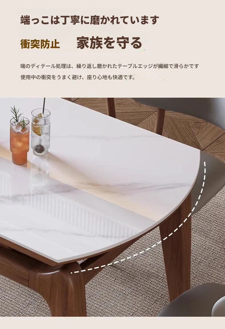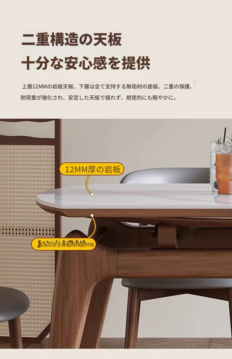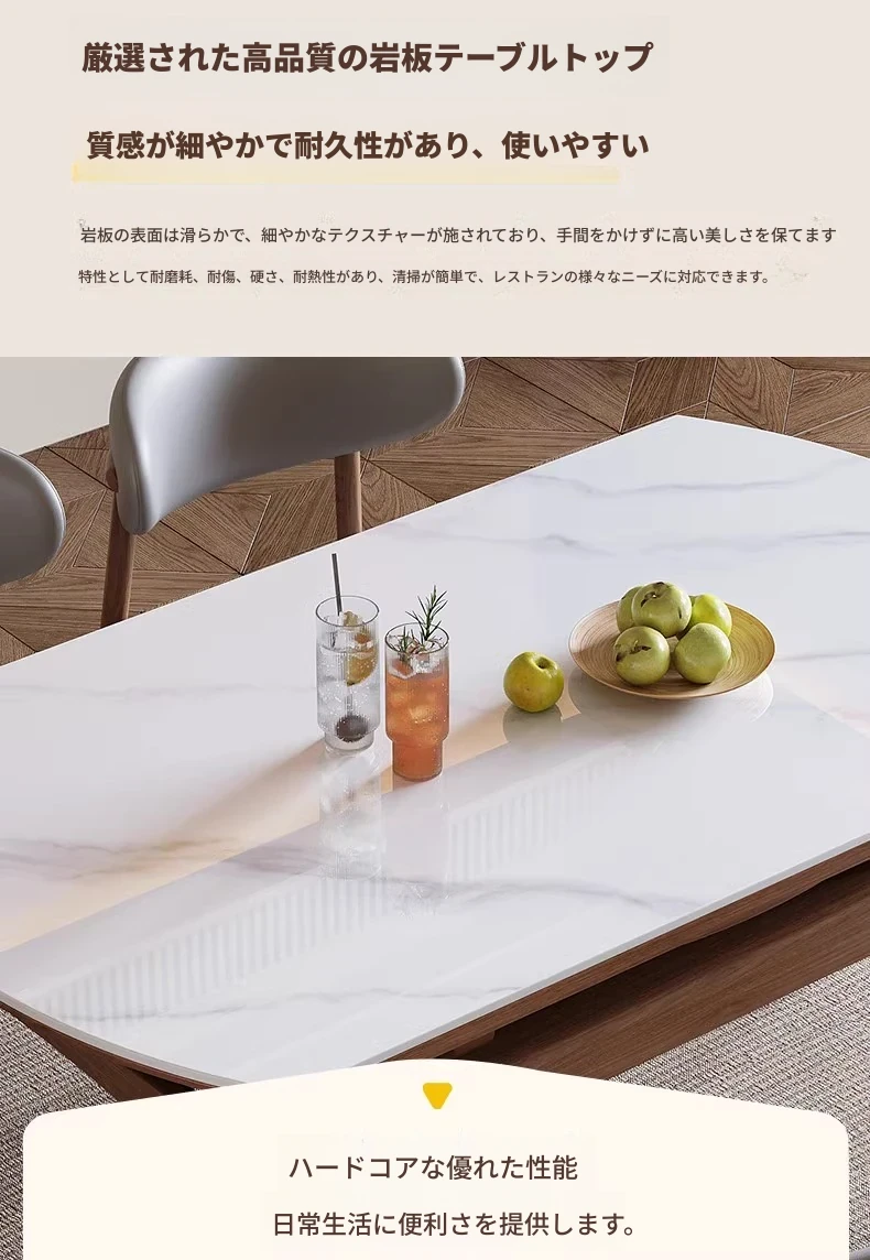 12mm岩石板-1.5m無垢材ダイニングテーブル6脚