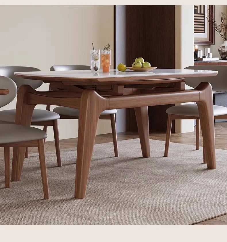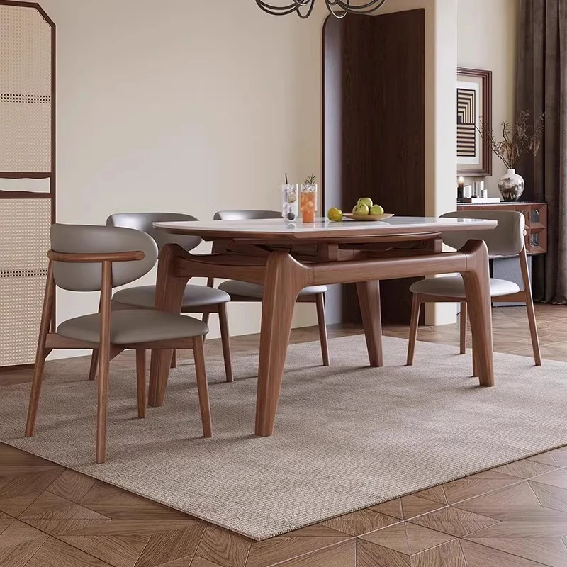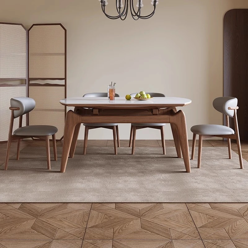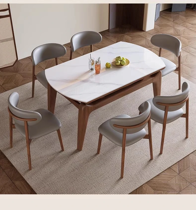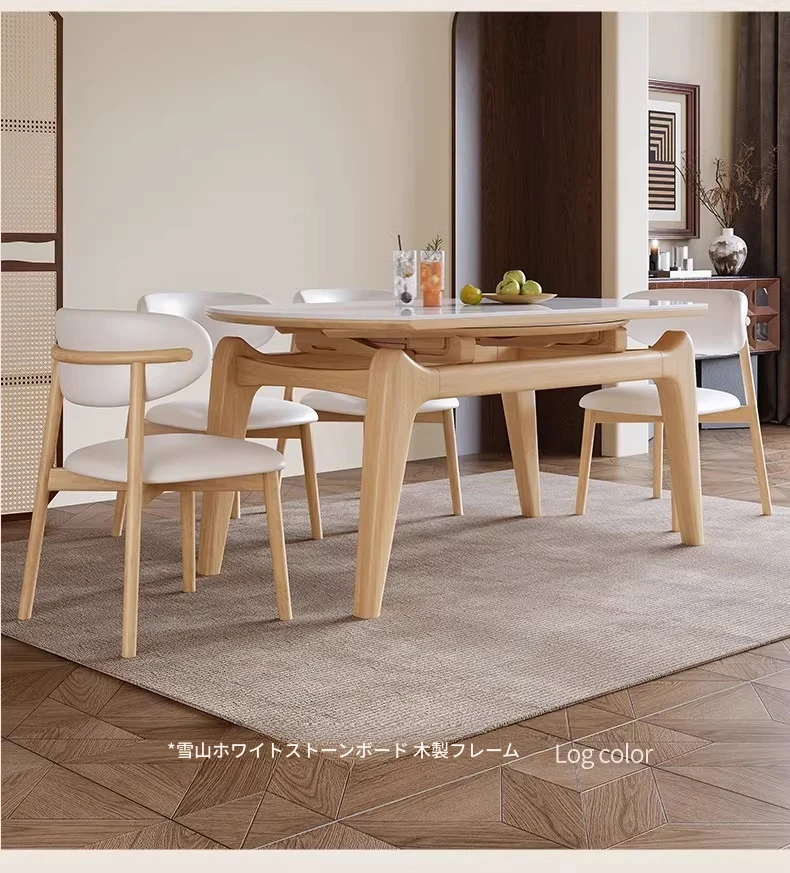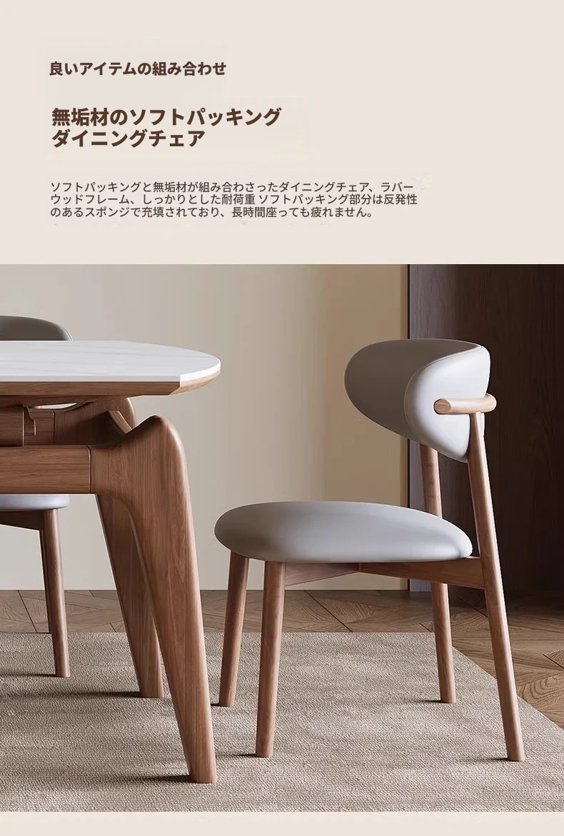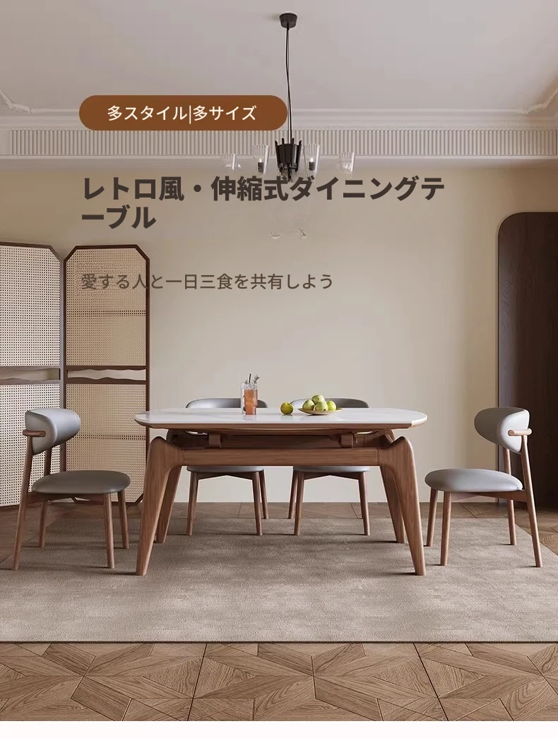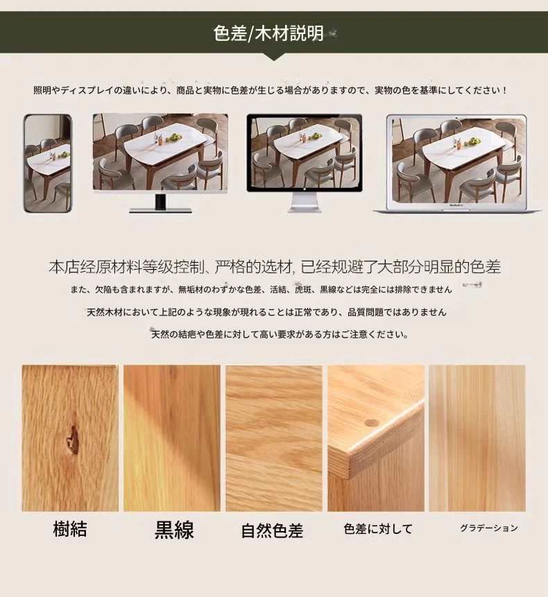 12mm岩石板-1.5m無垢材ダイニングテーブル6脚