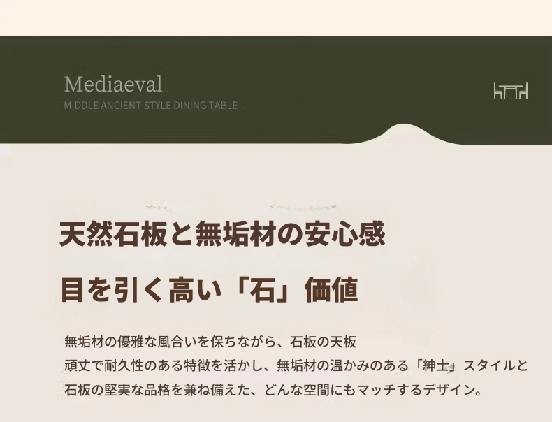 12mm岩石板-1.2m無垢材ダイニングテーブル