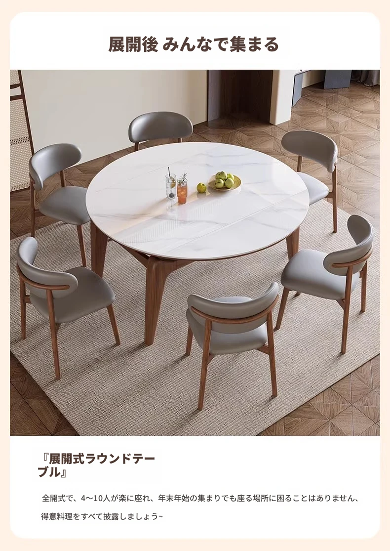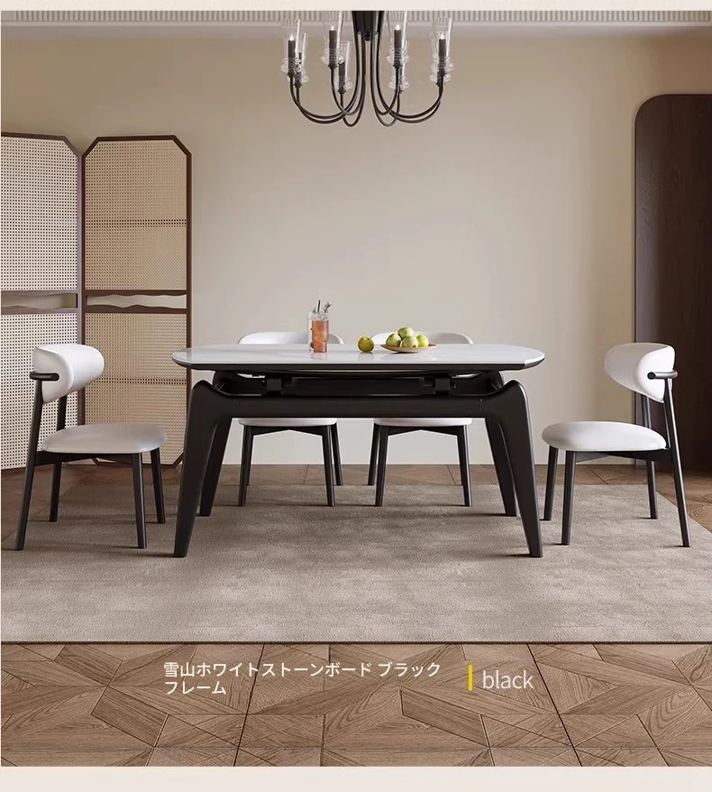 12mm岩石板に電磁調理器付き-1.35mダイニングテーブル6脚