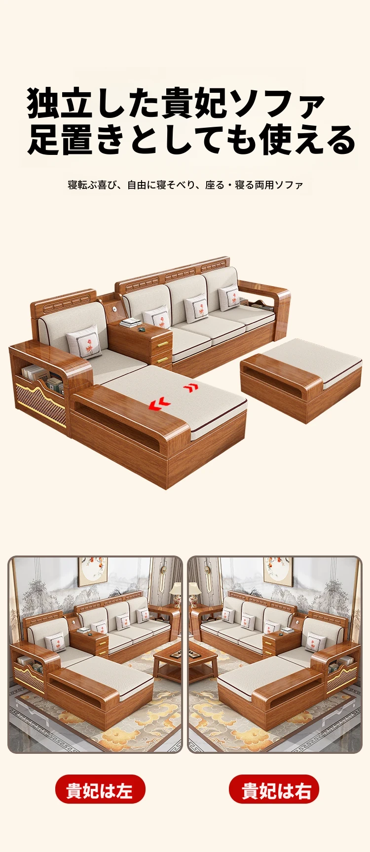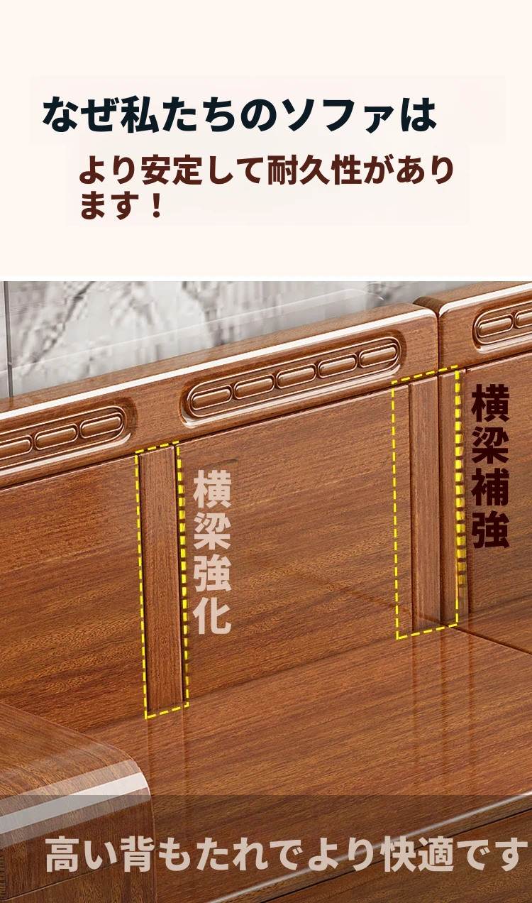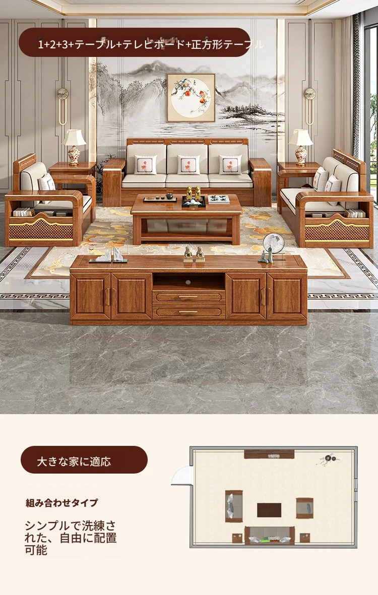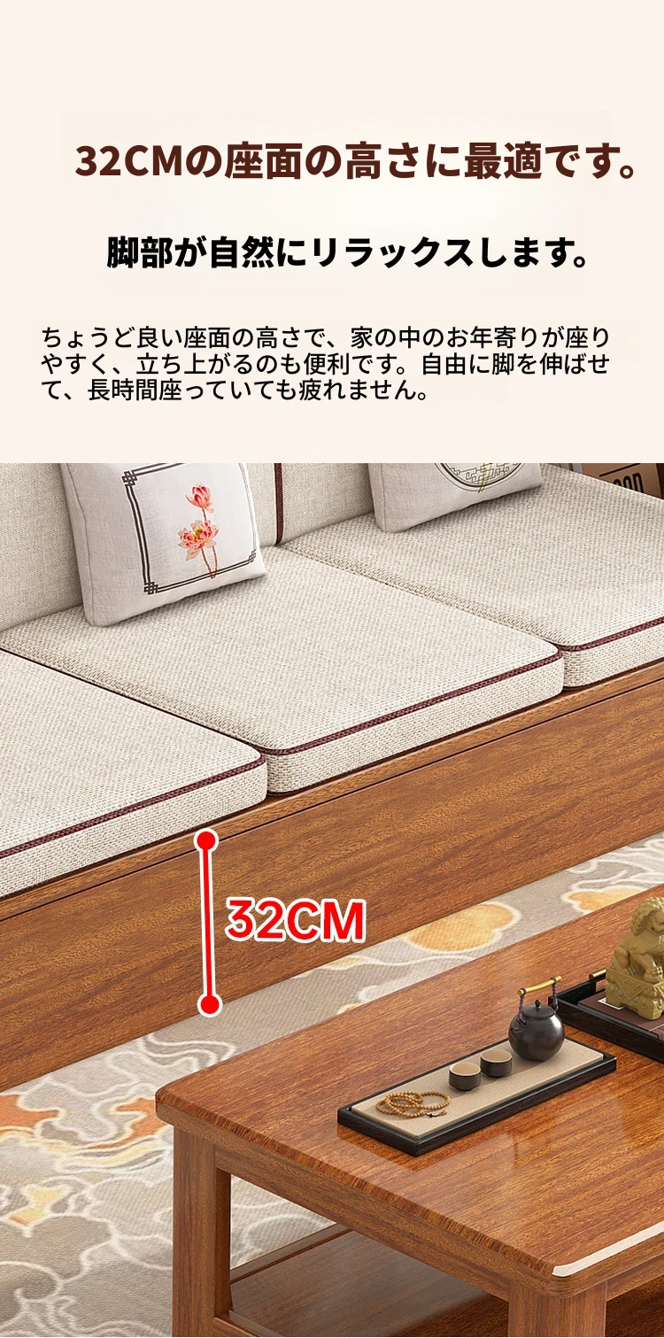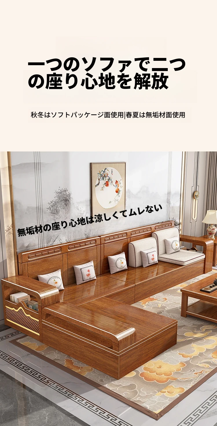 モダンシンプルな無垢材ソファ|ナチュラルなウォールナット色のコンパクト3人掛け・4人掛け組み合わせソファ|小さなリビングにもぴったり!快適な座り心地でおしゃれな空間を演出します。