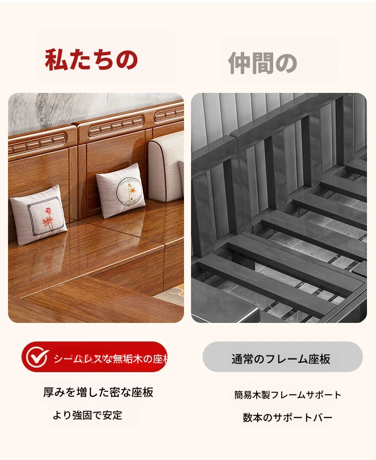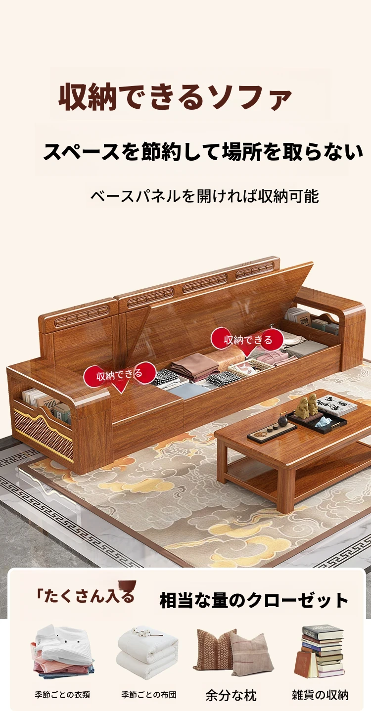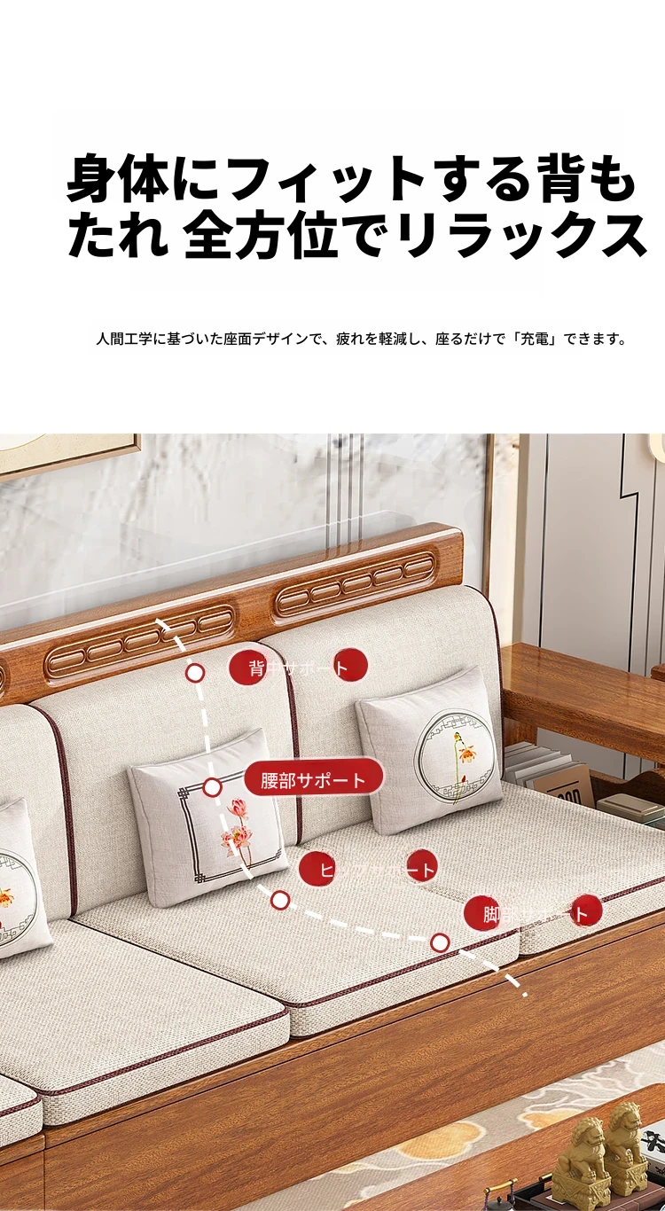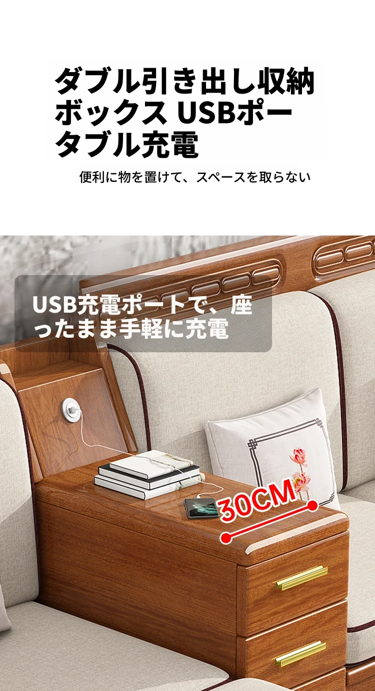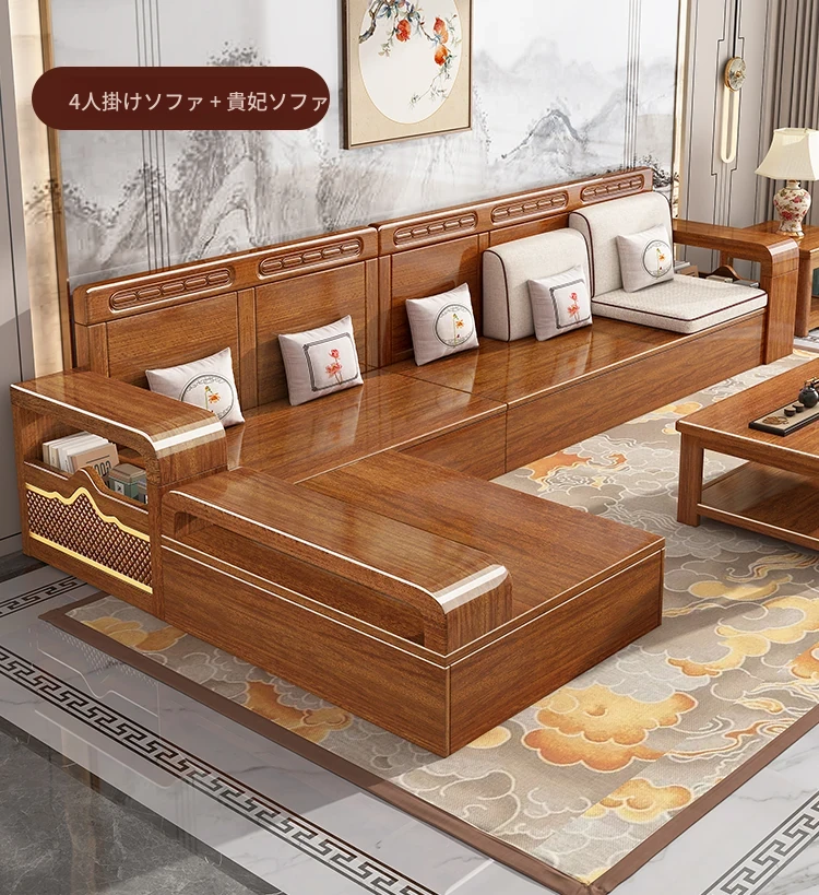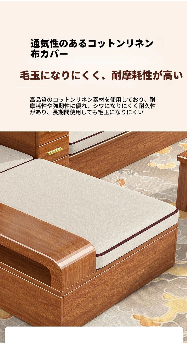 モダンシンプルな無垢材ソファ|ナチュラルなウォールナット色のコンパクト3人掛け・4人掛け組み合わせソファ|小さなリビングにもぴったり!快適な座り心地でおしゃれな空間を演出します。