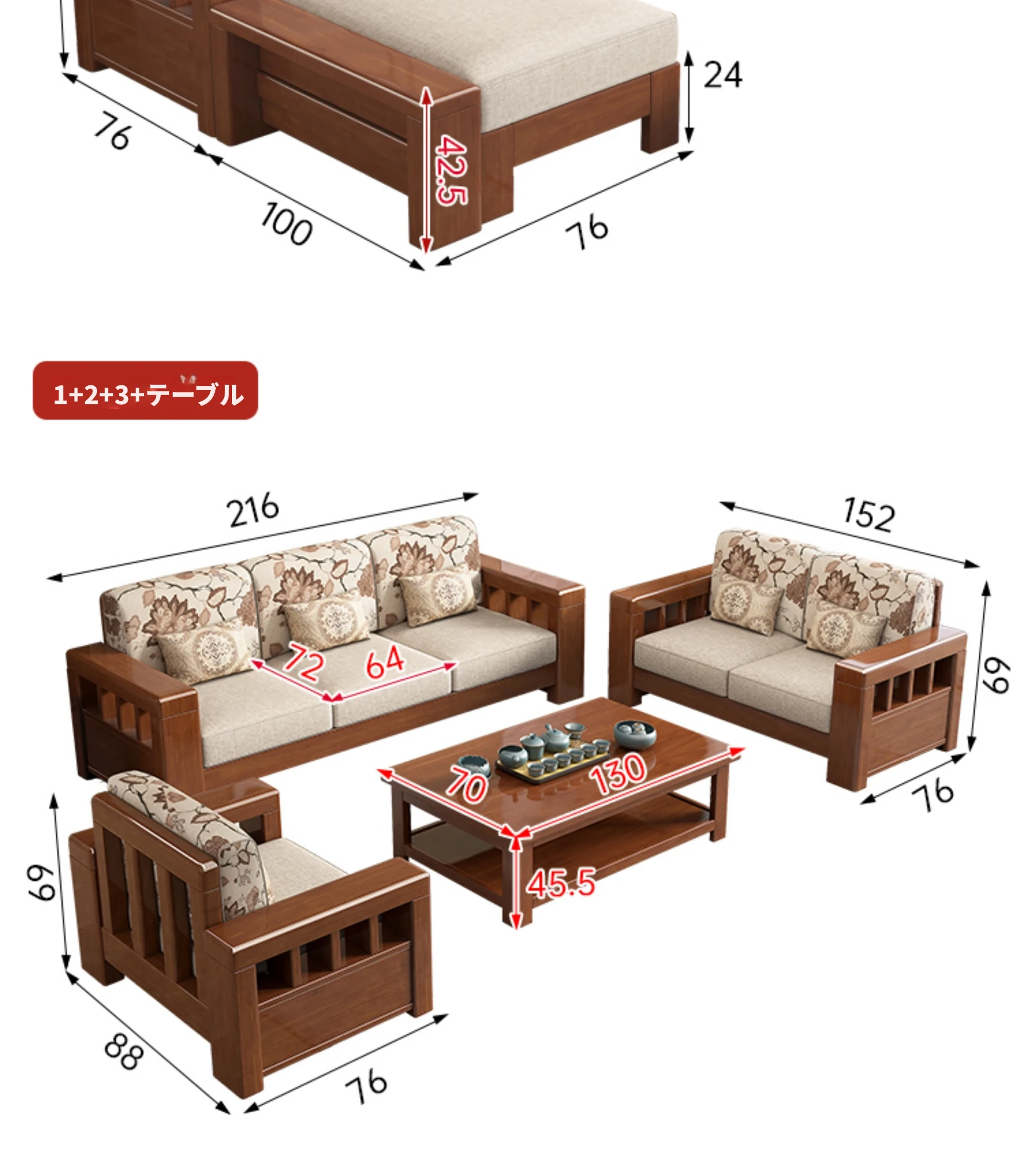 【テクノロジー布】五人用+貴妃ソファ+テーブル