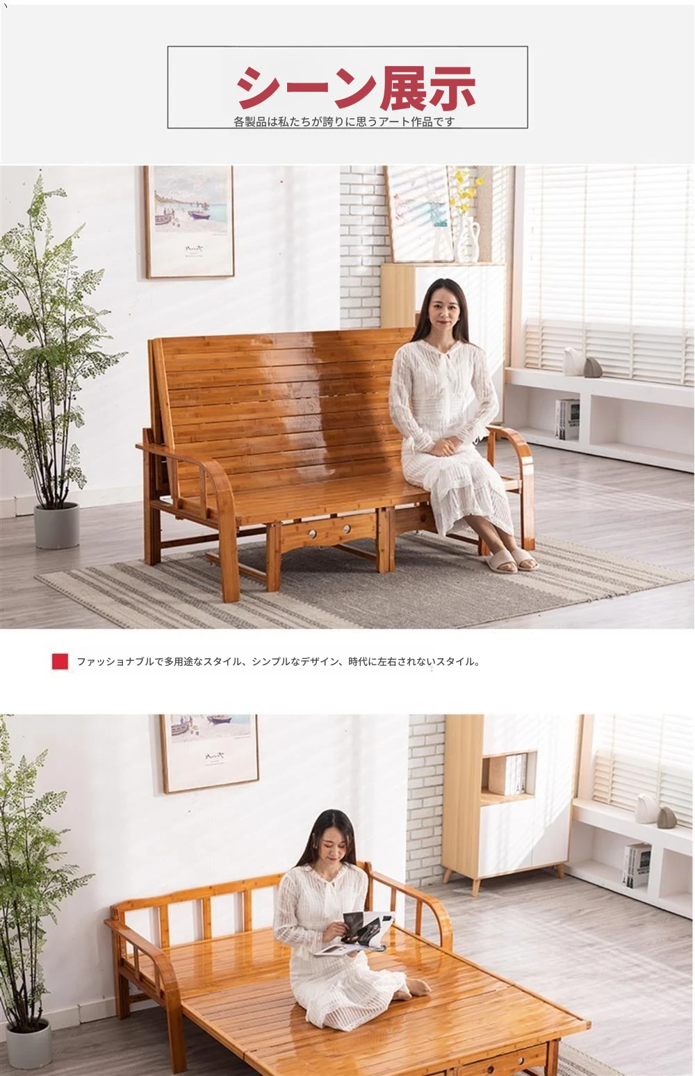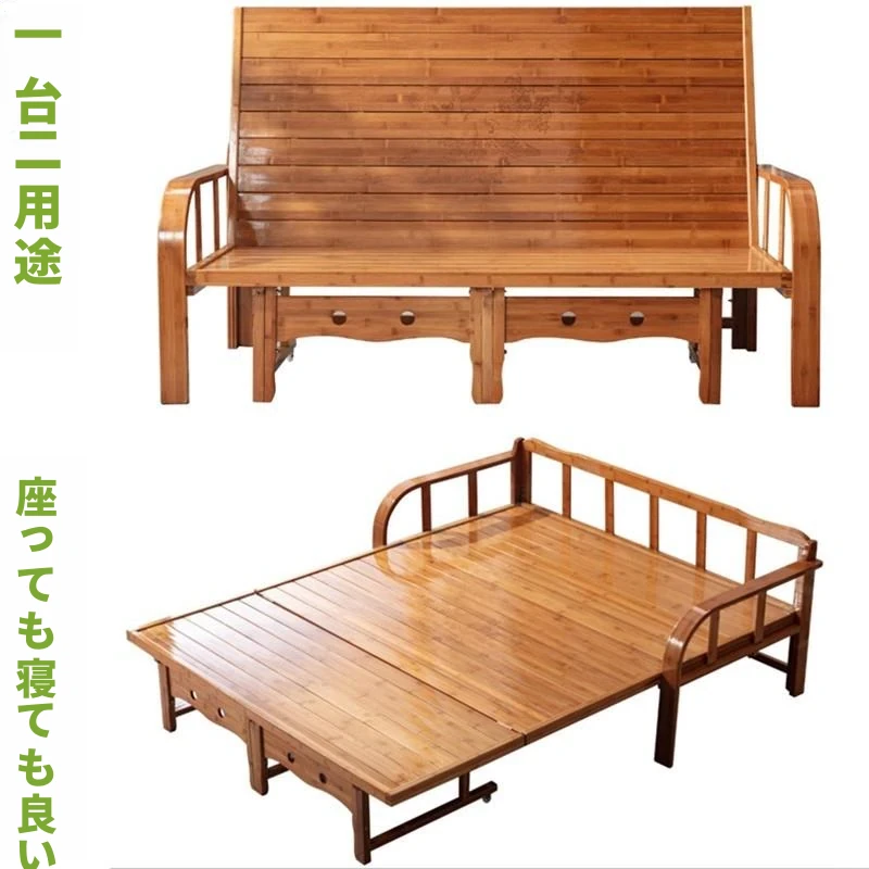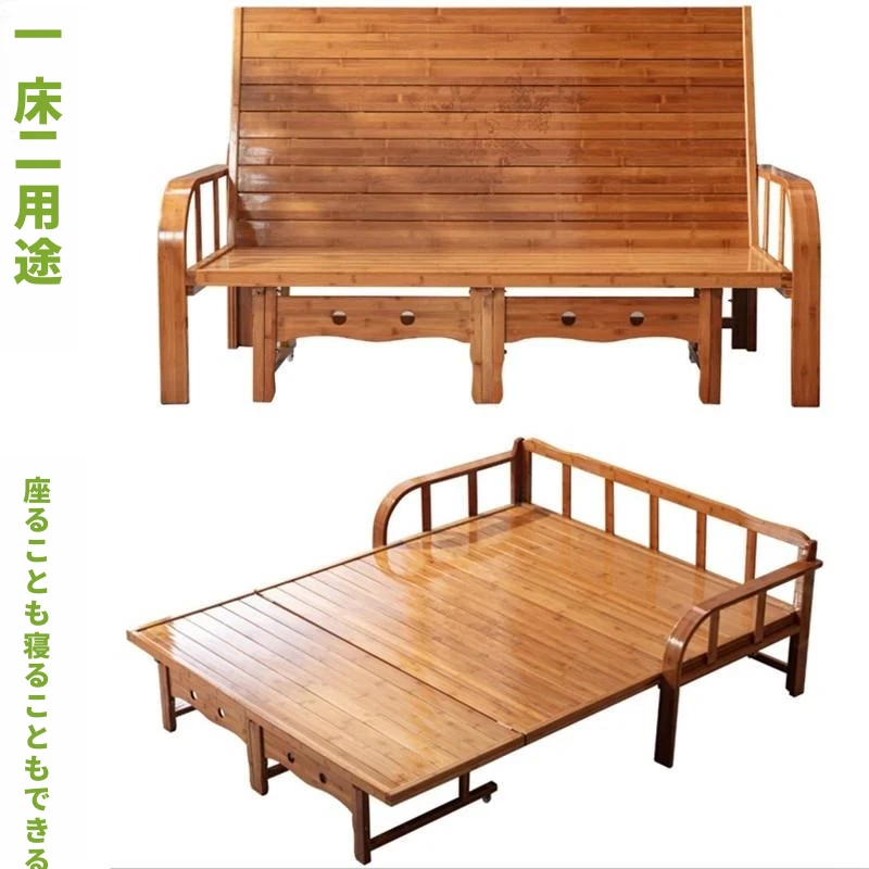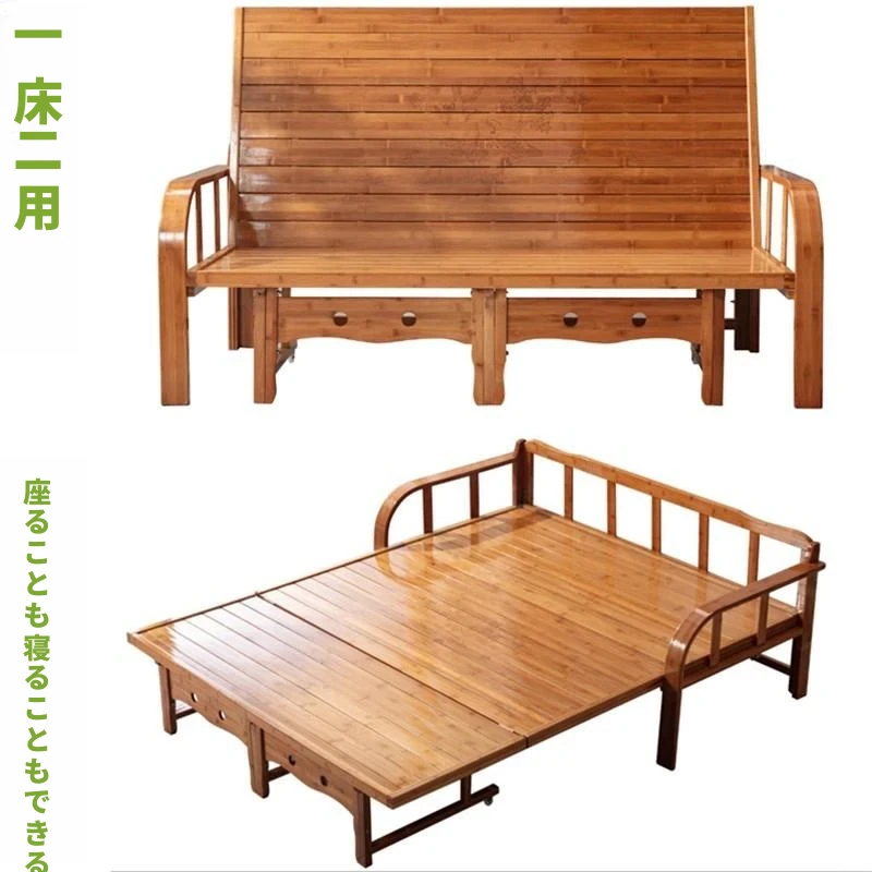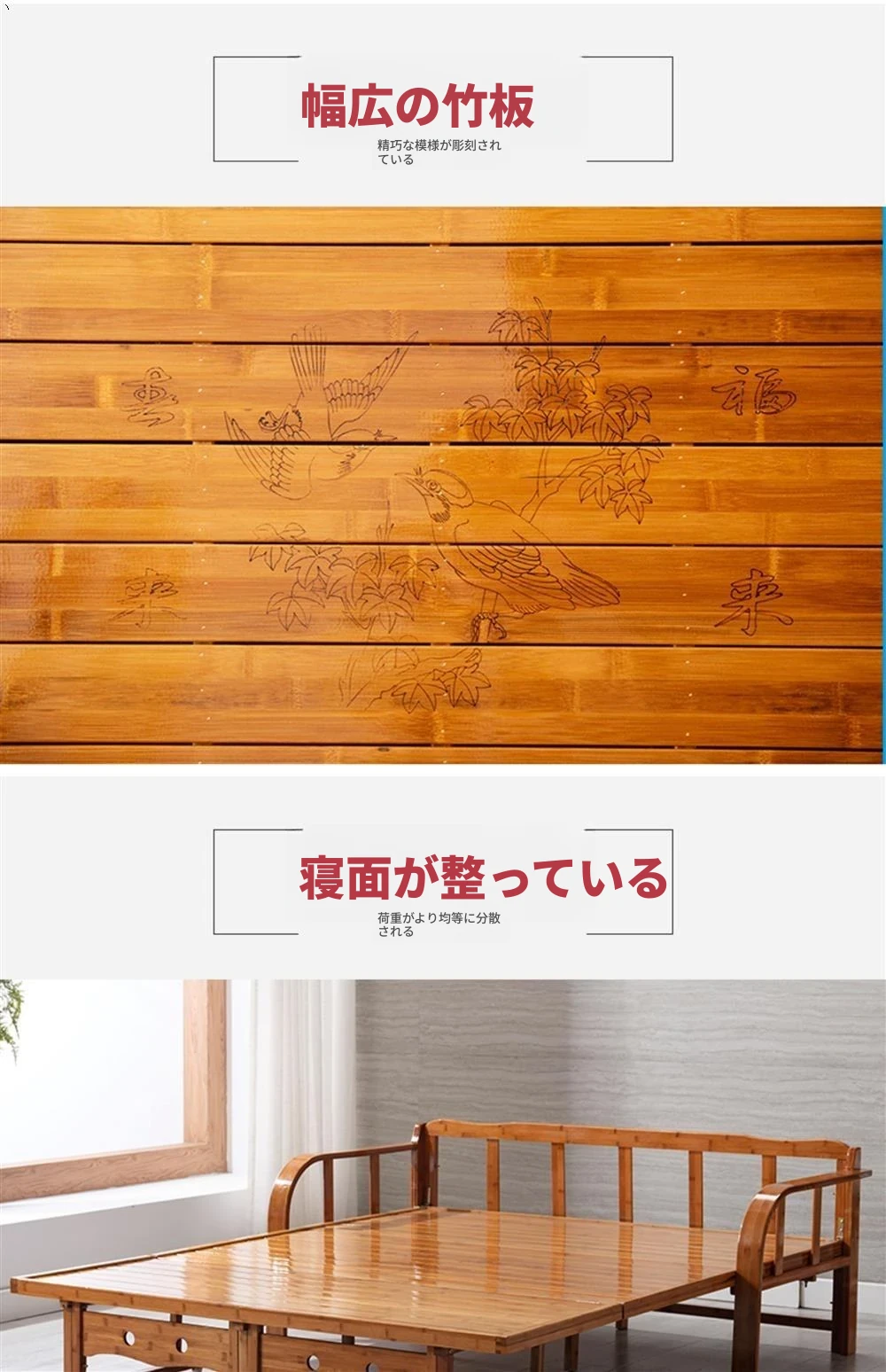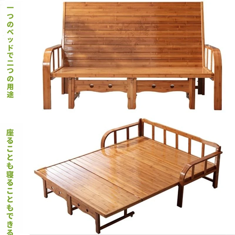 多機能折りたたみソファベッド - シングル・ダブル対応、竹製クールベッド!大人用に最適な硬質板仕様の実木製ベッドチェアで、家庭での快適なリラックスタイムを実現します!