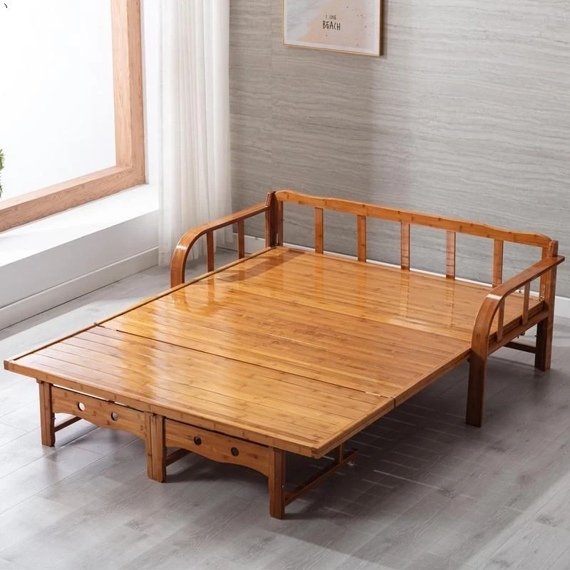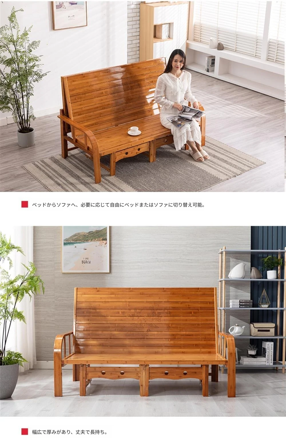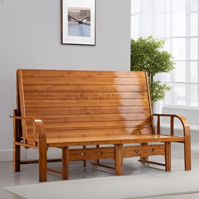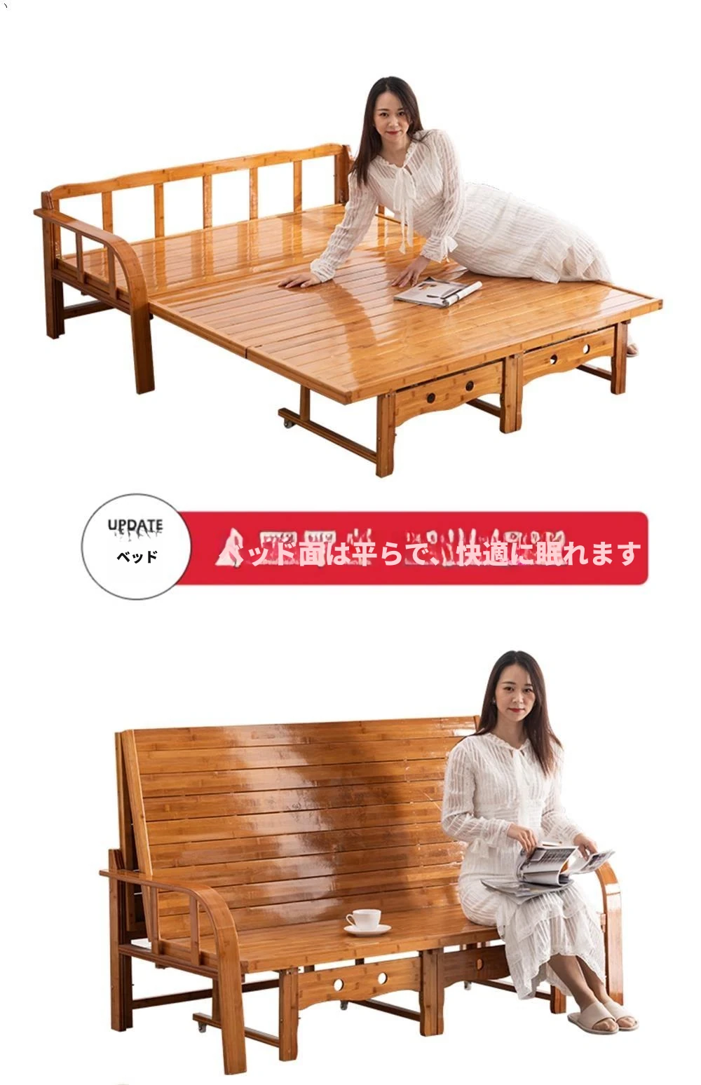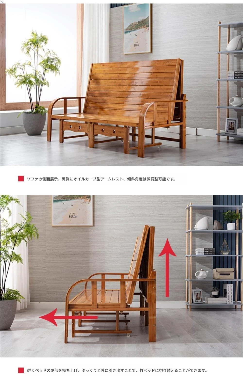 多機能折りたたみソファベッド - シングル・ダブル対応、竹製クールベッド!大人用に最適な硬質板仕様の実木製ベッドチェアで、家庭での快適なリラックスタイムを実現します!