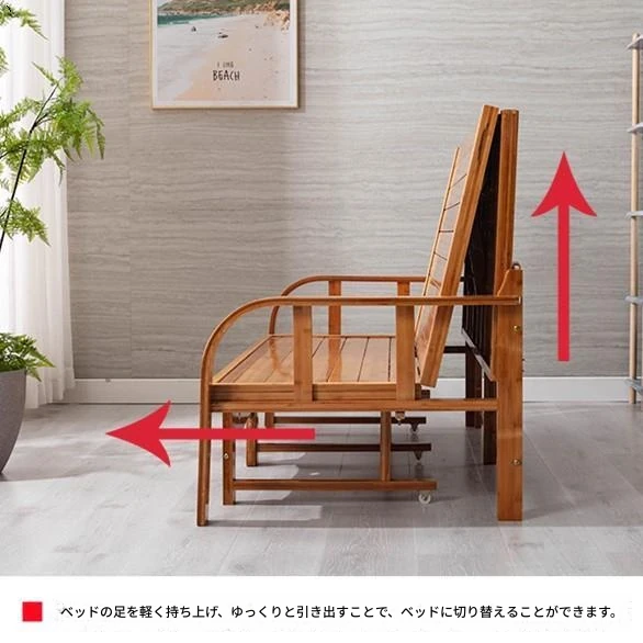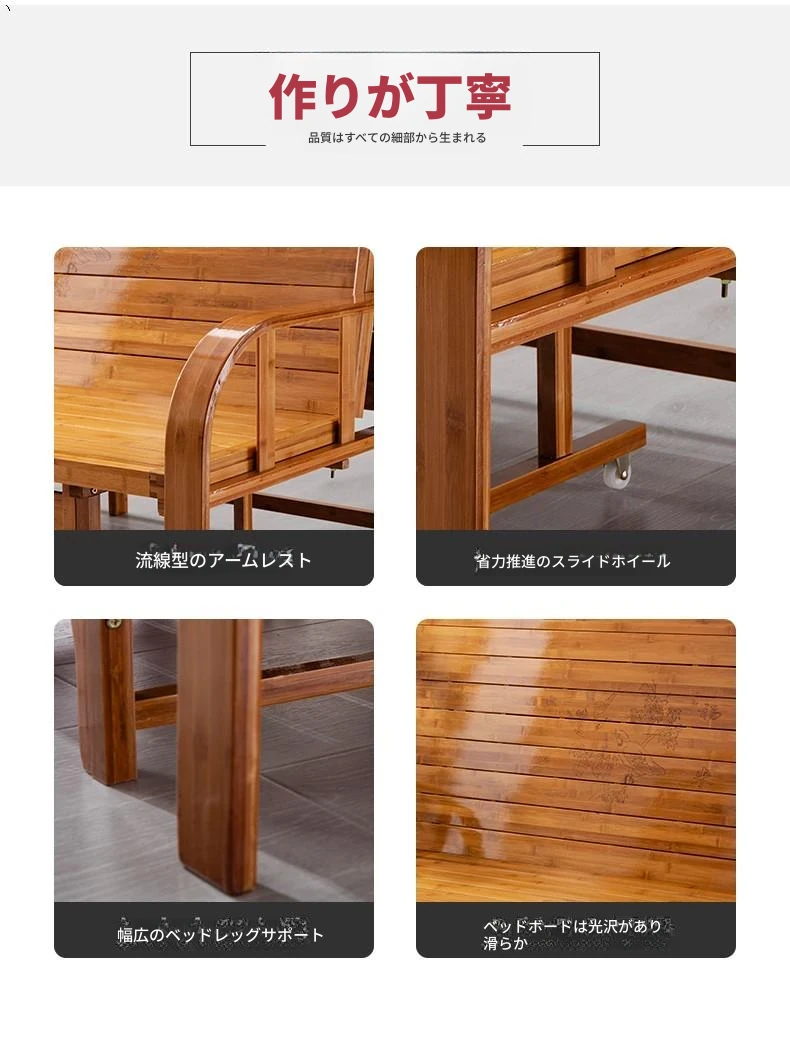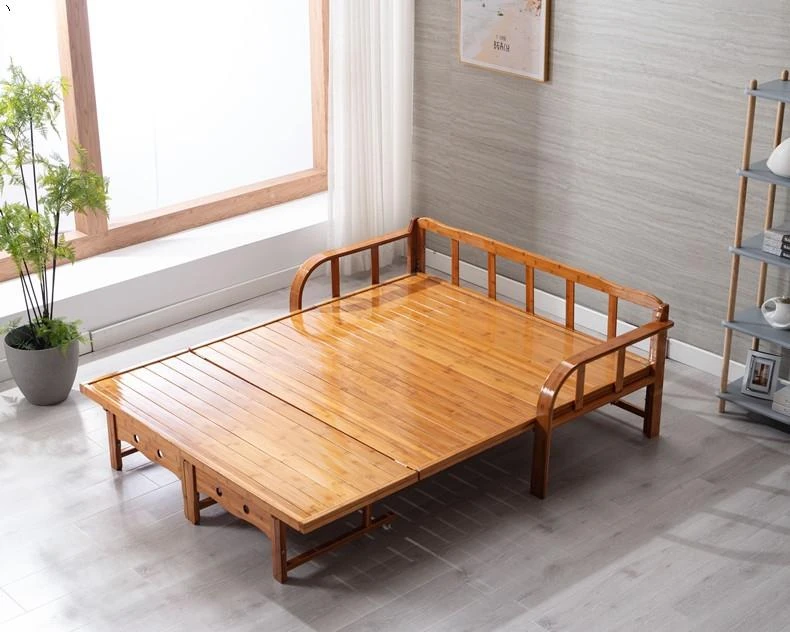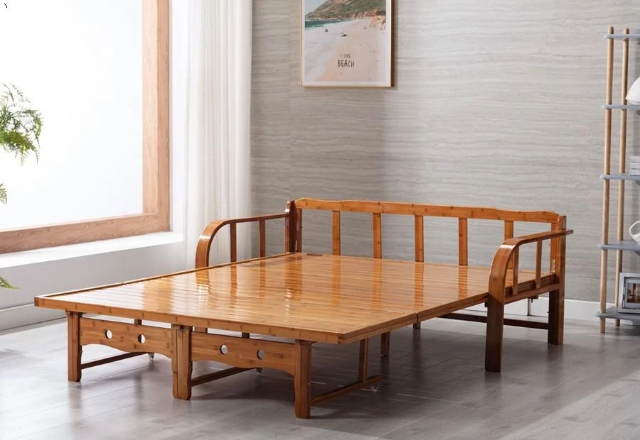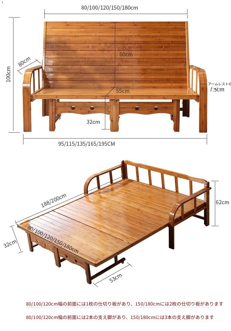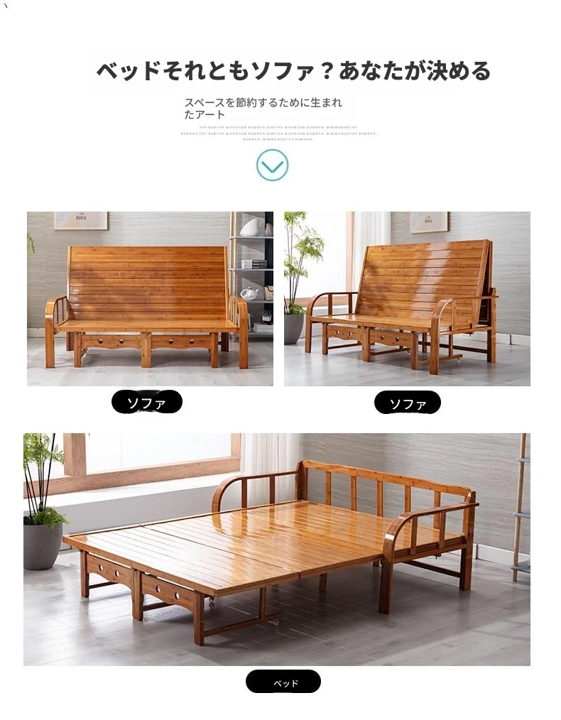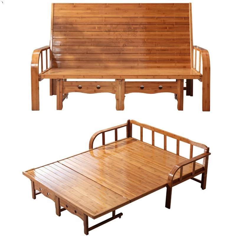 多機能折りたたみソファベッド - シングル・ダブル対応、竹製クールベッド!大人用に最適な硬質板仕様の実木製ベッドチェアで、家庭での快適なリラックスタイムを実現します!