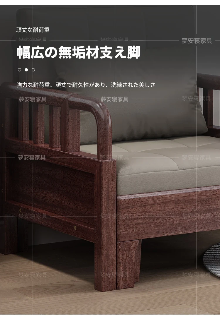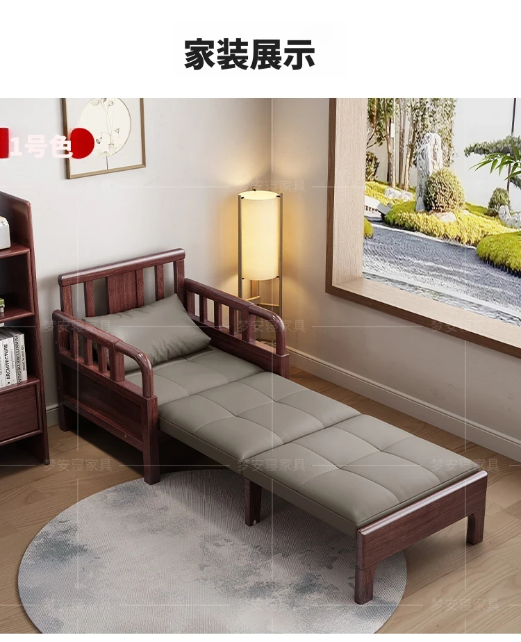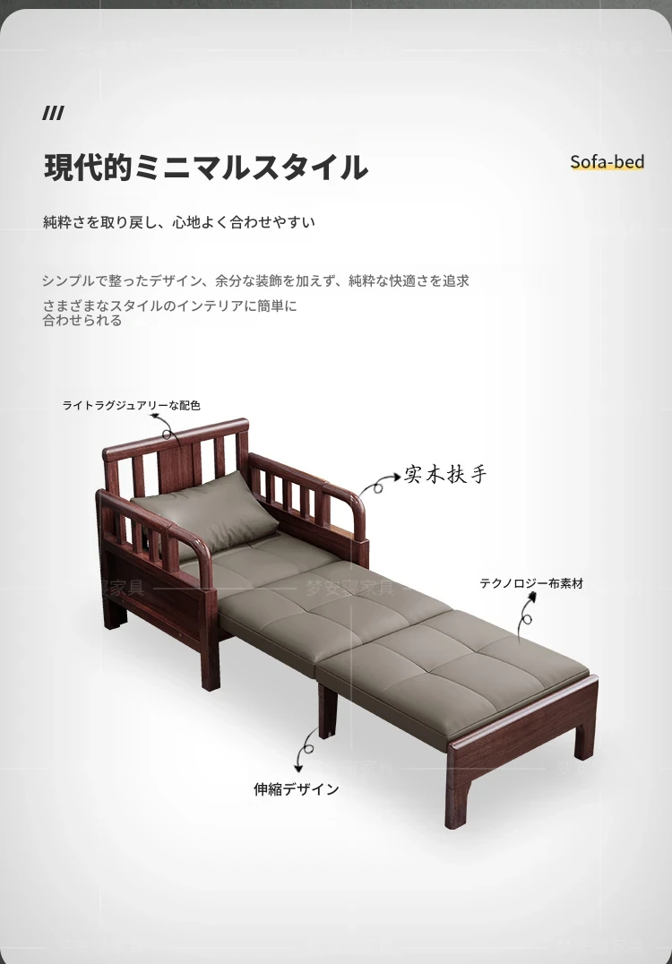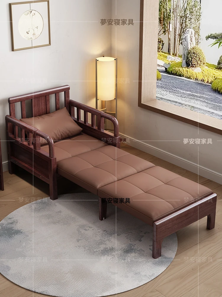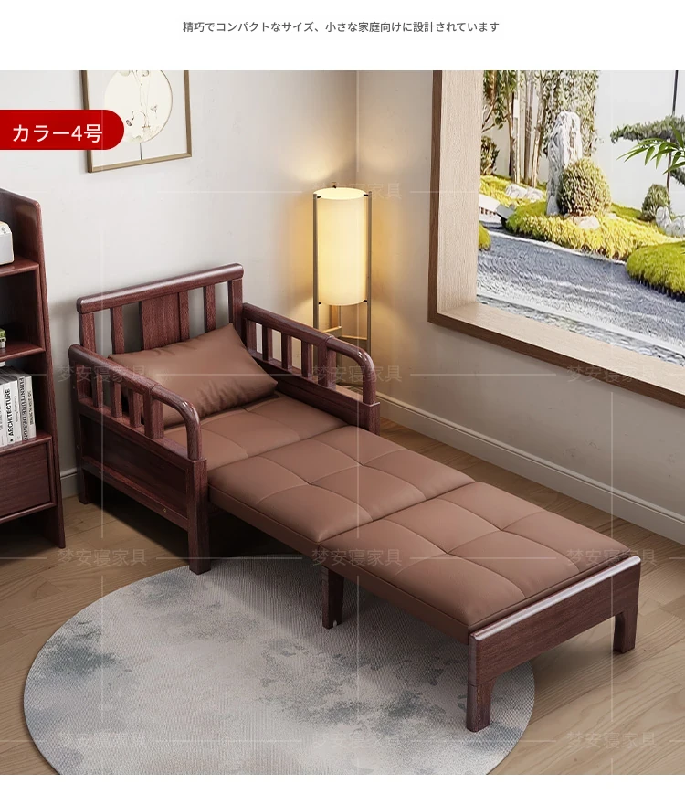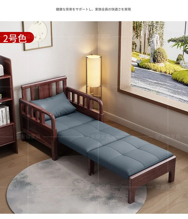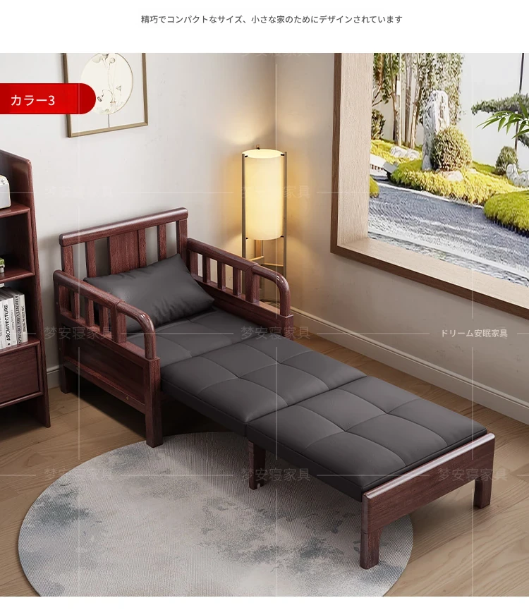 中式デザインの一人用実木ソファベッド - 多機能で折りたたみ可能!書斎、リビング、バルコニー、寝室にぴったりの便利な追加ベッド。快適な空間を演出します!