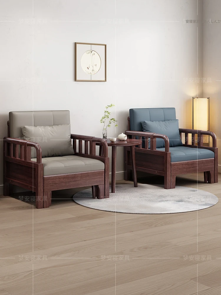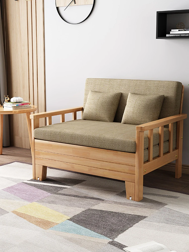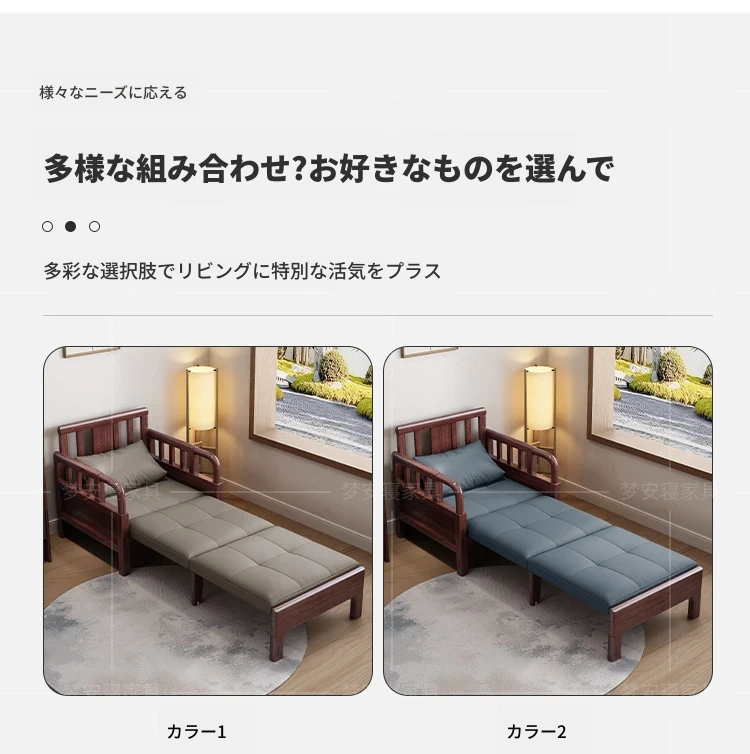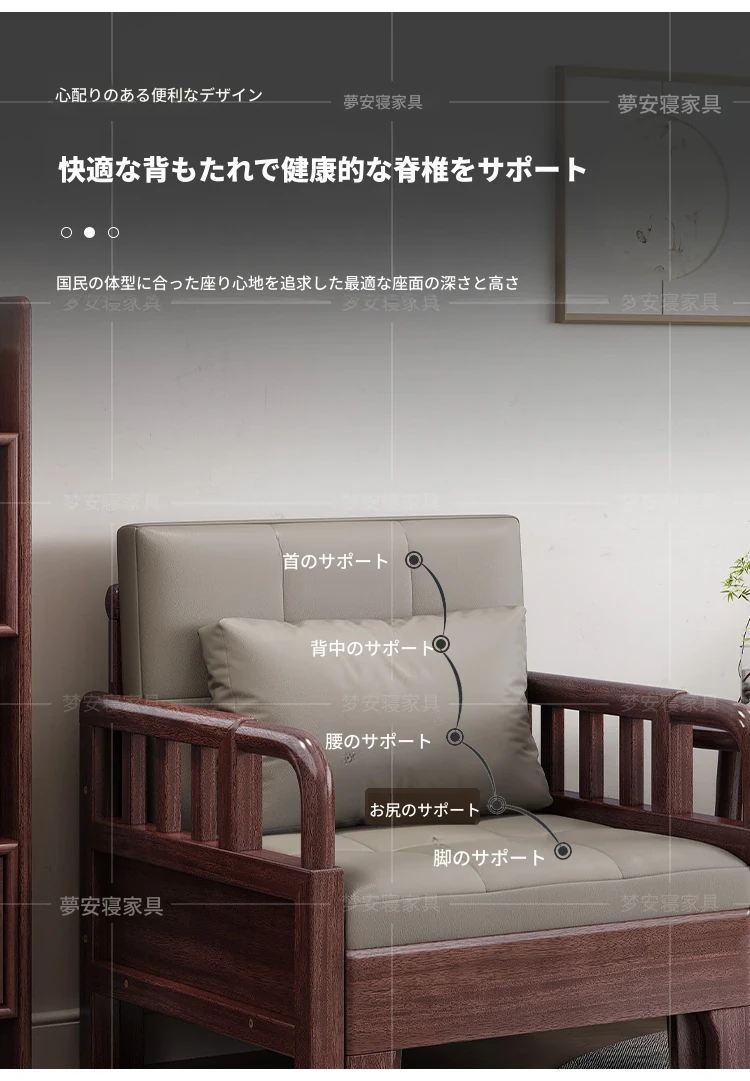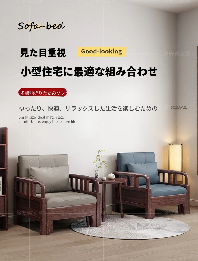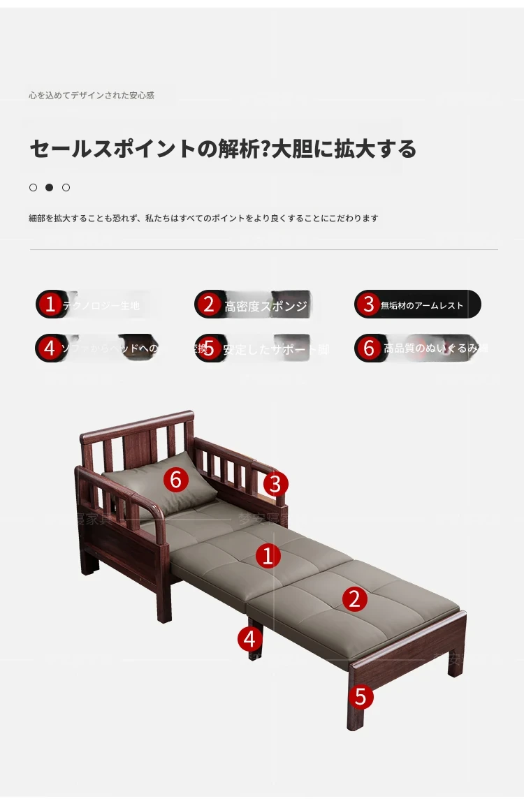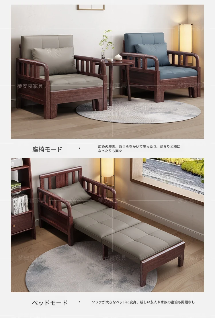 中式デザインの一人用実木ソファベッド - 多機能で折りたたみ可能!書斎、リビング、バルコニー、寝室にぴったりの便利な追加ベッド。快適な空間を演出します!