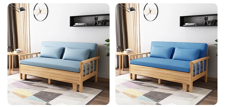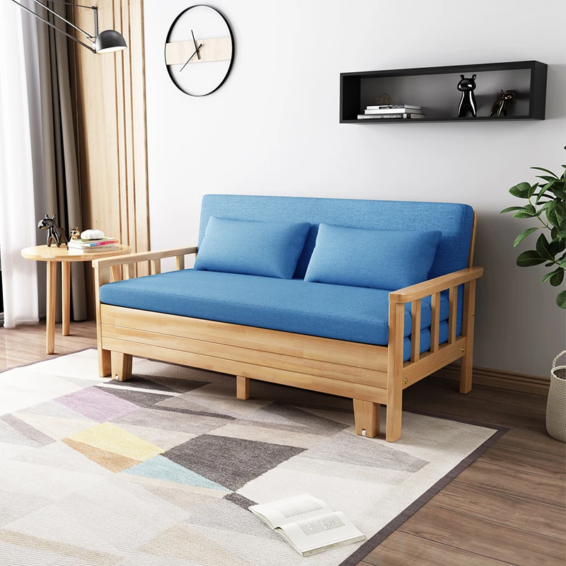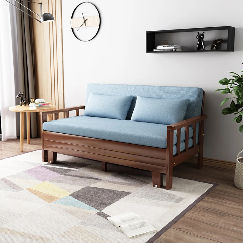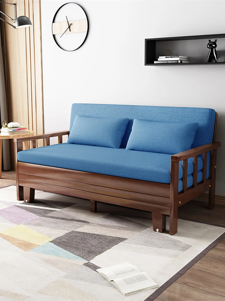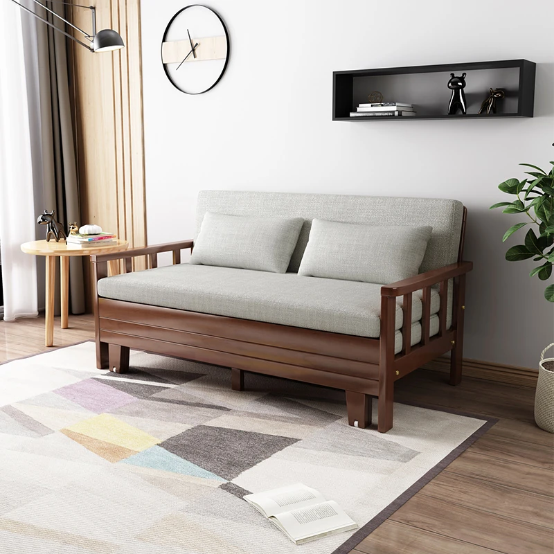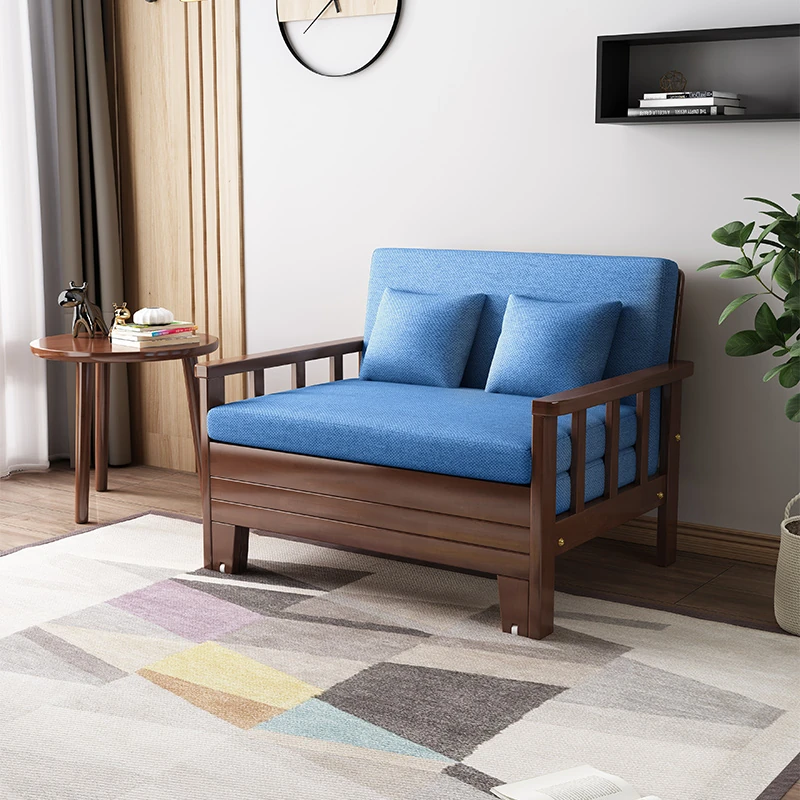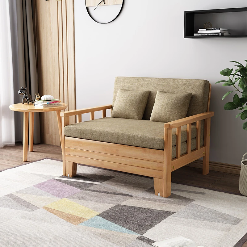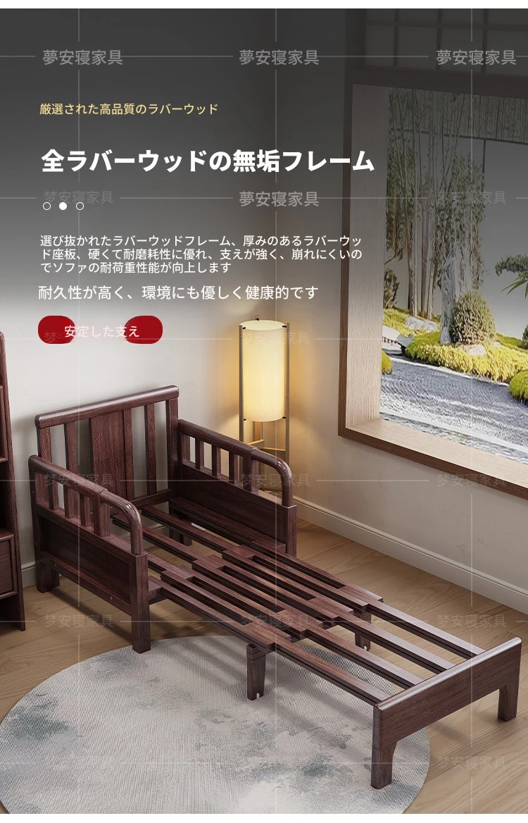 中式デザインの一人用実木ソファベッド - 多機能で折りたたみ可能!書斎、リビング、バルコニー、寝室にぴったりの便利な追加ベッド。快適な空間を演出します!