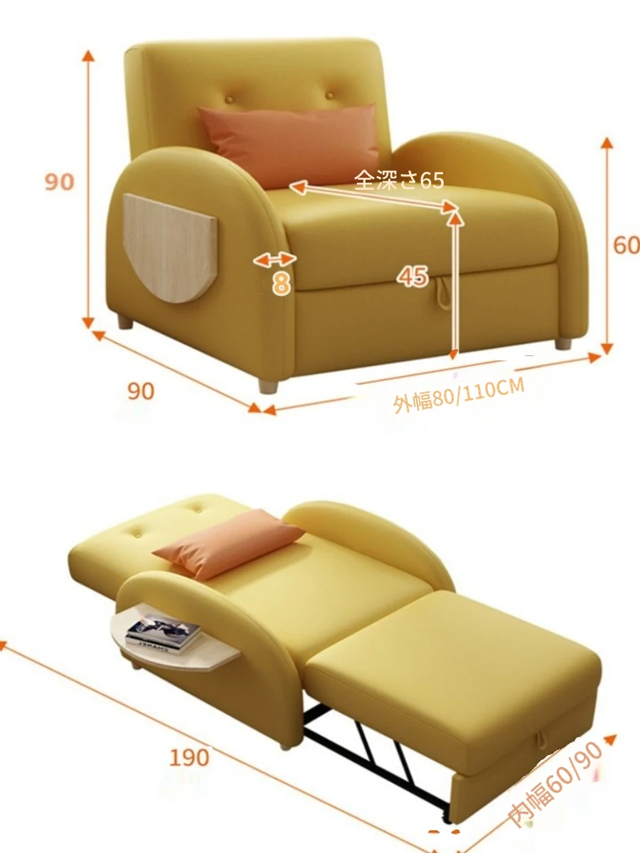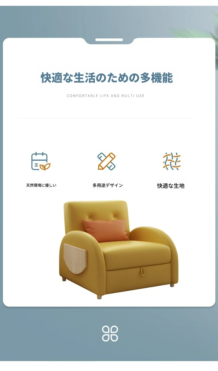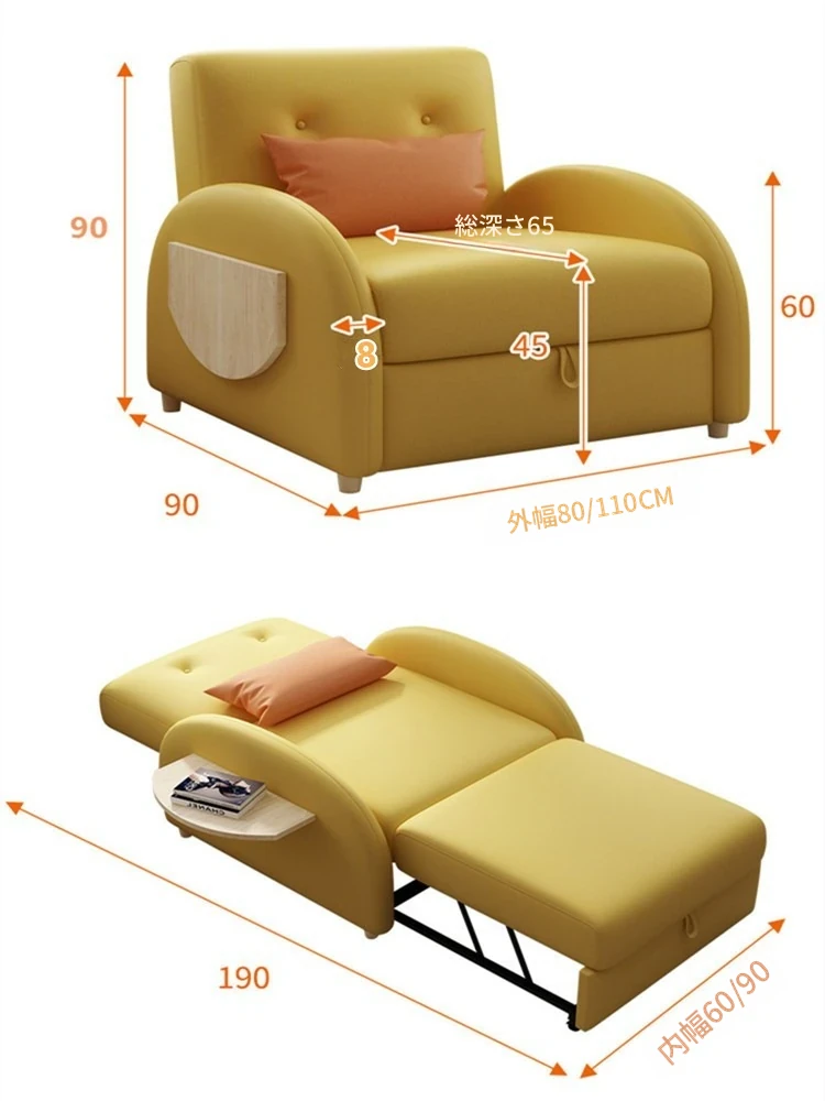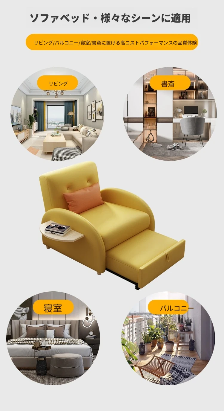 折りたたみ式一人用ソファベッド - 多機能で省スペース設計!小さなお部屋や書斎、バルコニーに最適なリラックス空間を提供します。お昼寝やくつろぎのひとときをお楽しみください!