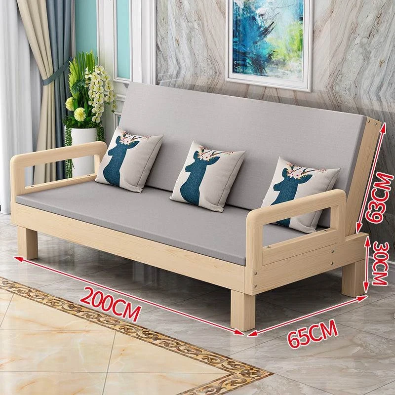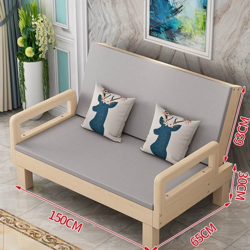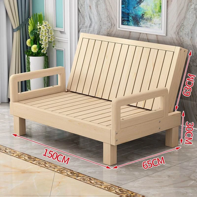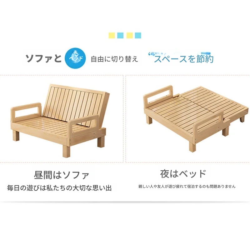折りたたみ式の無垢材マルチファンクションベッド - リビング、書斎、バルコニーに最適!スペースを有効活用する一人用・二人用ソファベッド。スタイリッシュで機能的、狭いお部屋にもぴったり!