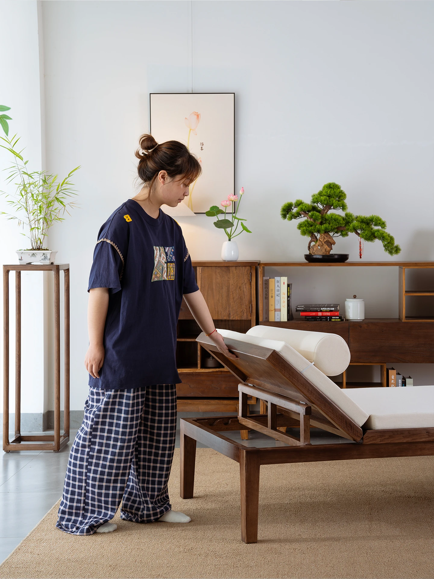 高品質の無垢材を使用した折りたたみ式ソファベッド - 中華風の貴妃座椅子で、書斎にもリビングにも最適!シングルサイズの寝椅子としても使える多機能デザイン。快適な座り心地と寝心地を両立!